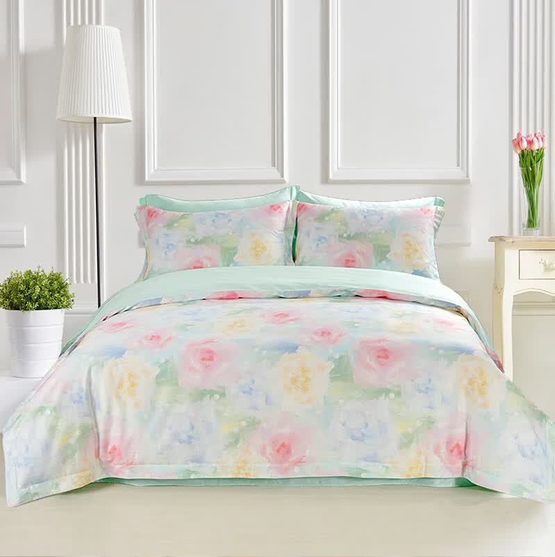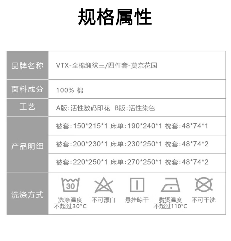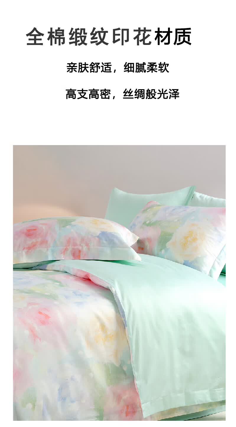 VTX家纺床上四件套全棉印花四件套床品套件贡缎亲肤柔软床单枕套套件 1.2米三件套 床盖款 (被套152*210cm)