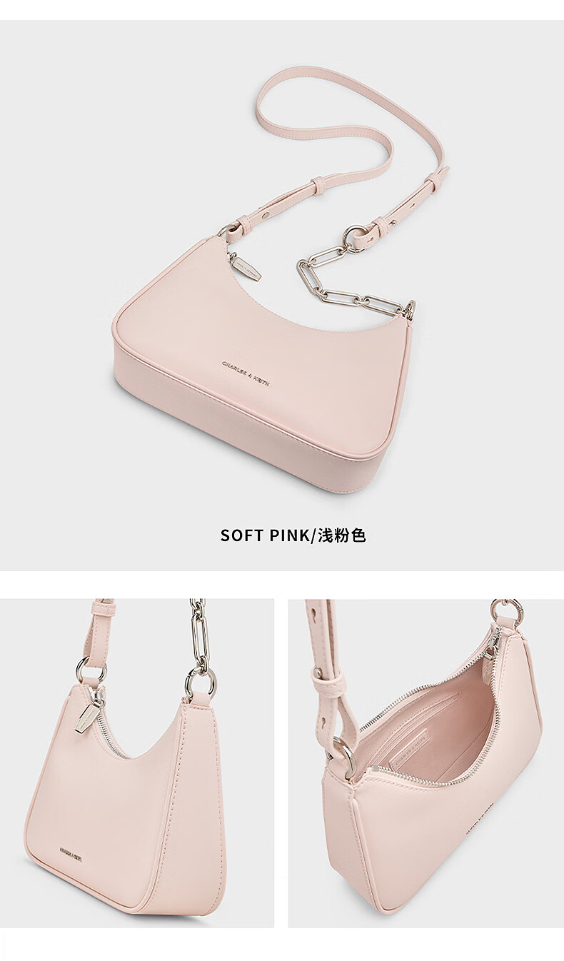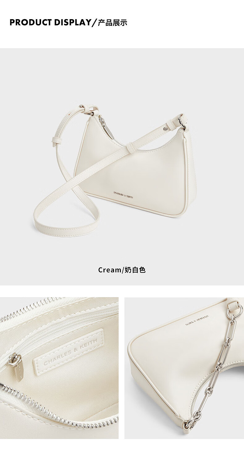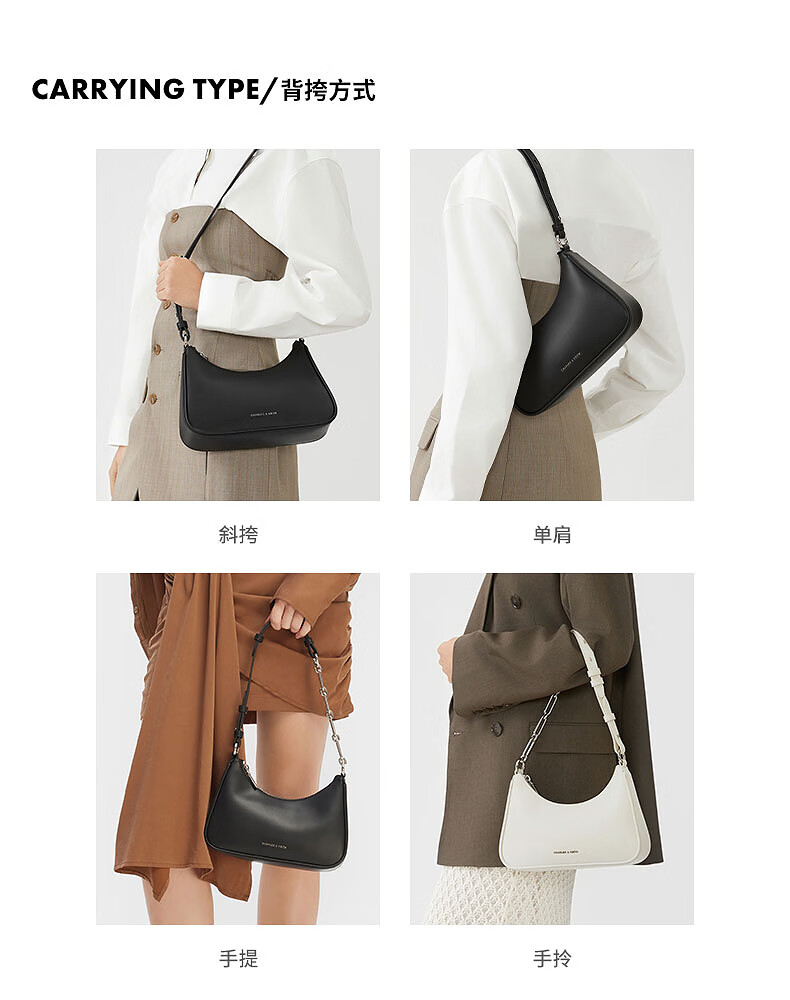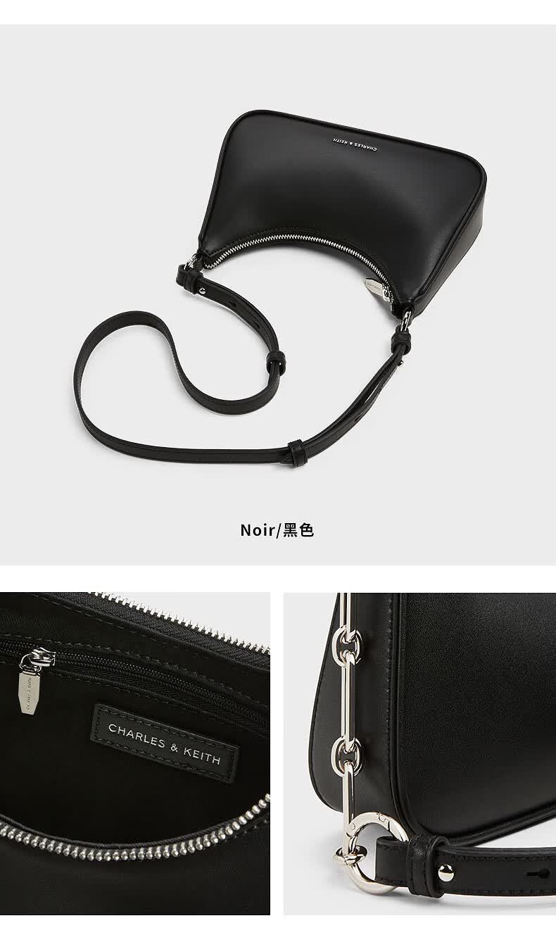 CHARLES&KEITH拉链简约通勤轻便链条腋下包生日礼物送女友CK2-20271604 Noir黑色 S