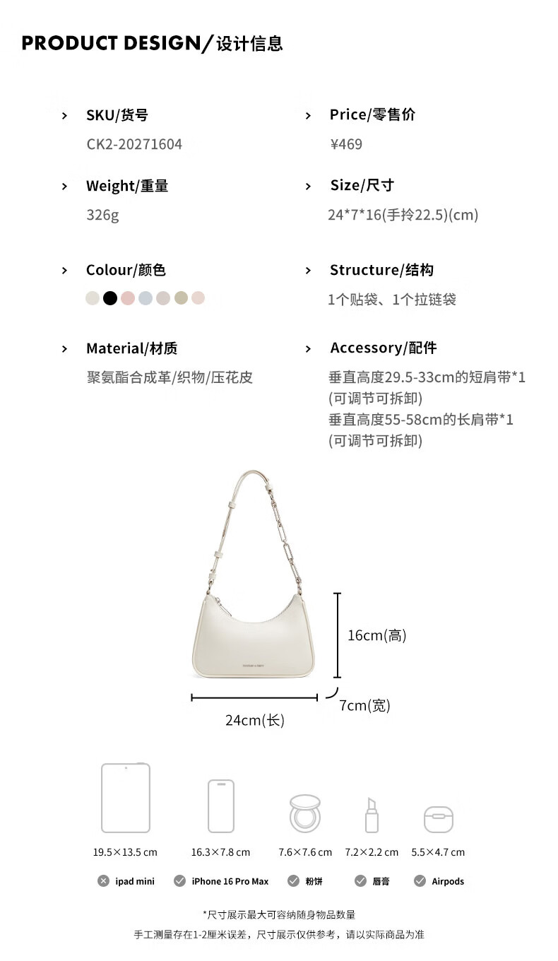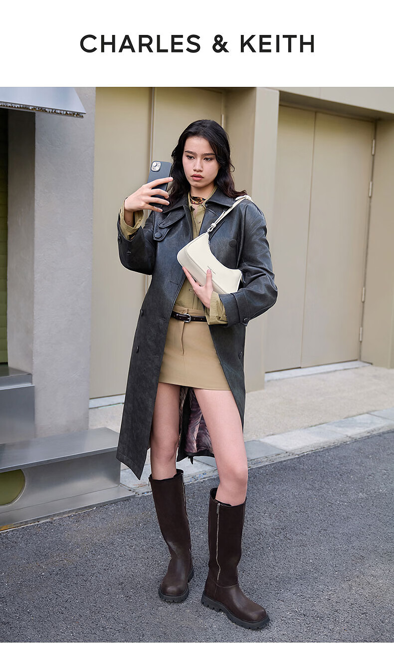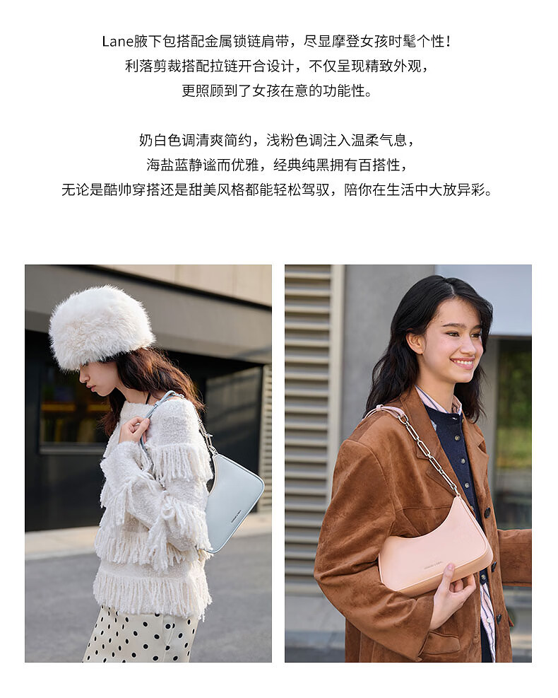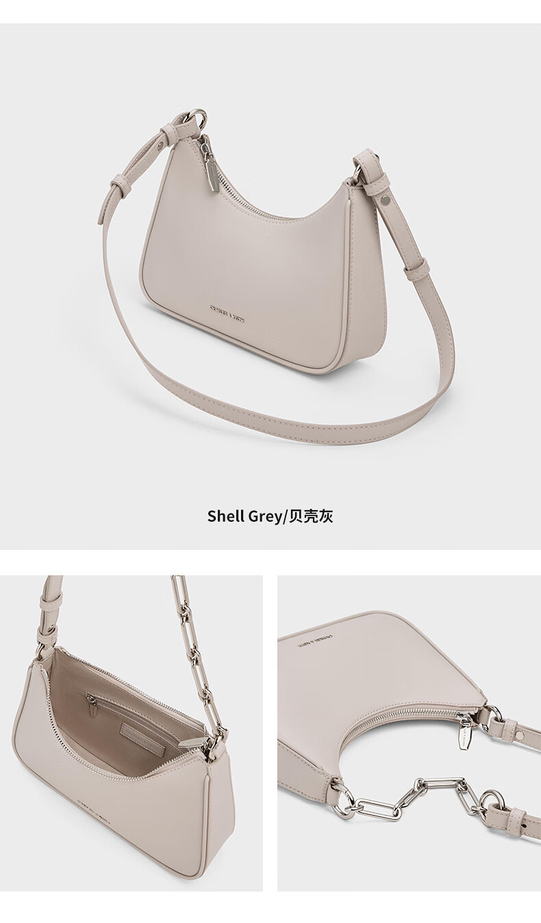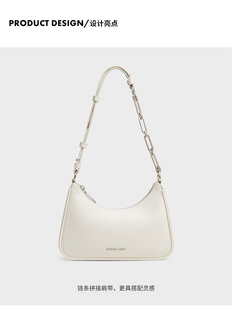 CHARLES&KEITH拉链简约通勤轻便链条腋下包生日礼物送女友CK2-20271604 Noir黑色 S