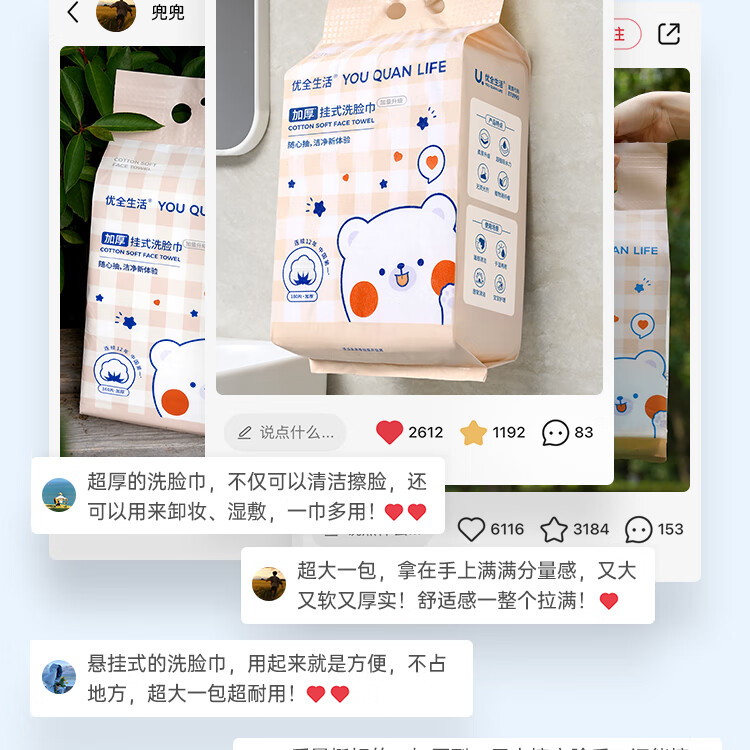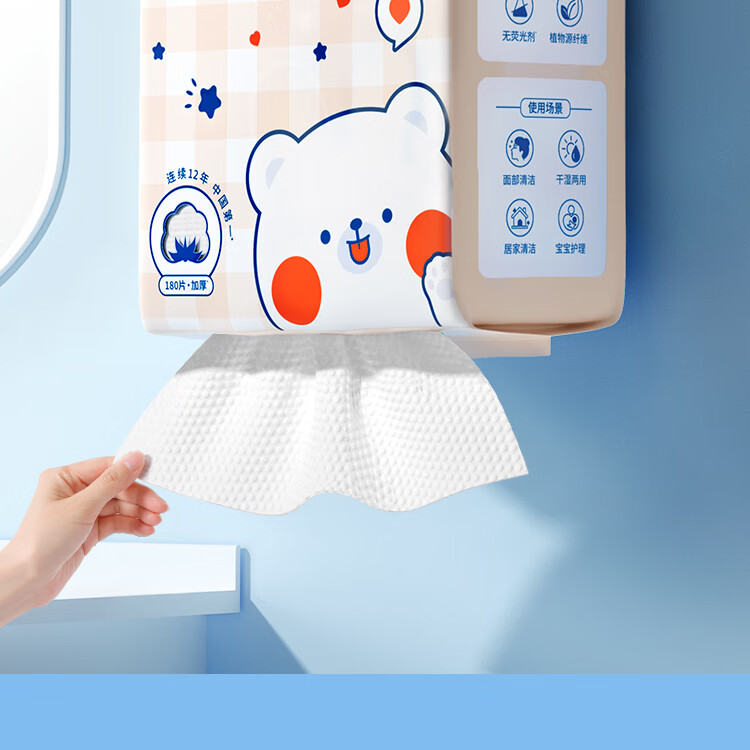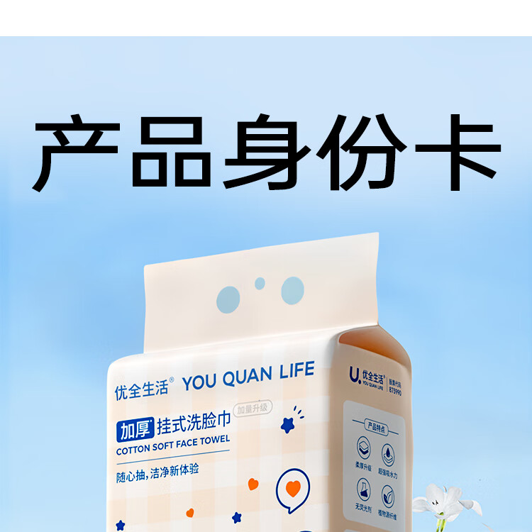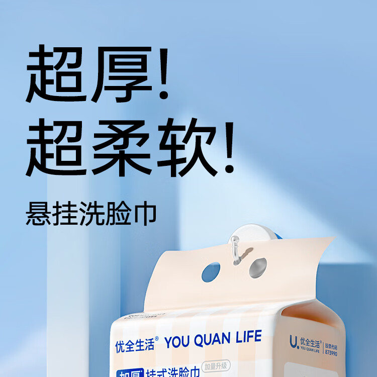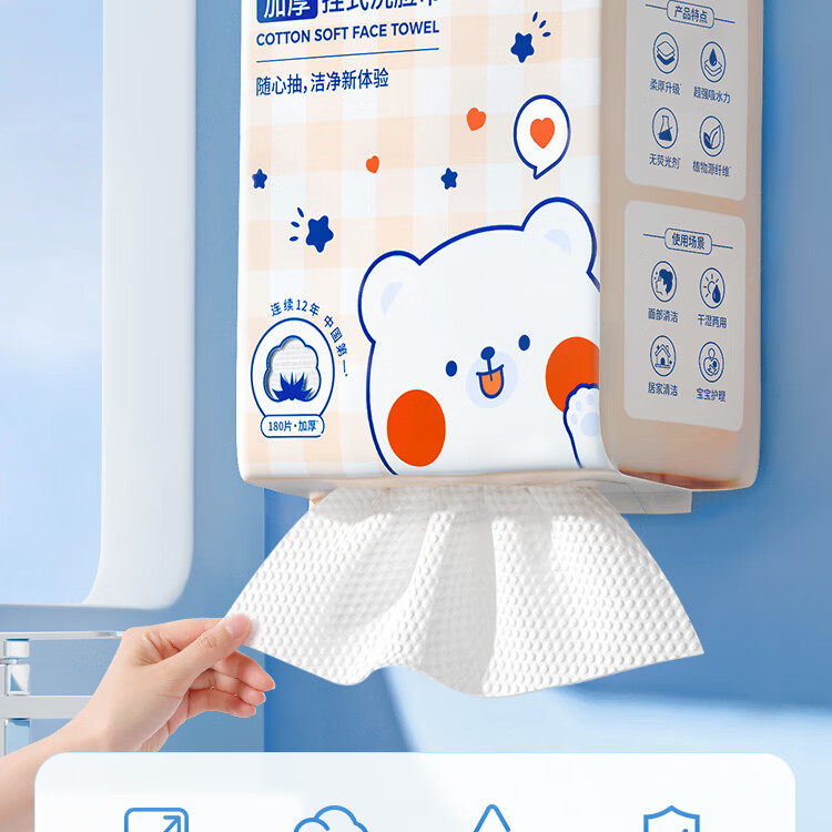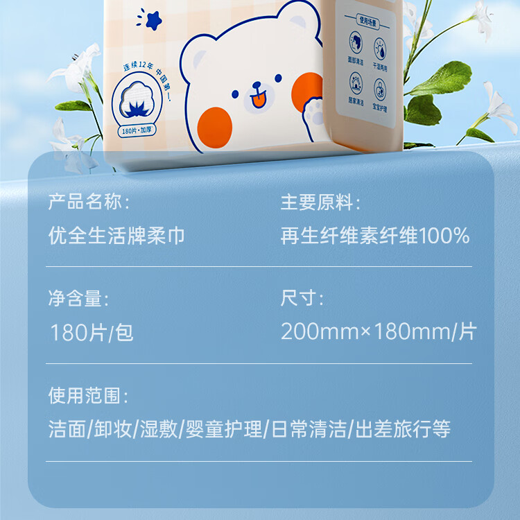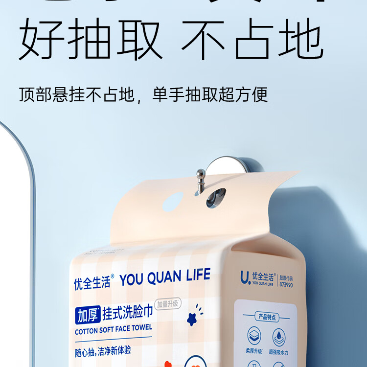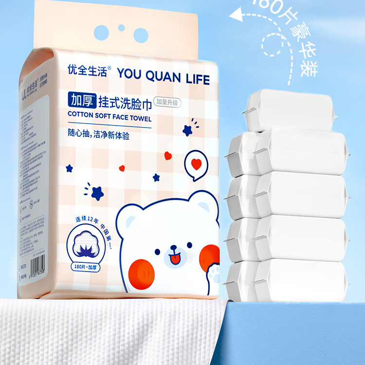 优全生活洗脸巾180抽一次性加大加厚绵柔毛巾洗面擦脸洁面悬挂壁挂抽取式