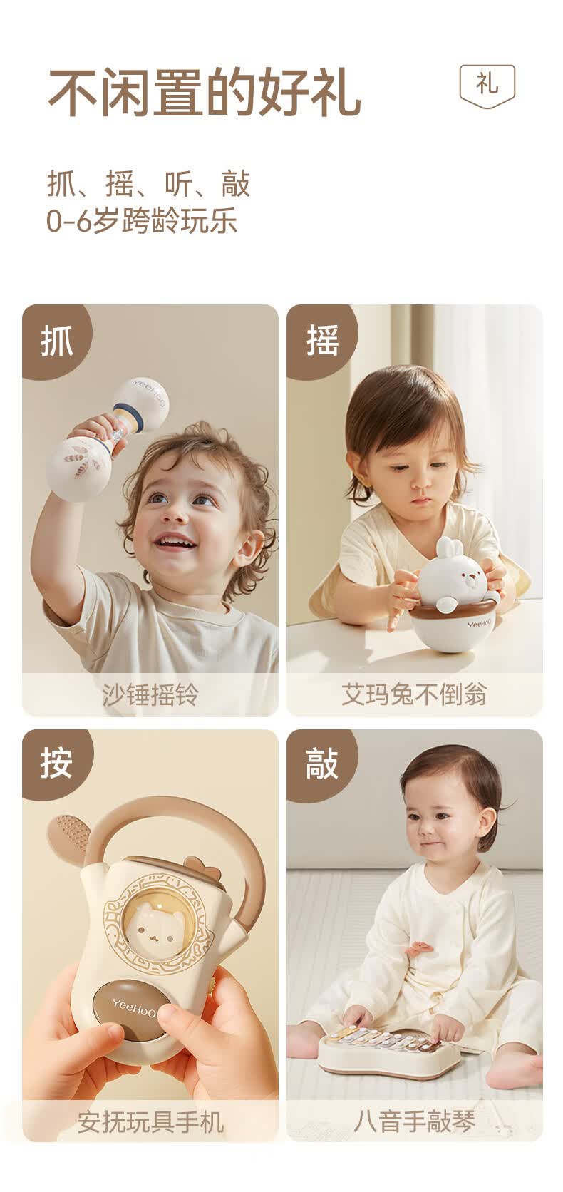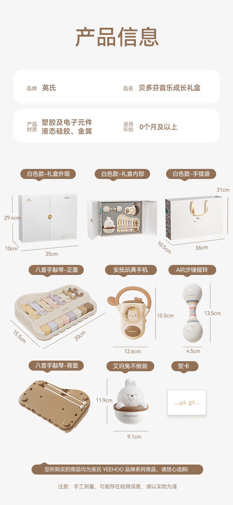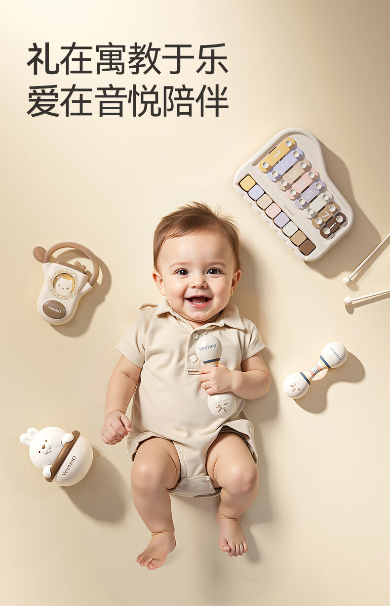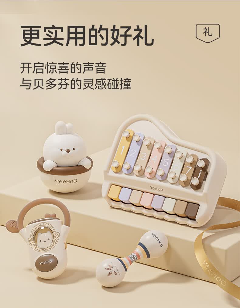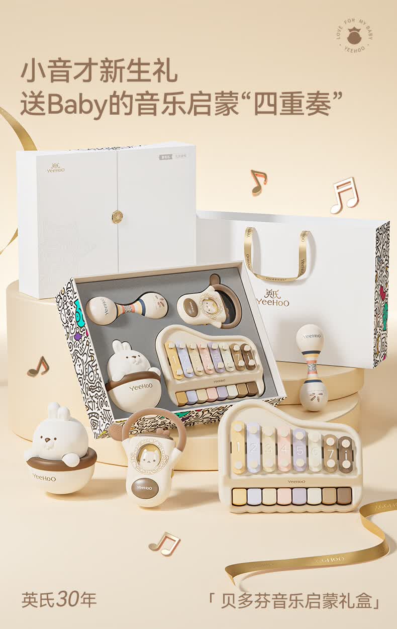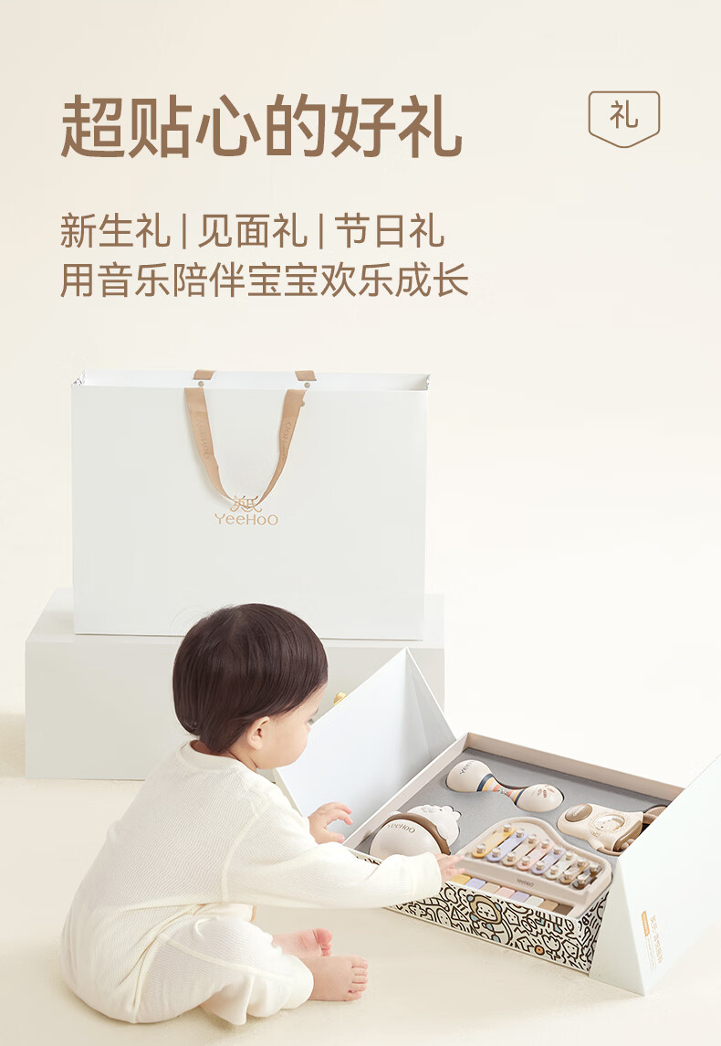 英氏(YEEHOO)婴儿玩具新生儿见面礼儿童沙锤摇铃音乐礼盒宝宝周岁实用礼物高档