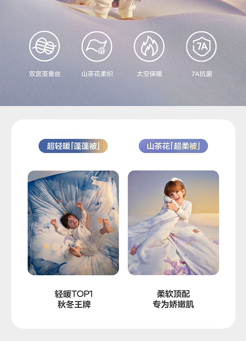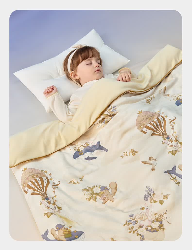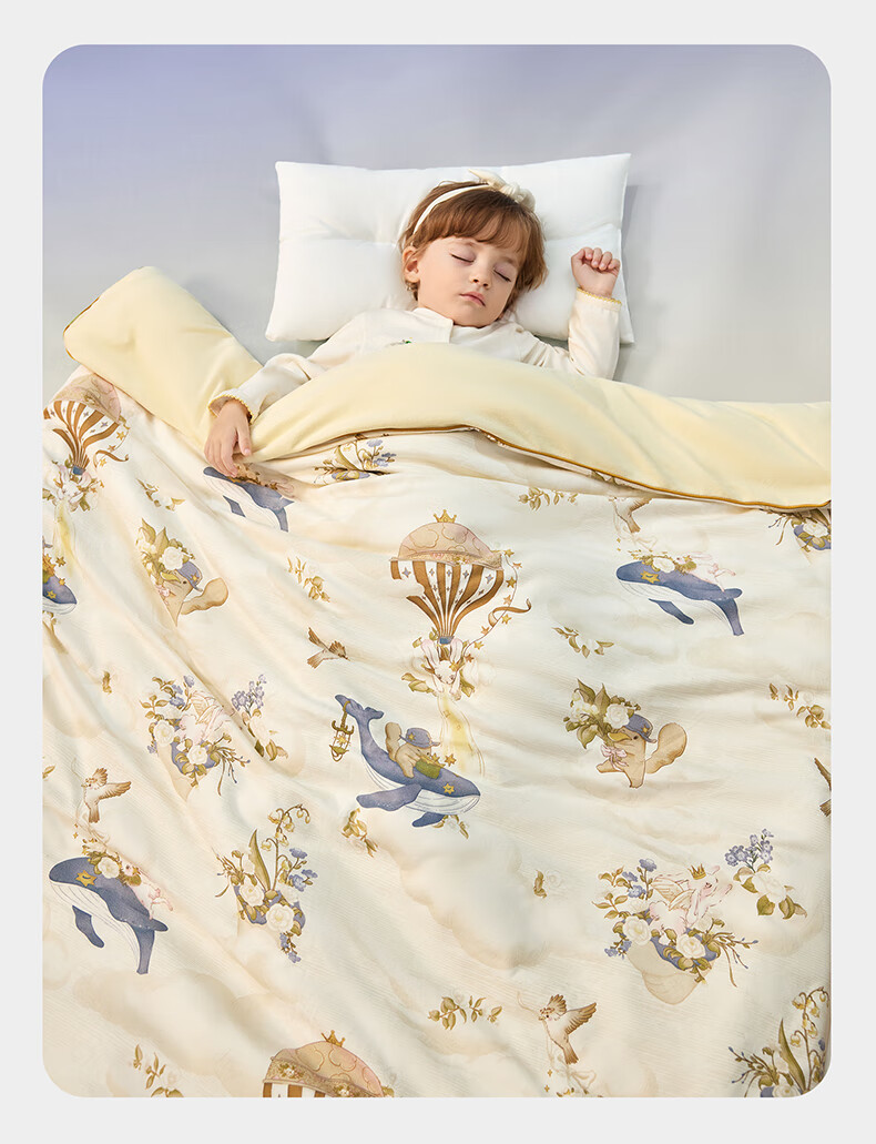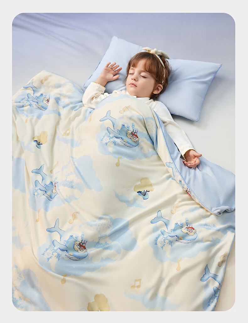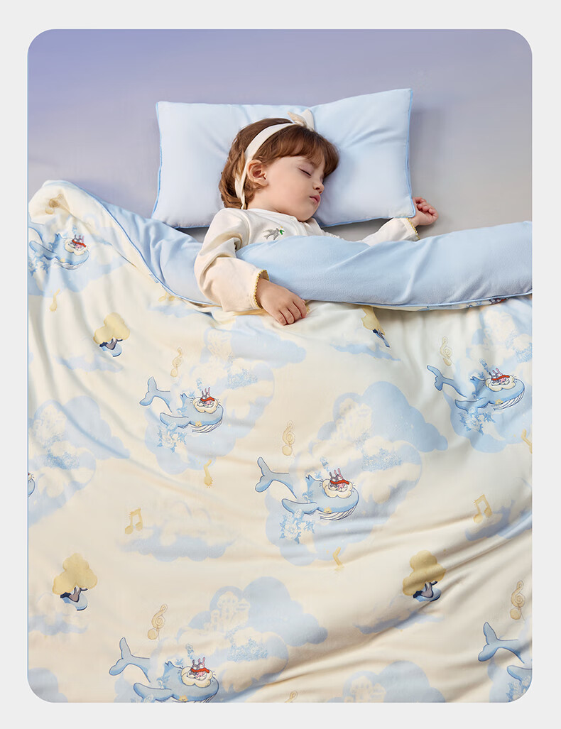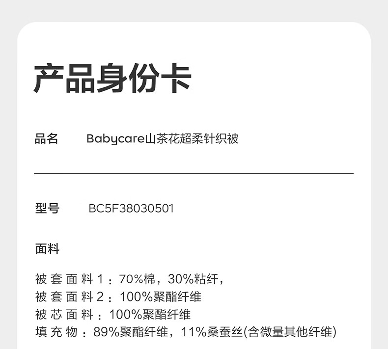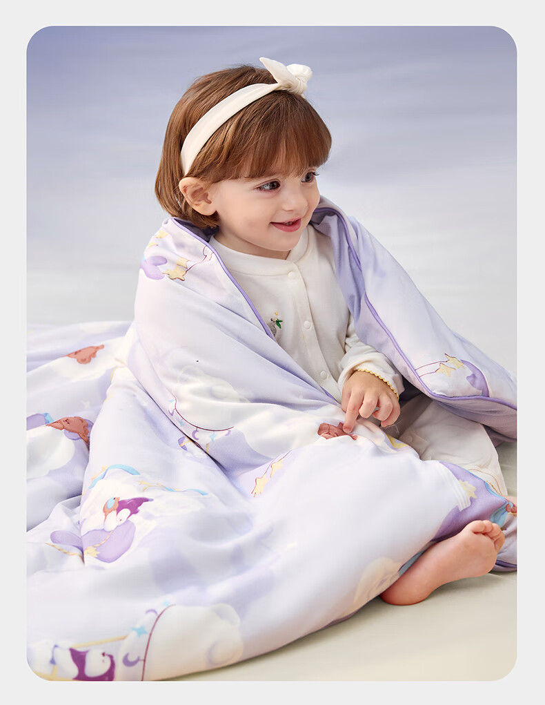 babycare婴儿小被子宝宝山茶花针织被幼儿园四季被填充桑蚕丝150*210CM