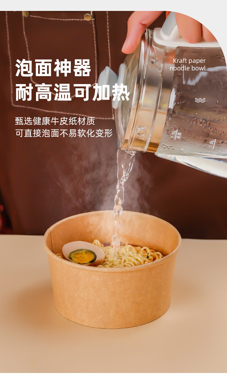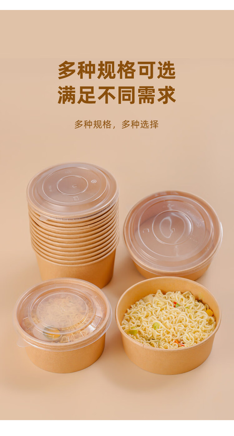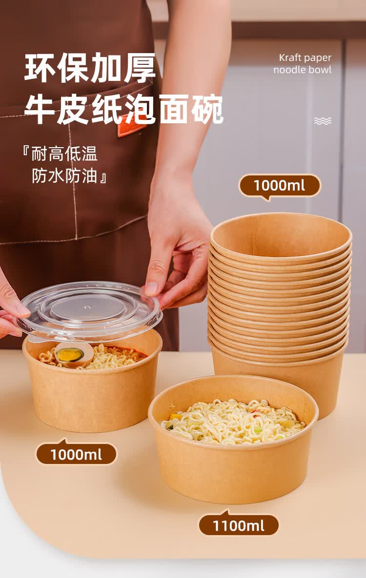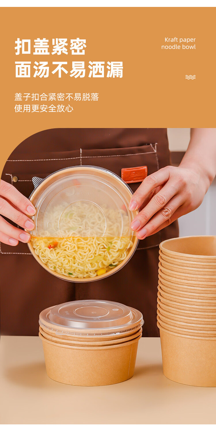 咏幻一次性泡面碗耐高温食品级饭盒饭碗免洗牛皮纸打包盒碗筷套装家用 1000毫升+pp5材质盖20套(加厚款)