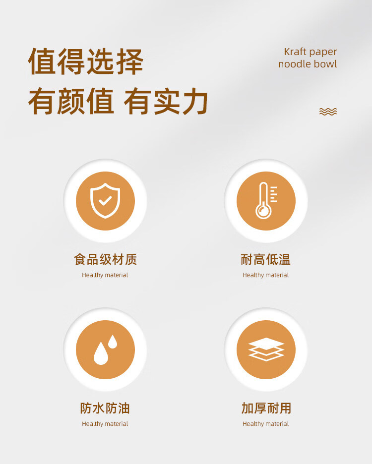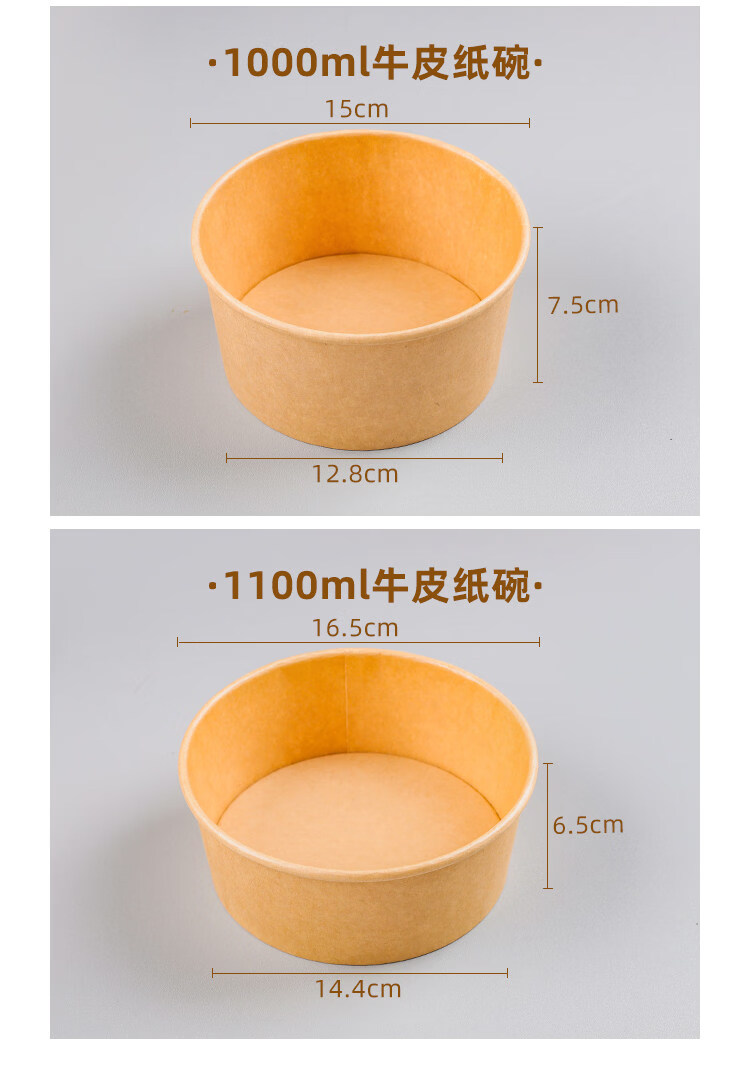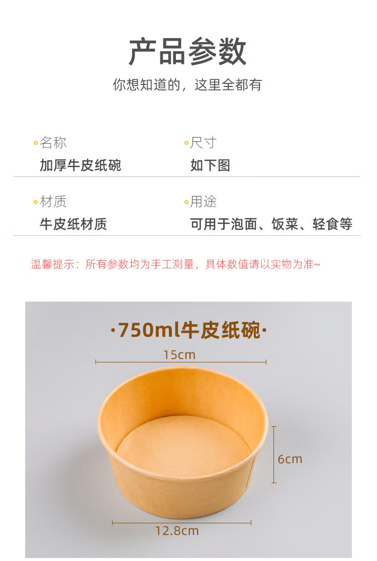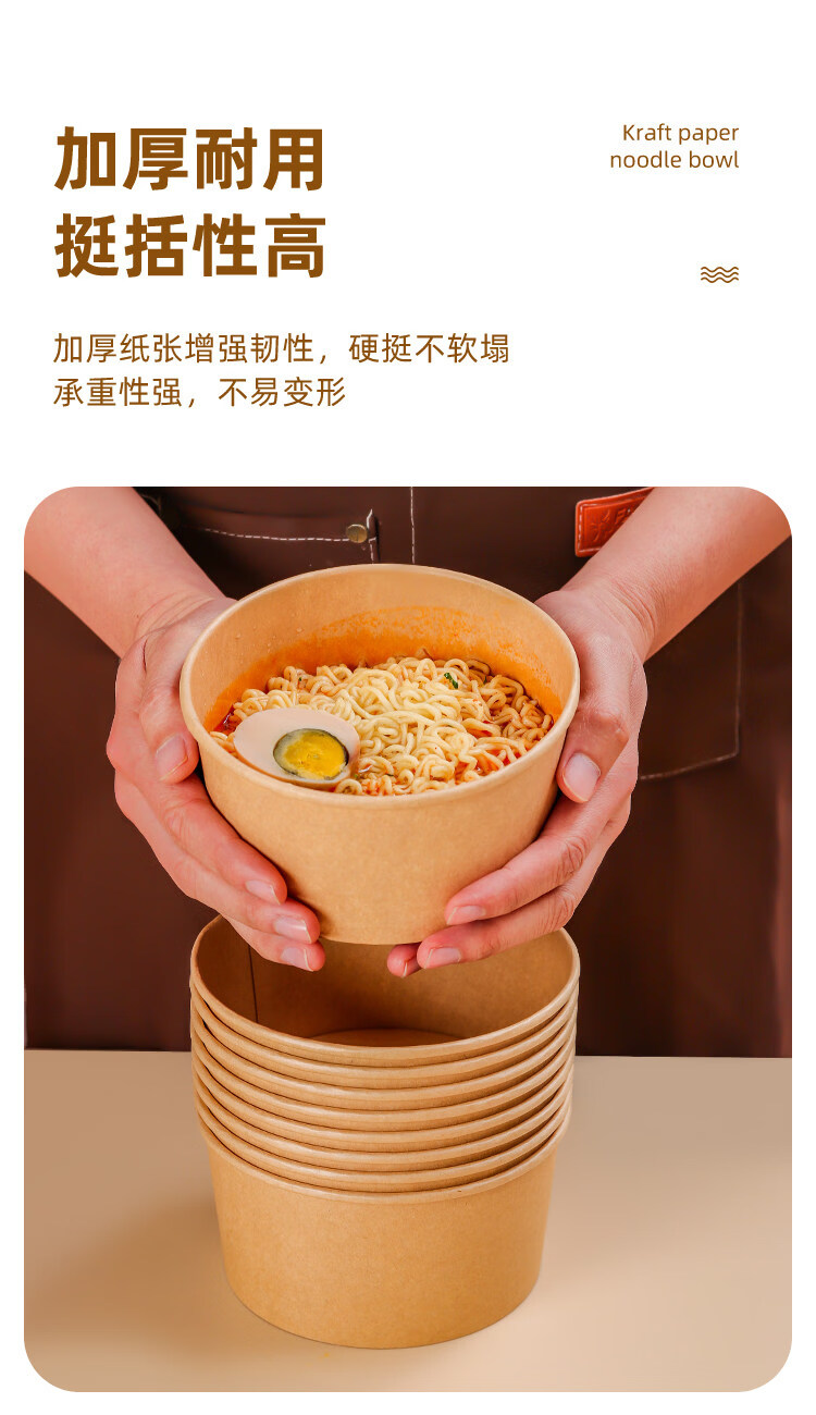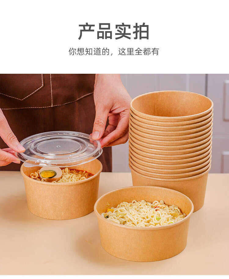 咏幻一次性泡面碗耐高温食品级饭盒饭碗免洗牛皮纸打包盒碗筷套装家用 1000毫升+pp5材质盖20套(加厚款)