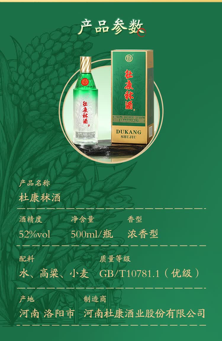 杜康秫(shu)酒 52度浓香型白酒 纯粮佳酿 送礼宴请 52度 500mL 6瓶 整箱装
