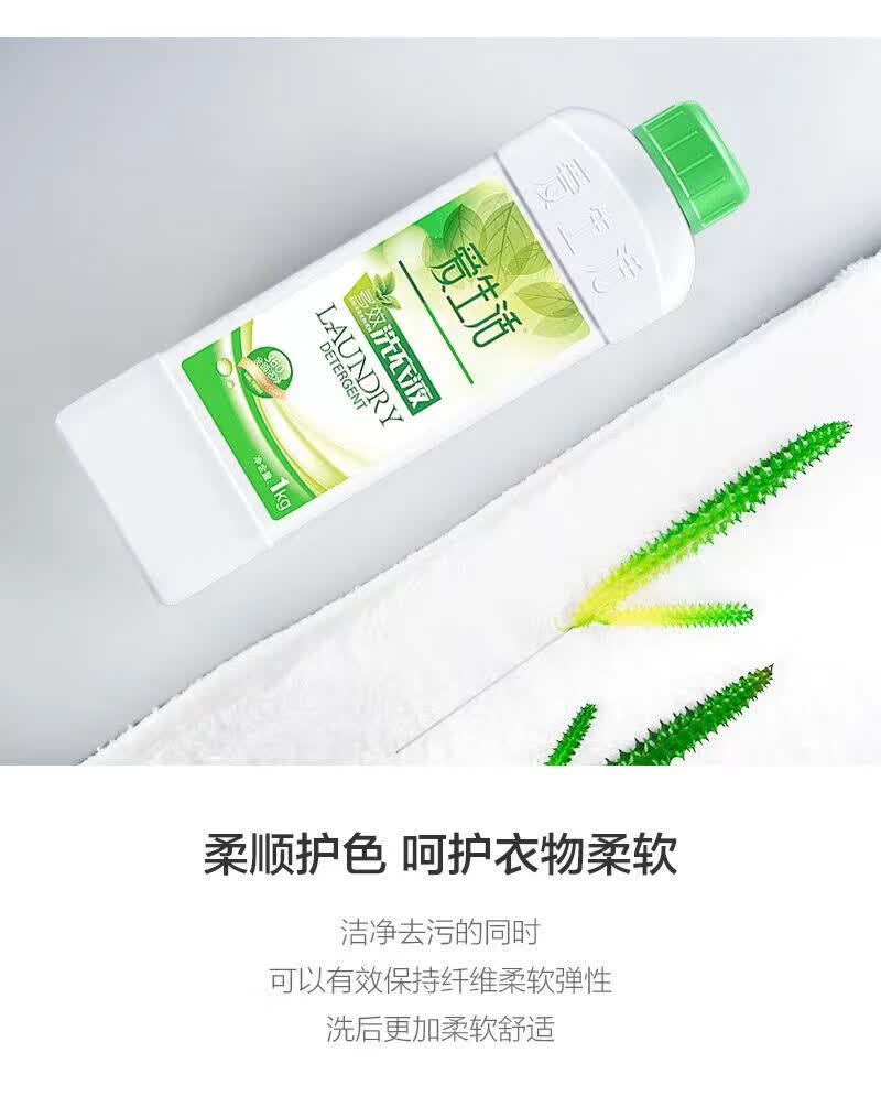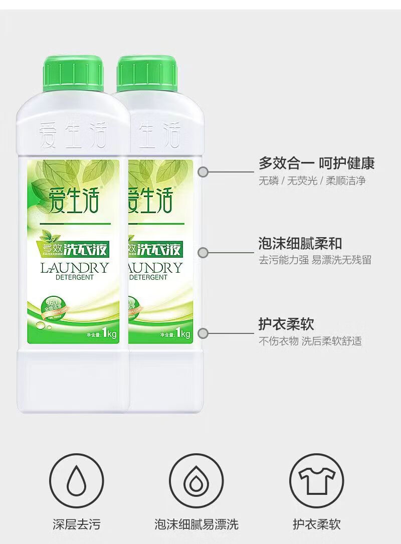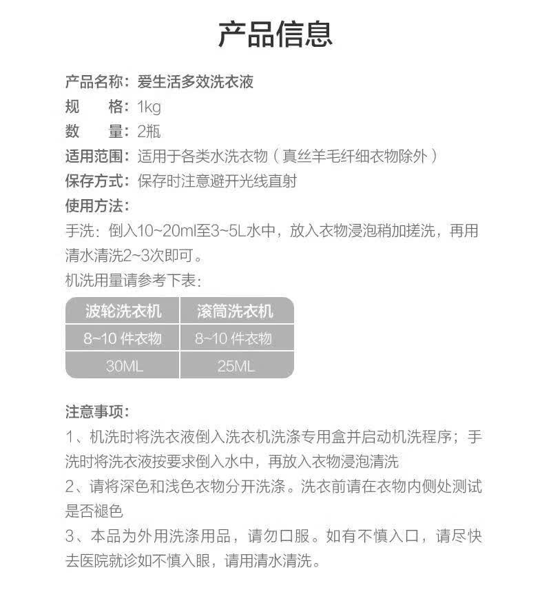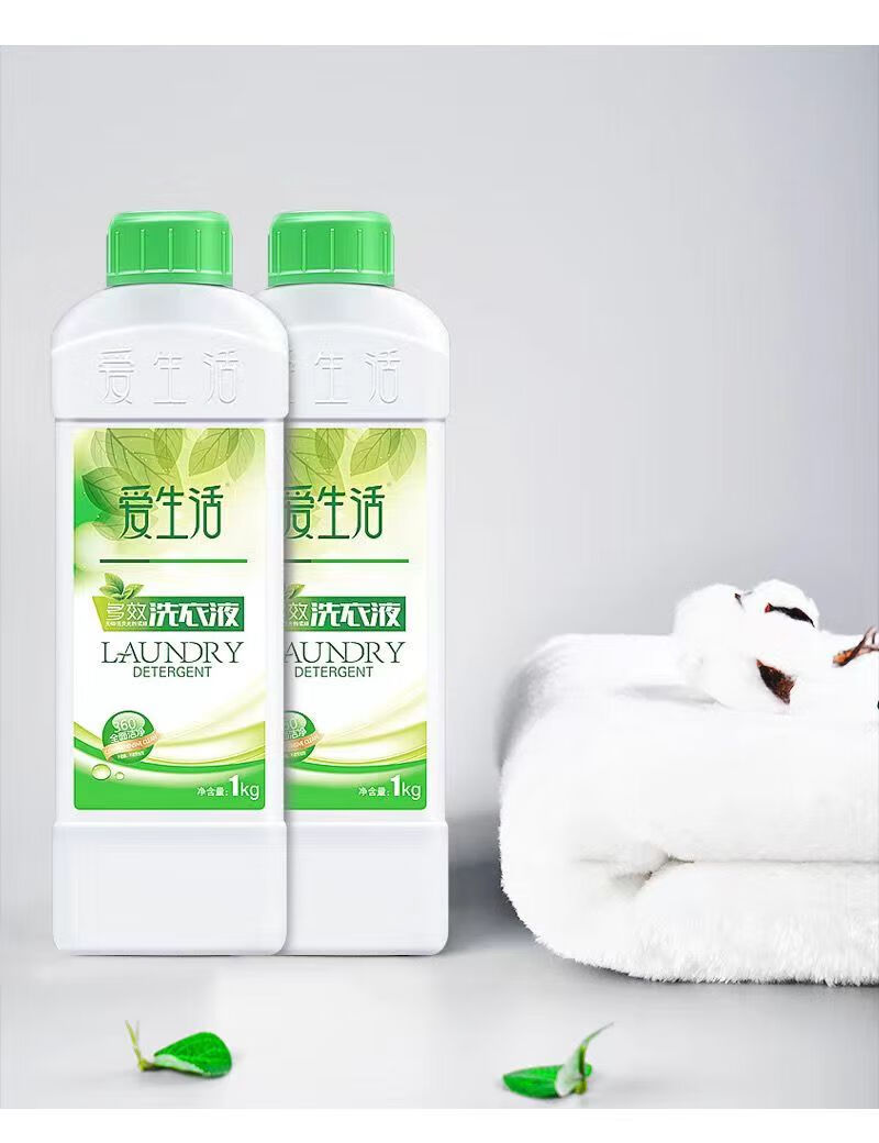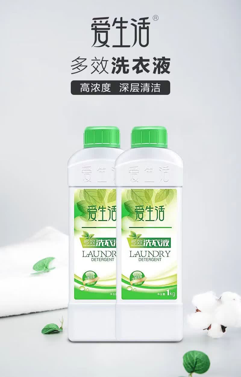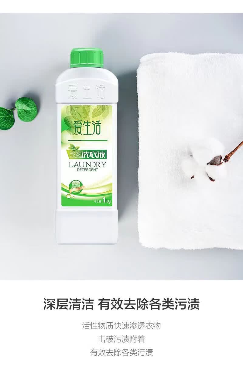 爱生活绿叶爱生活多效洗衣液正品浓缩无磷无荧光剂除菌去渍2kg家庭装 【2瓶】小分子洗衣液+送压头