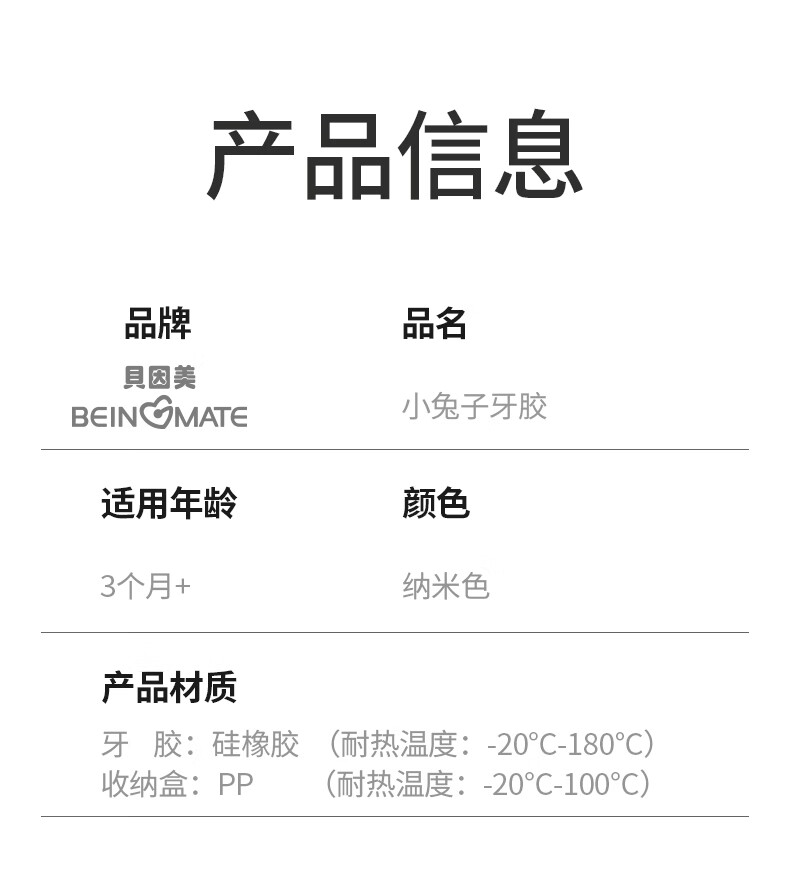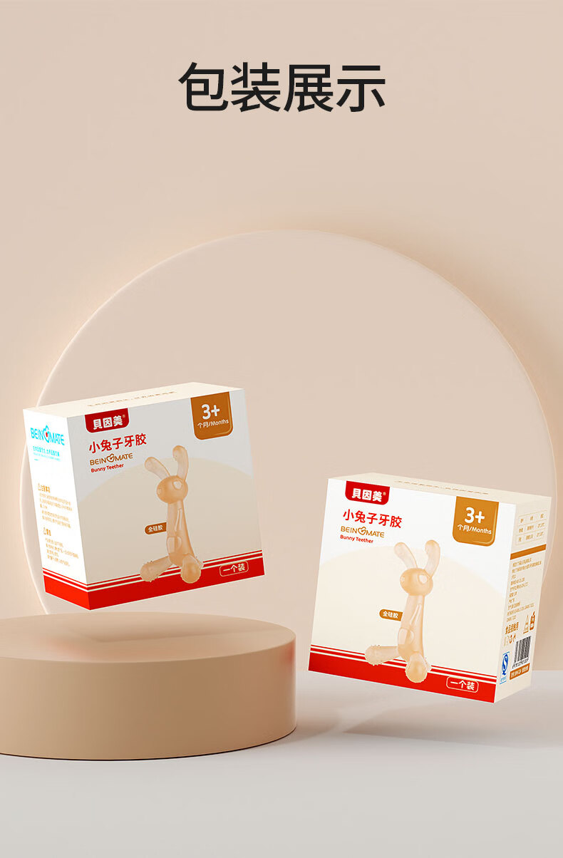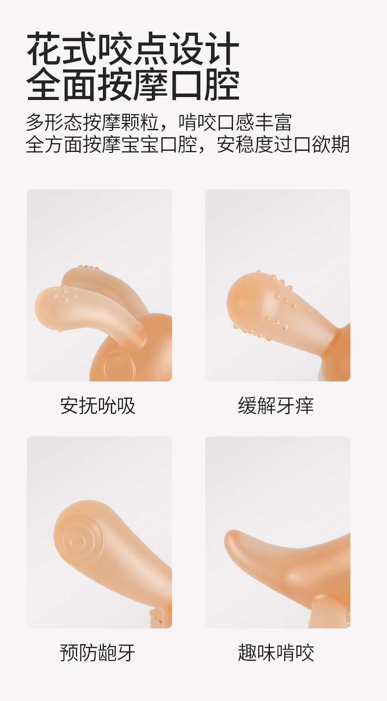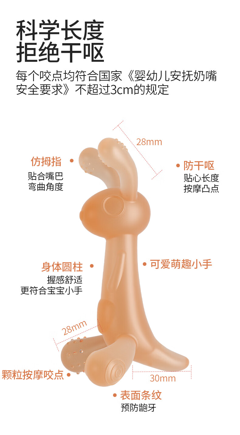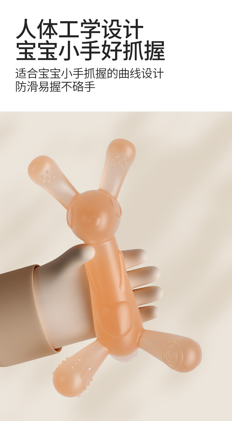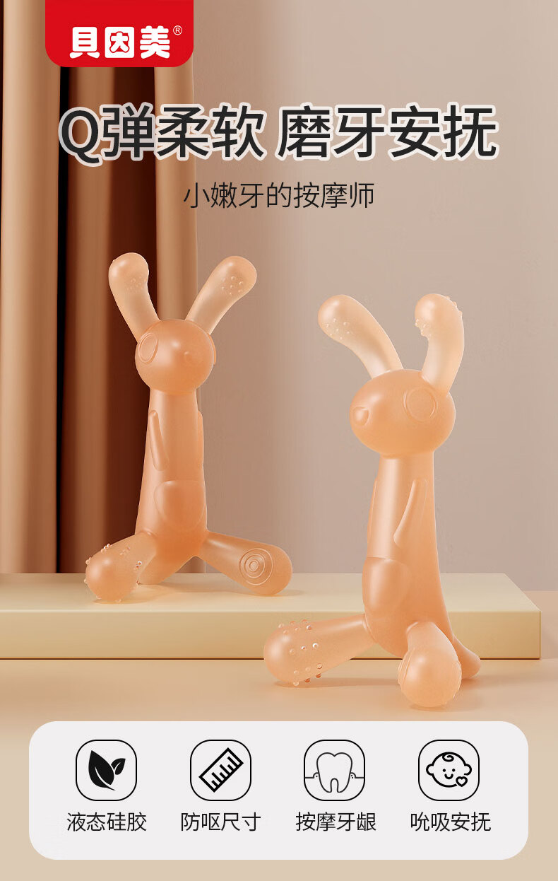 贝因美婴儿牙胶宝宝口欲期磨牙棒硅胶安抚玩具0-3-6月小兔子咬咬乐咬胶