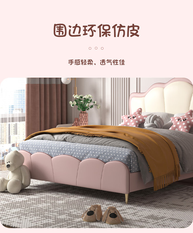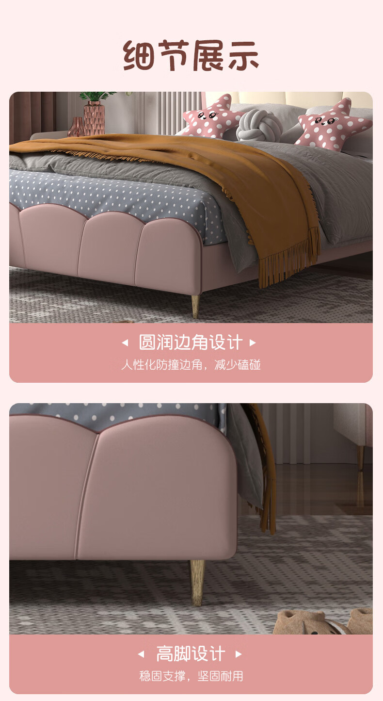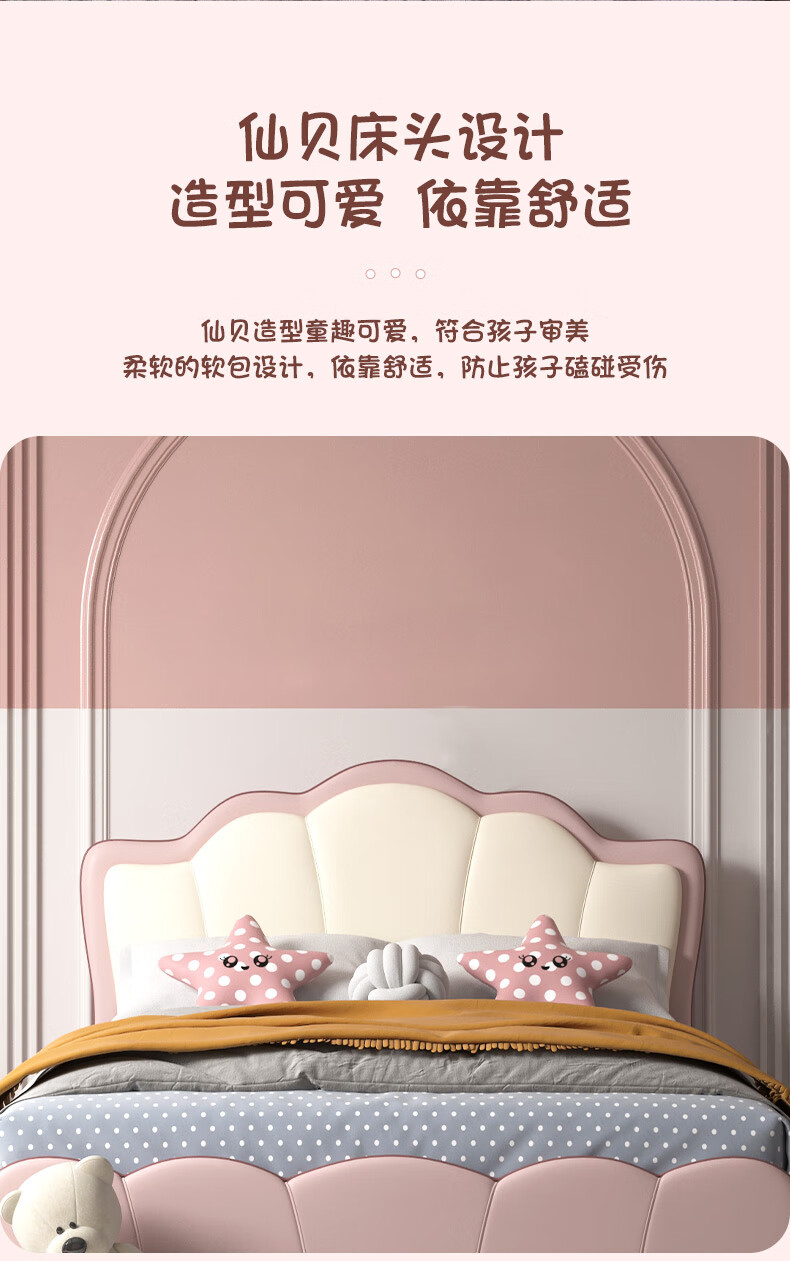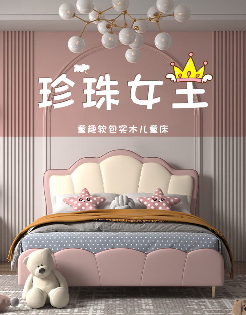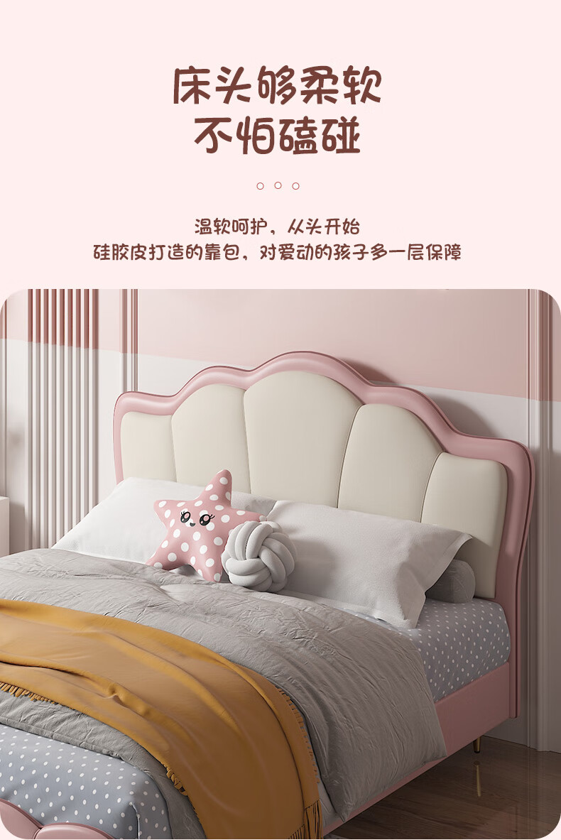 慕思(de RUCCI)珍珠公主儿童床软包硅胶实木单人床男孩卧室床 粉色 1.8*2米