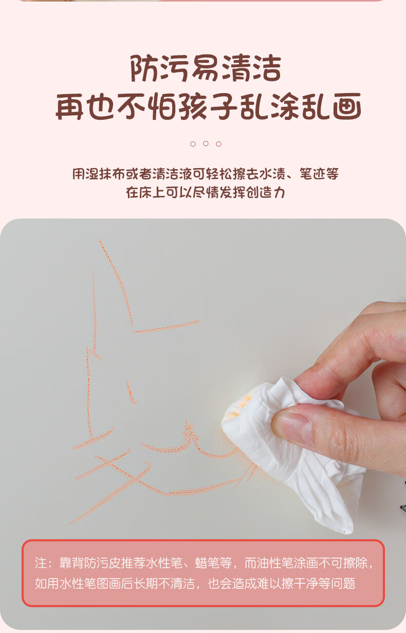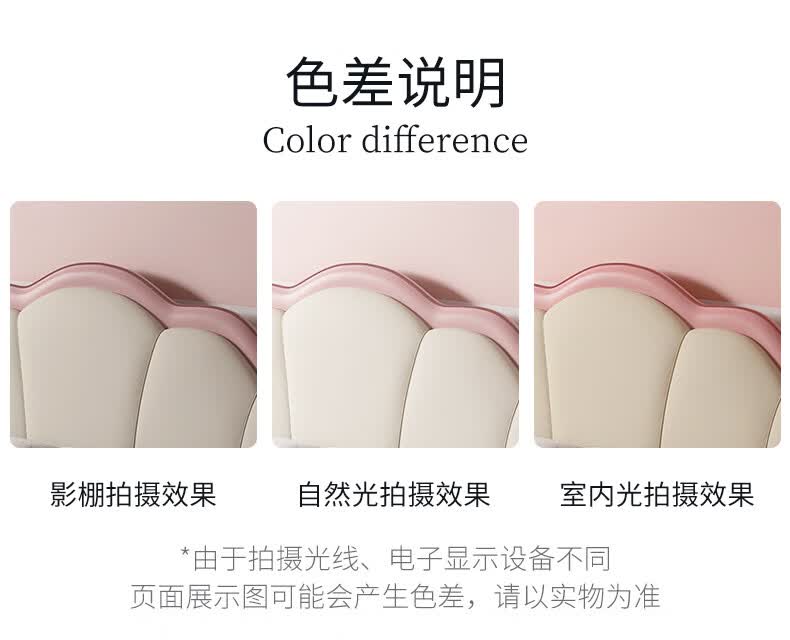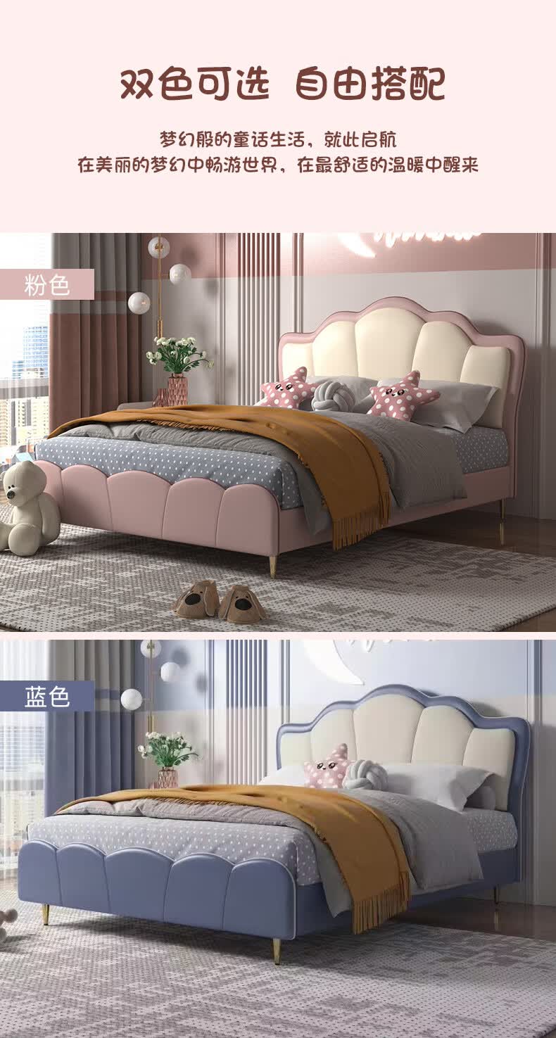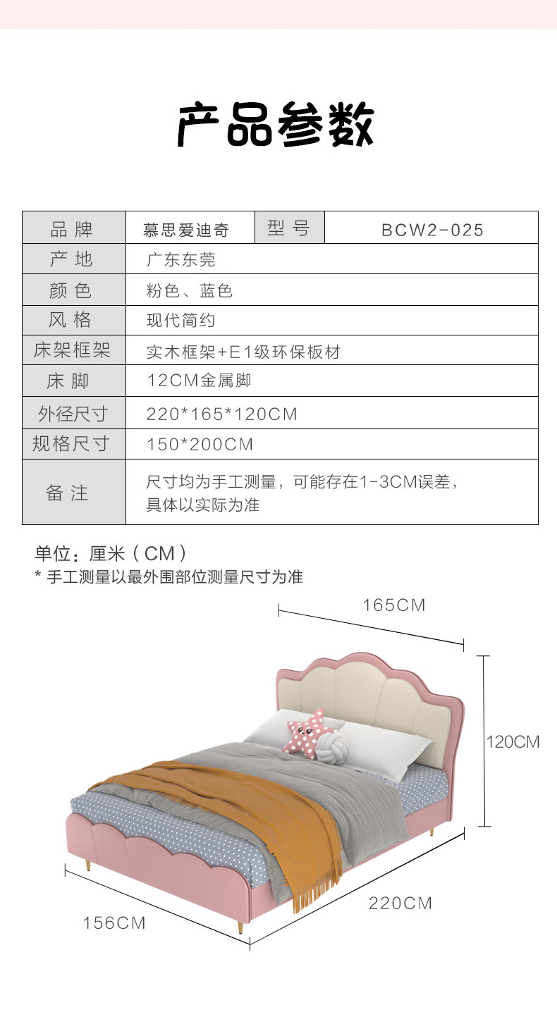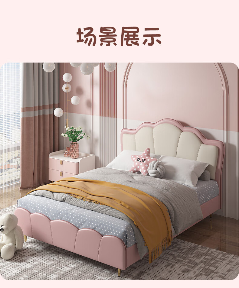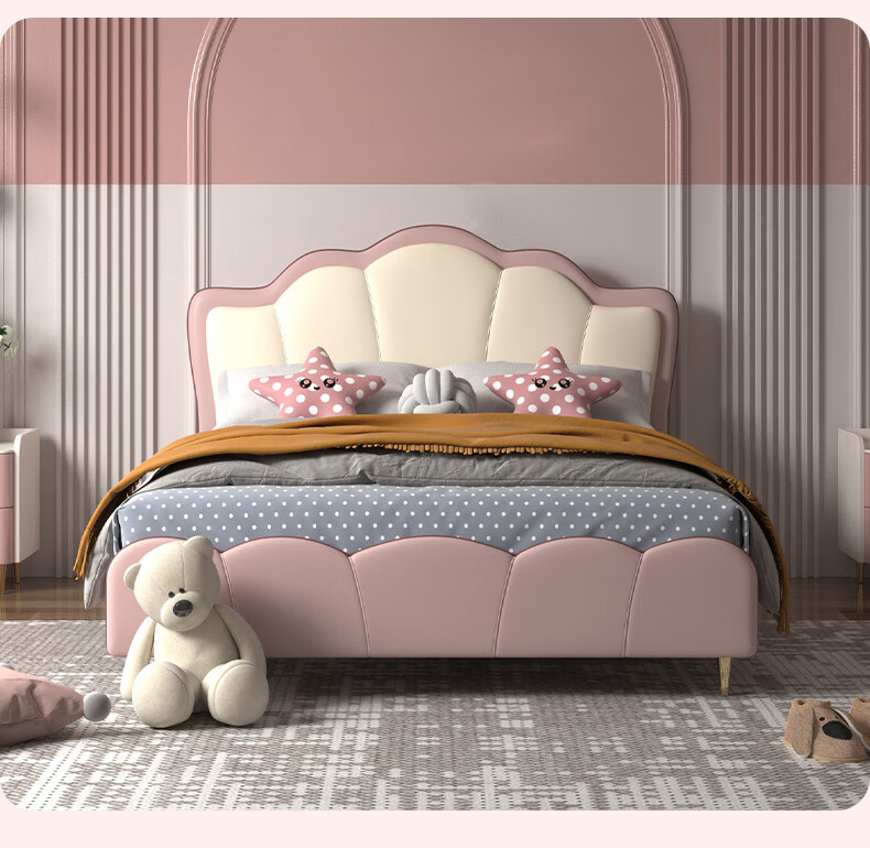 慕思(de RUCCI)珍珠公主儿童床软包硅胶实木单人床男孩卧室床 粉色 1.8*2米