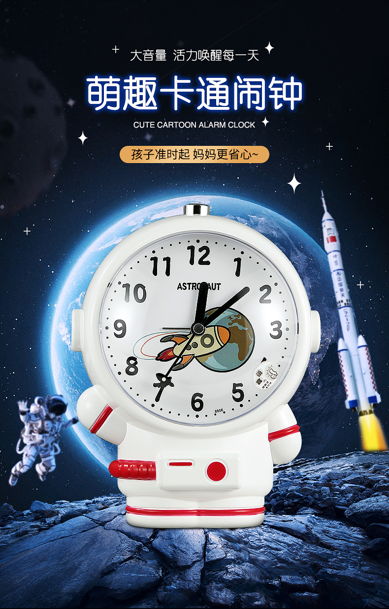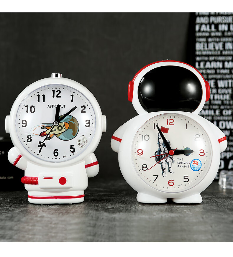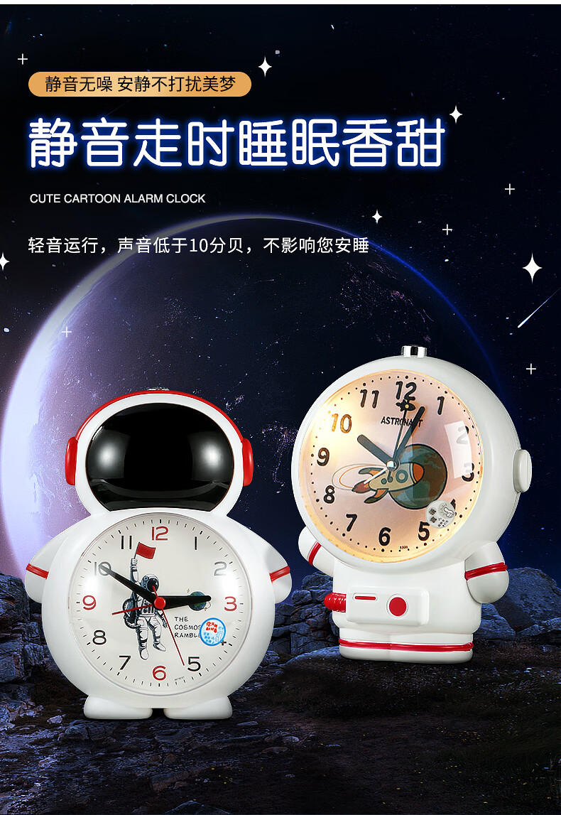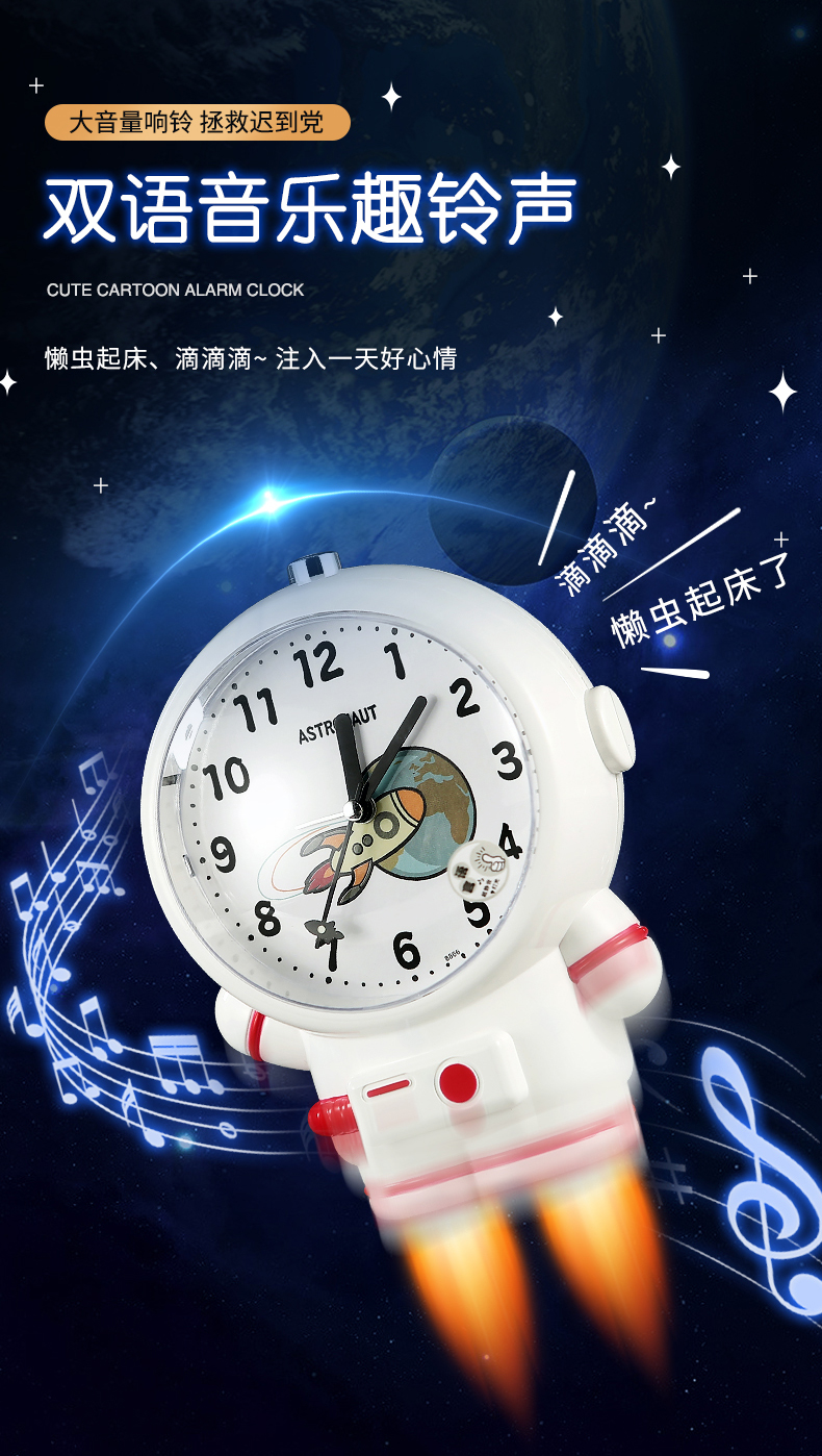 暖橙耀耀2026新款宇航员闹钟会说话学生电子钟表男女孩生日礼物懒人床头钟 红色宇航员闹钟+夜灯功能