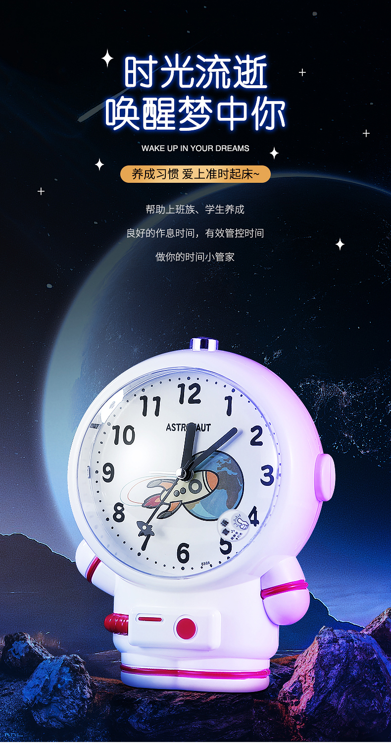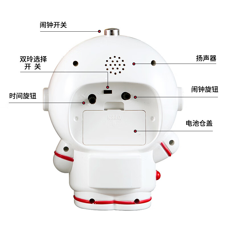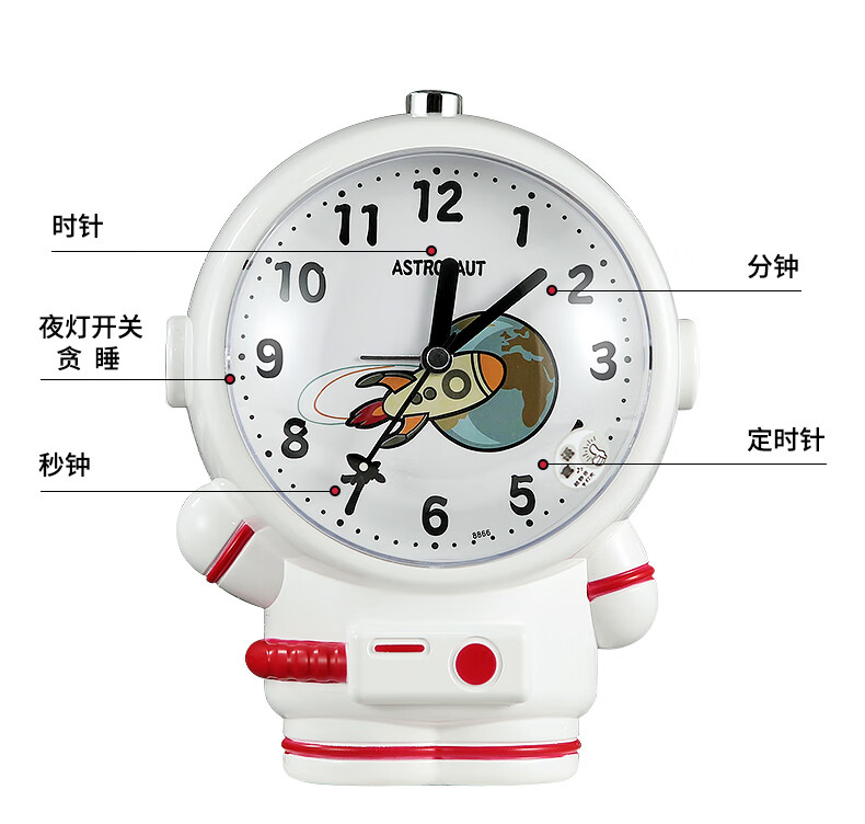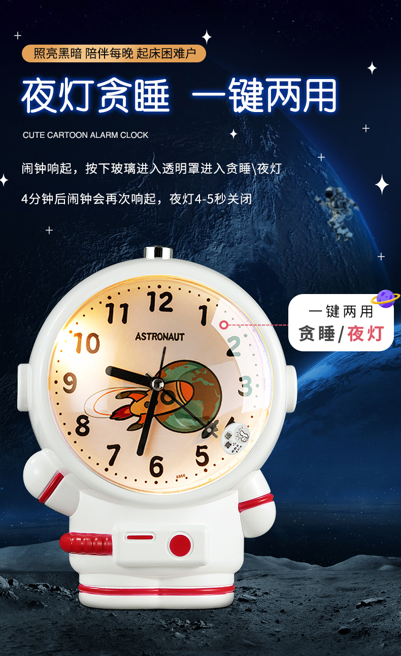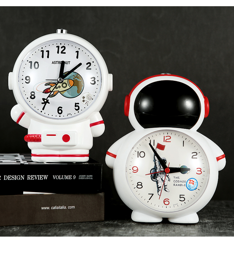 暖橙耀耀2026新款宇航员闹钟会说话学生电子钟表男女孩生日礼物懒人床头钟 红色宇航员闹钟+夜灯功能