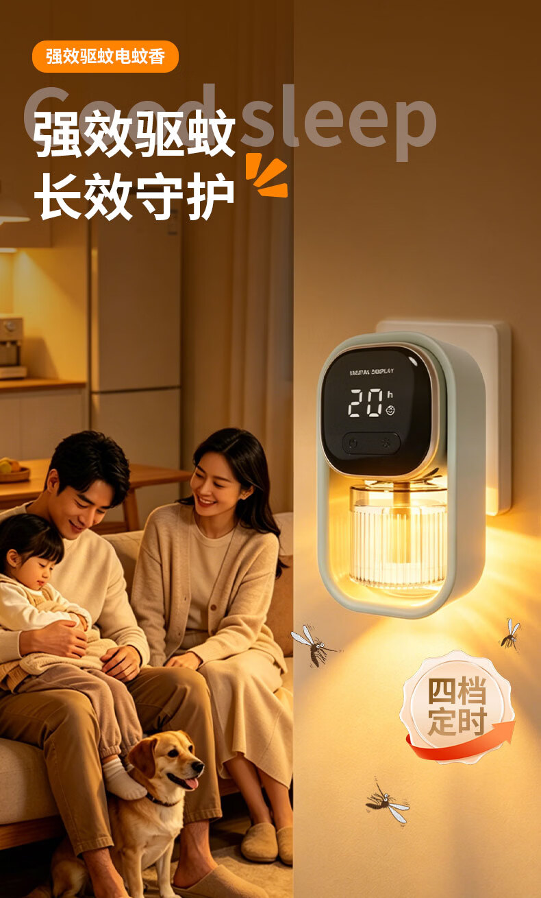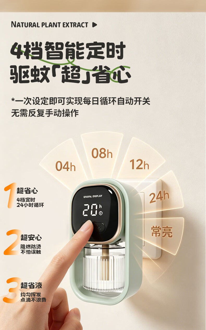 城曼电蚊香液基孔肯雅热电热蚊香液驱蚊液婴儿孕妇无香型灭蚊神器 【4档智能定时】1器1液