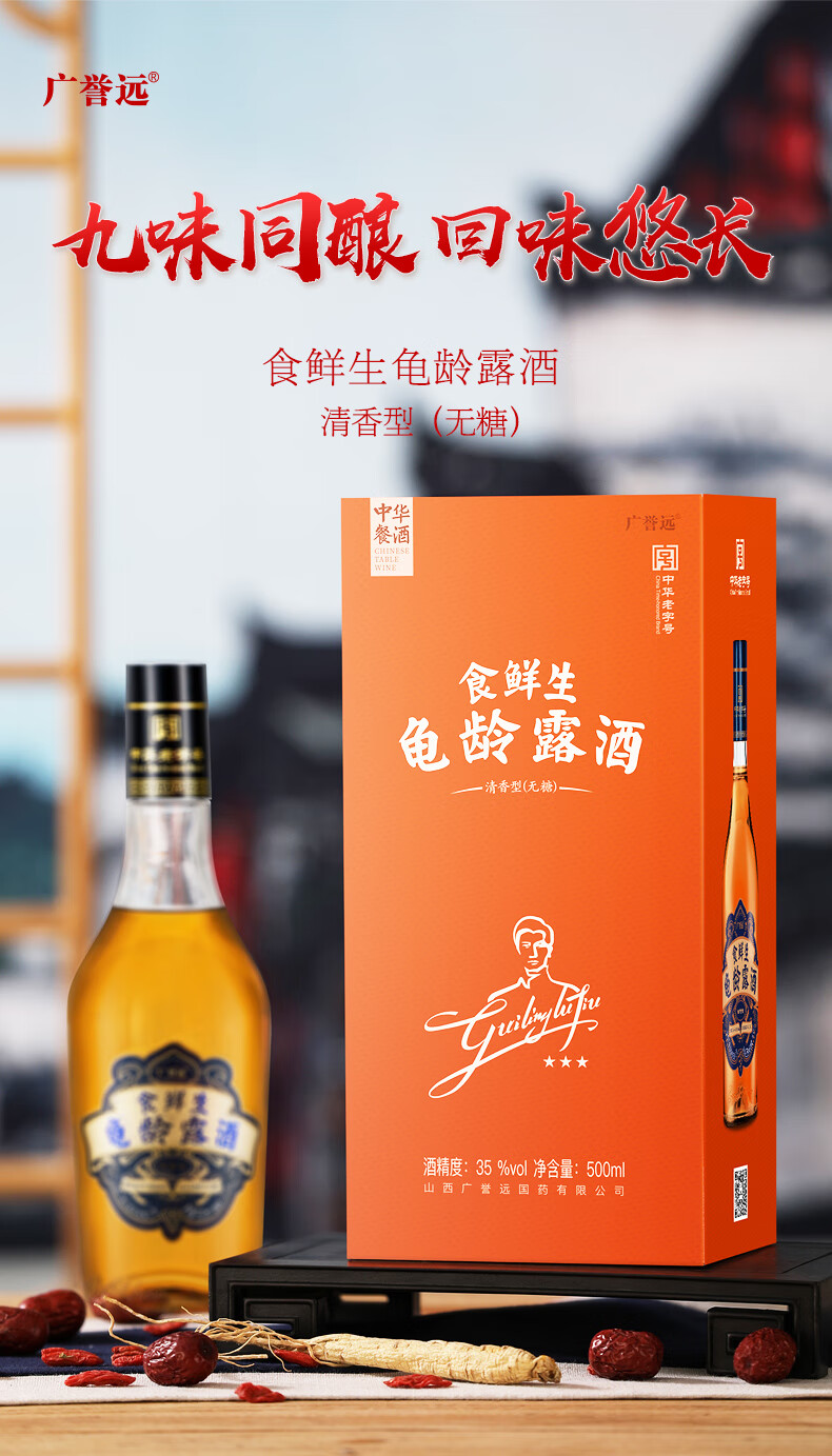 广誉远食鲜生龟龄露酒囤货500ml/瓶装 35度 500mL 6瓶 整箱装