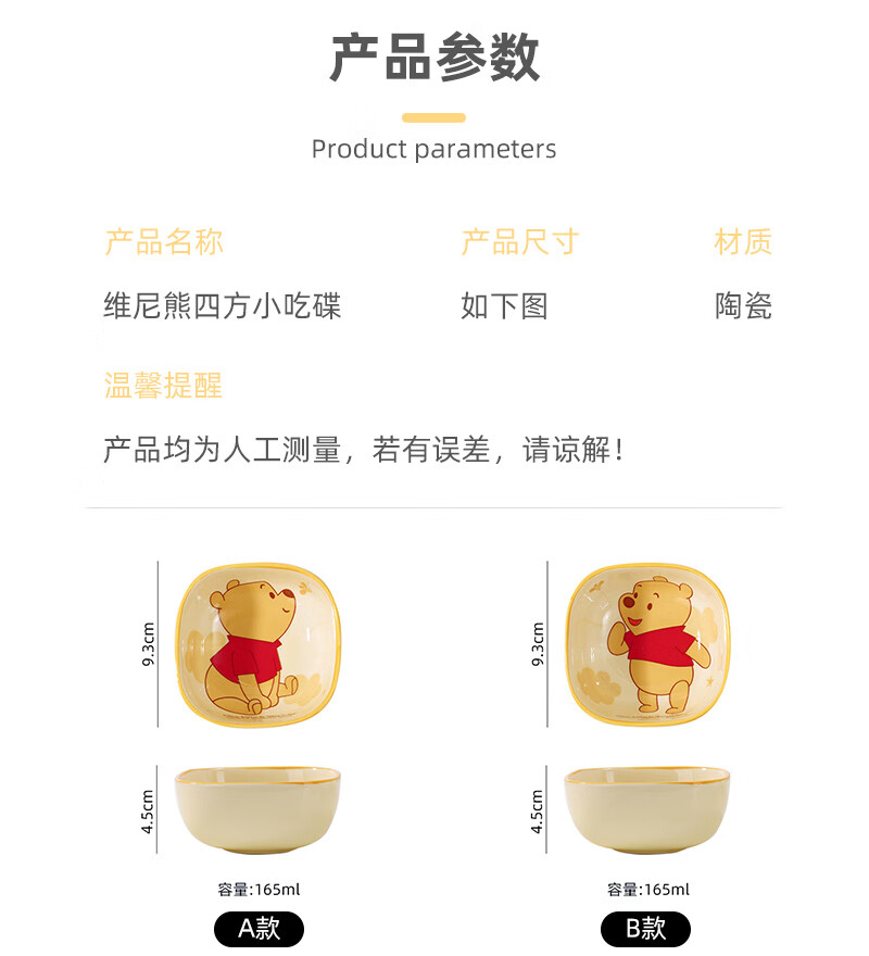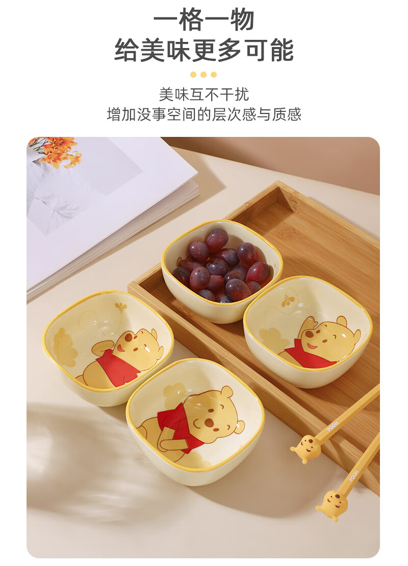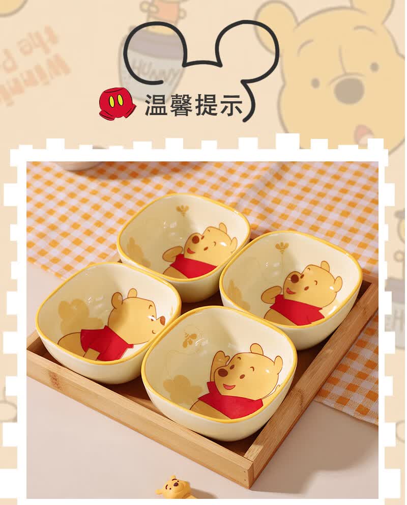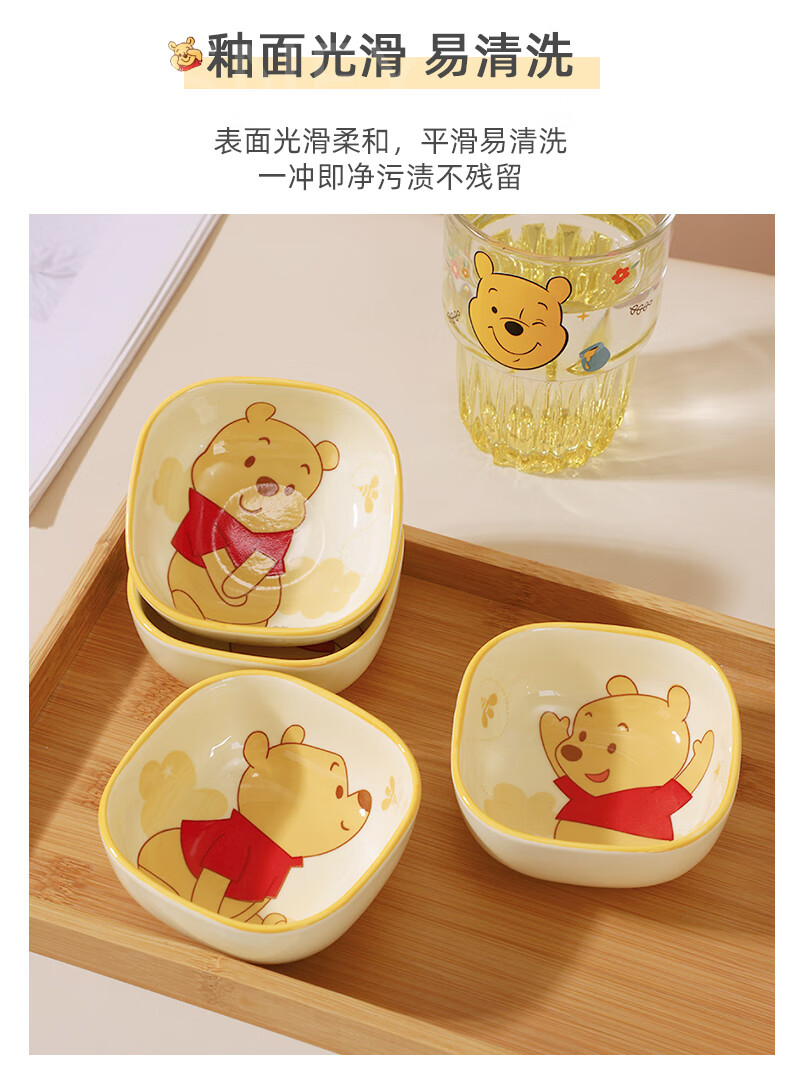 迪士尼正版小食碟清仓便携精致可爱风家庭餐具女生学生儿童宿舍碟 3.75英寸方碟云朵维尼A款 1个