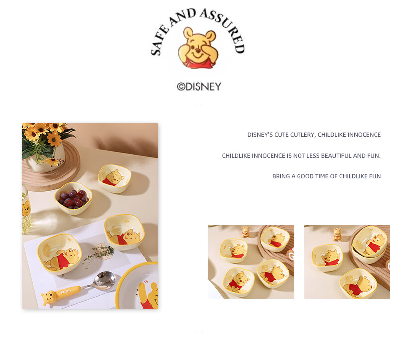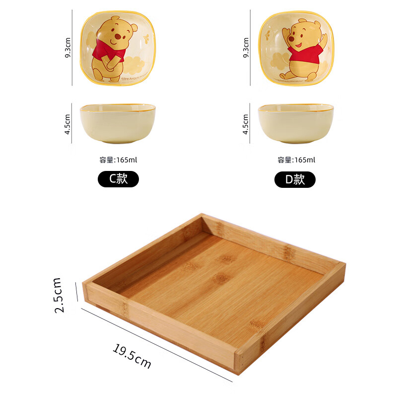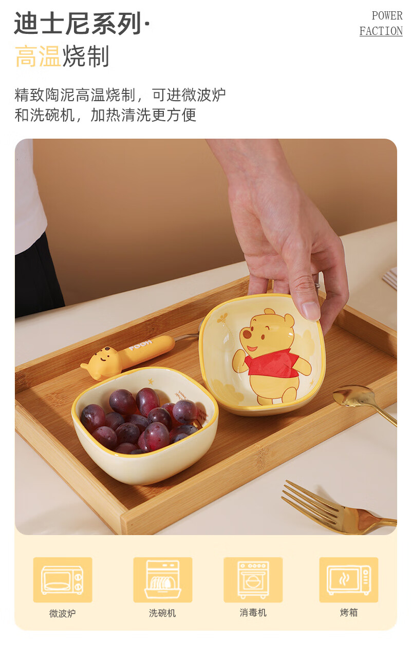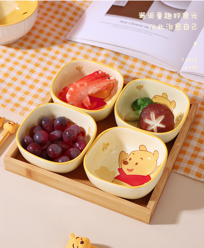 迪士尼正版小食碟清仓便携精致可爱风家庭餐具女生学生儿童宿舍碟 3.75英寸方碟云朵维尼A款 1个