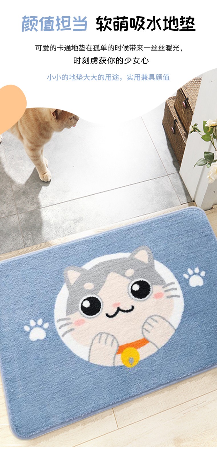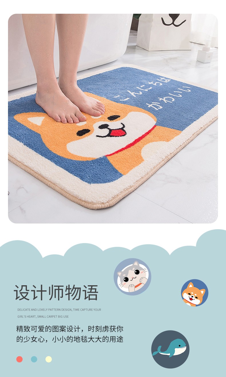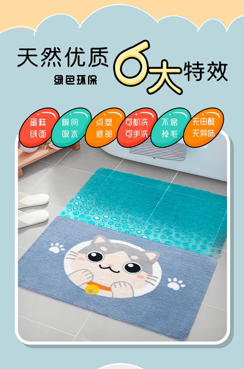 布迪思卫生间地垫浴室吸水防滑垫门垫卧室进门户外卫浴脚垫家用垫子地垫 萌宠可爱猫【仿羊绒】 40cm*60cm 2件数