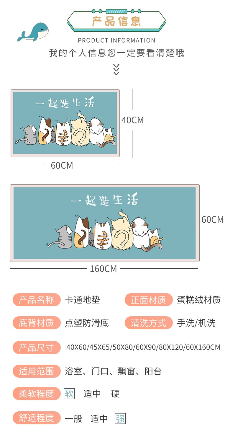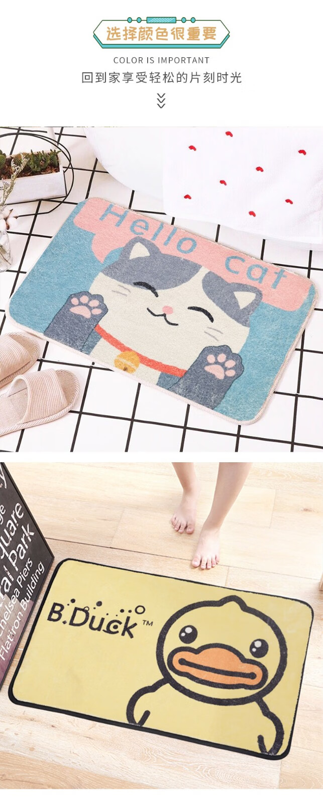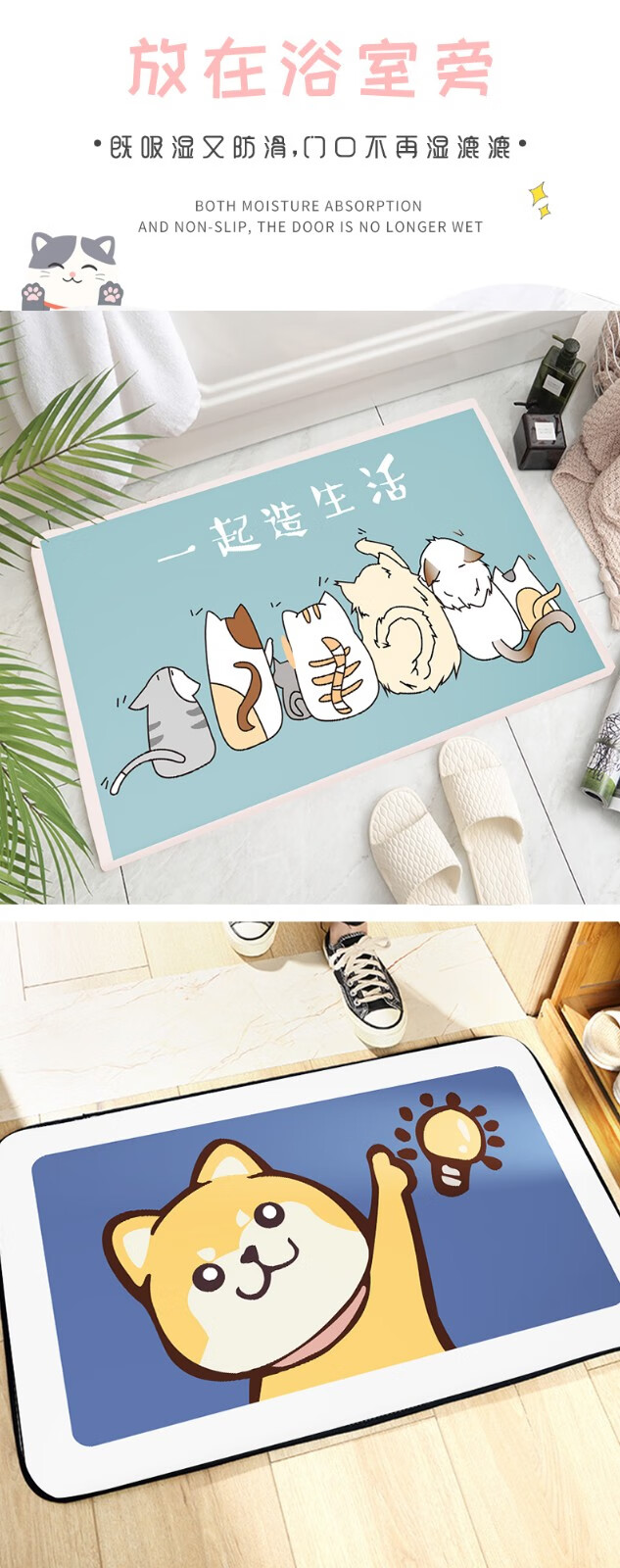 布迪思卫生间地垫浴室吸水防滑垫门垫卧室进门户外卫浴脚垫家用垫子地垫 萌宠可爱猫【仿羊绒】 40cm*60cm 2件数