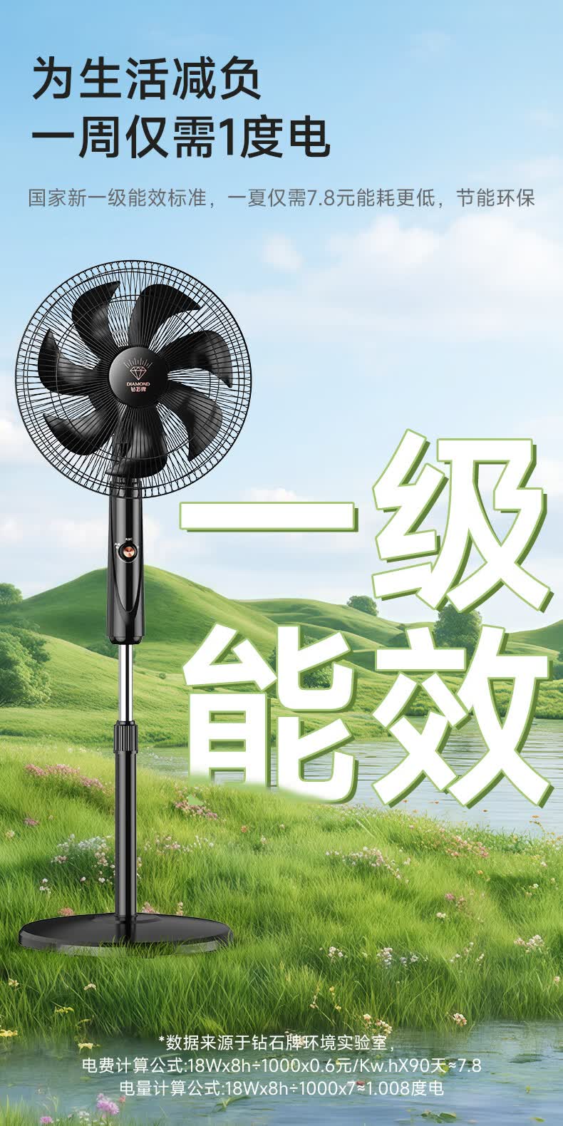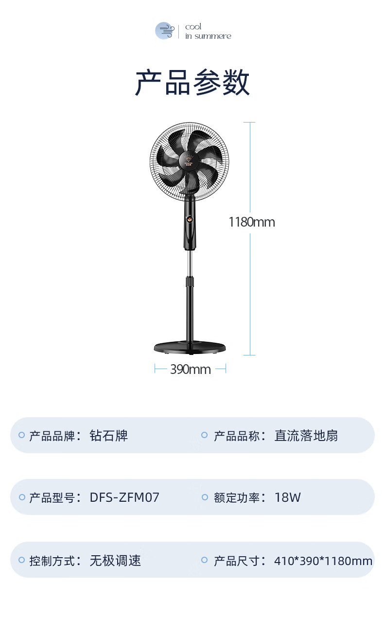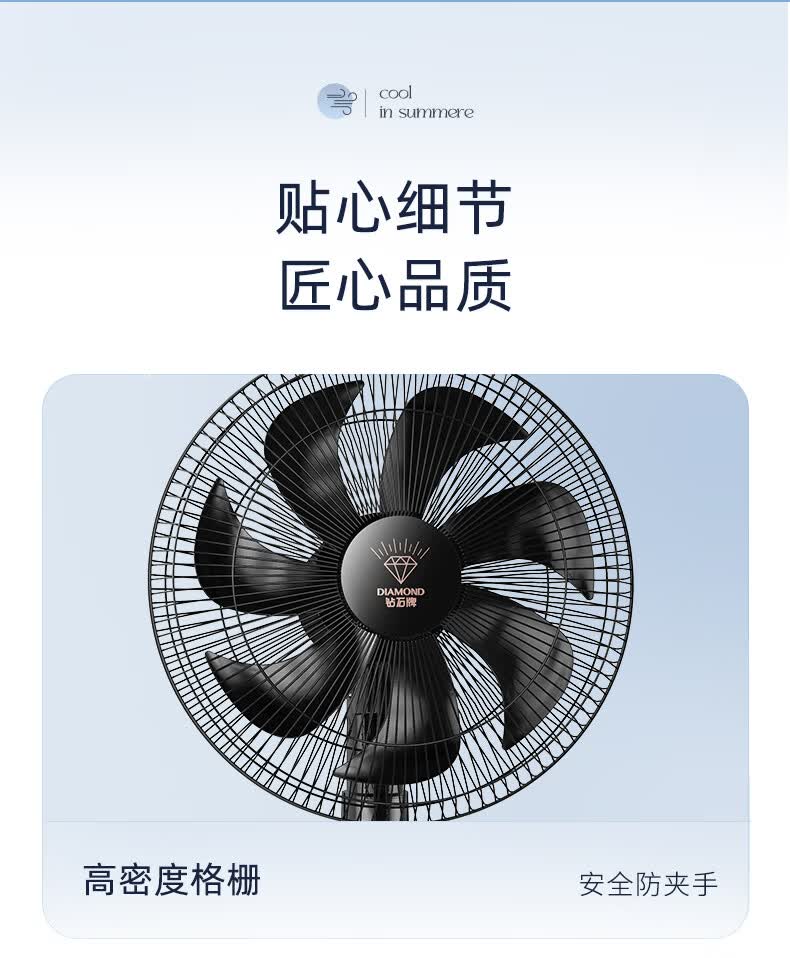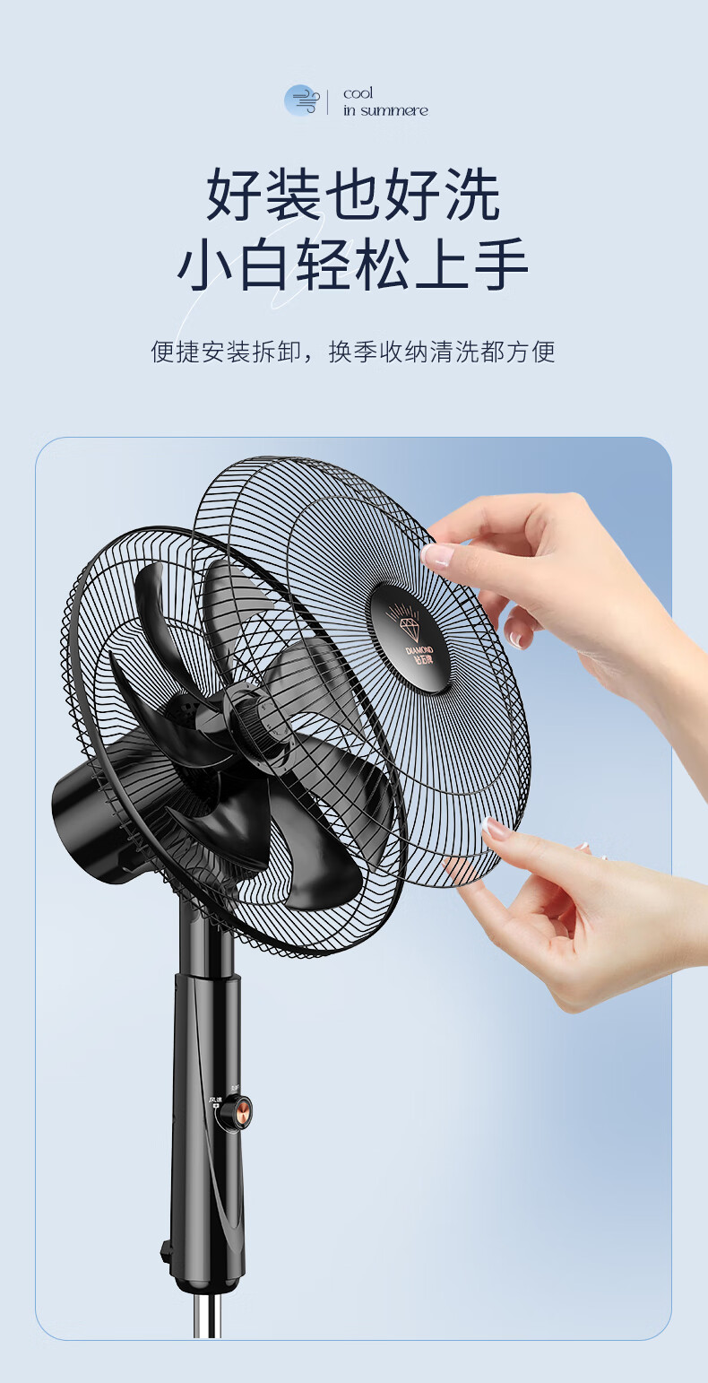 钻石牌落地扇家用电风扇【1级能效+直流变频】摇头扇落地风扇无极变速调控强劲风力大网罩DFS-ZFM07z