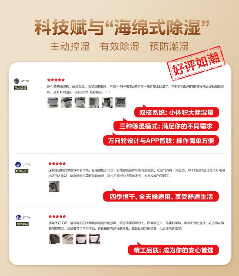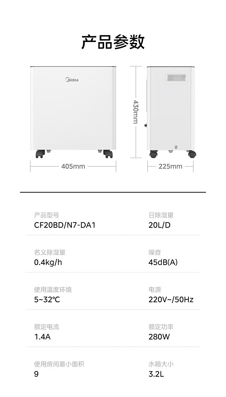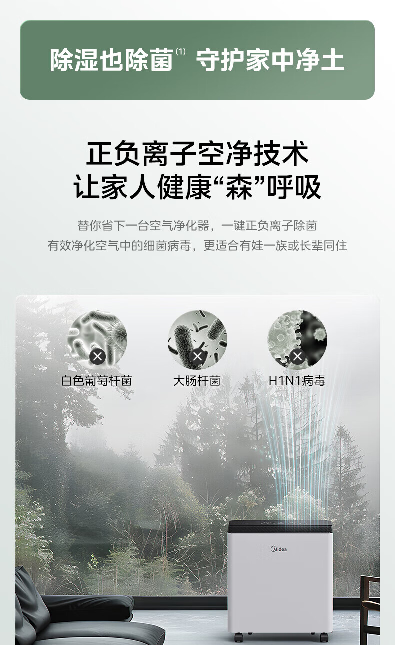 美的小海绵除湿机/抽湿机20升40㎡ 家用WiFi正负离子净化轻音室内回南天防潮专用吸湿器 20L/天 20-40㎡ 【净化除菌APP智控】