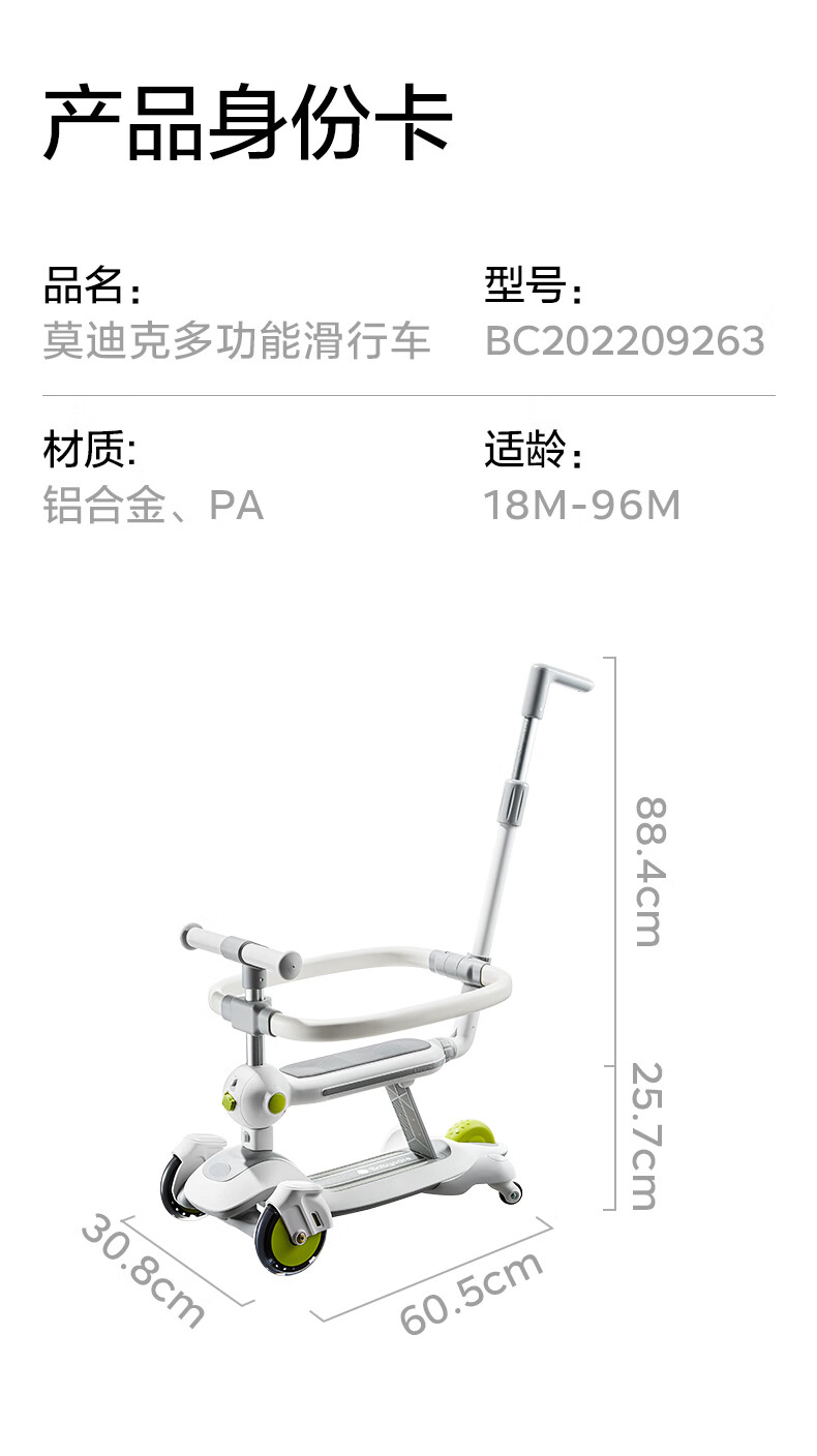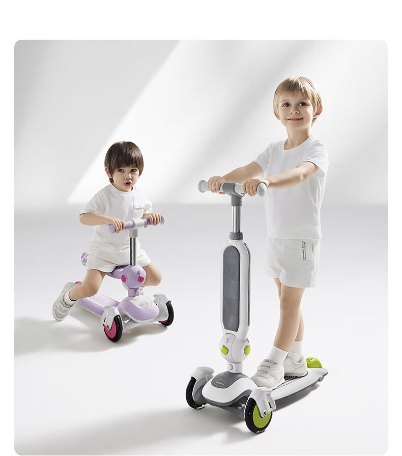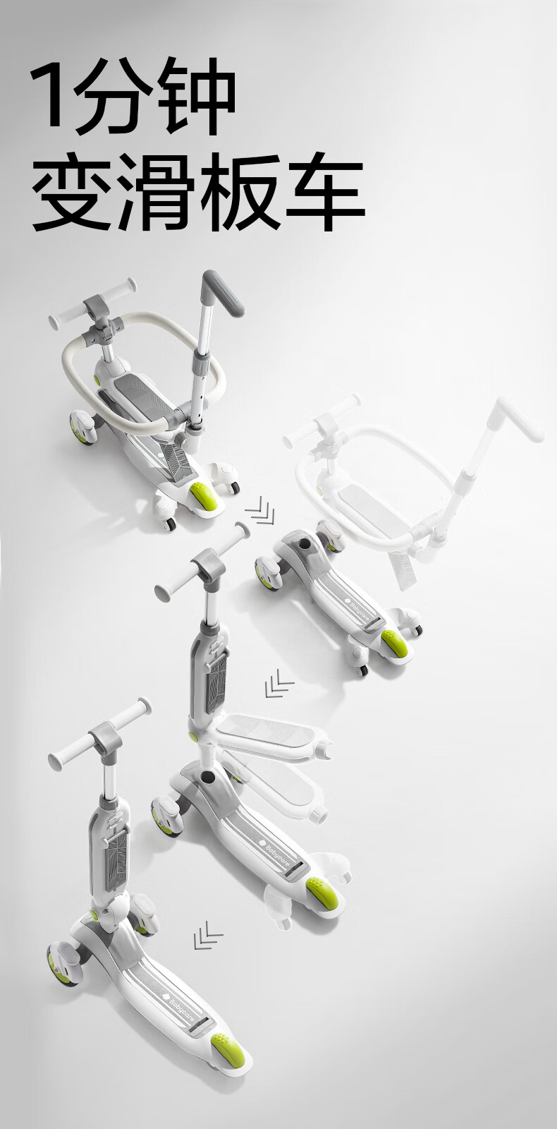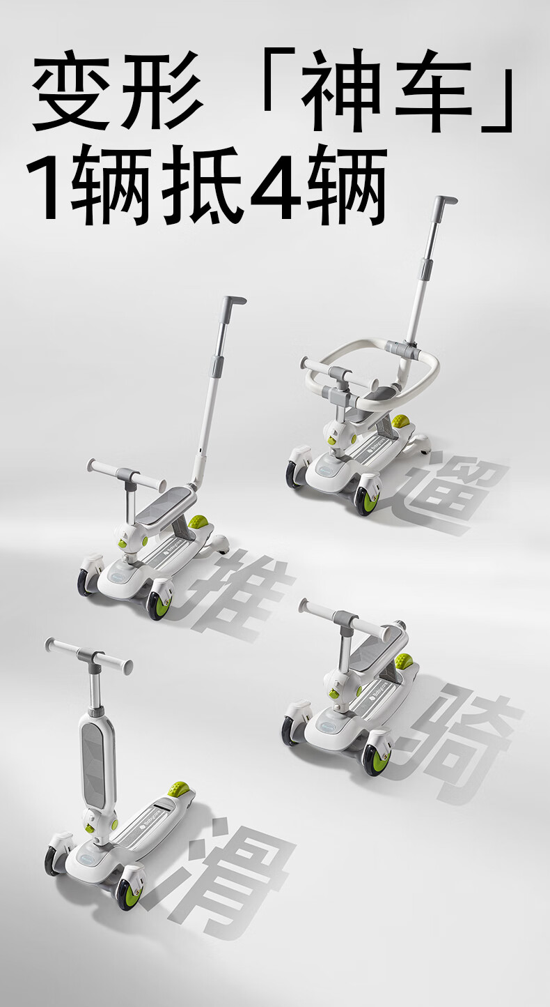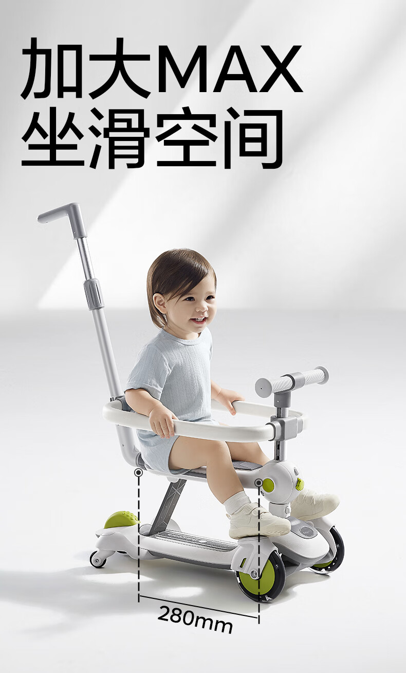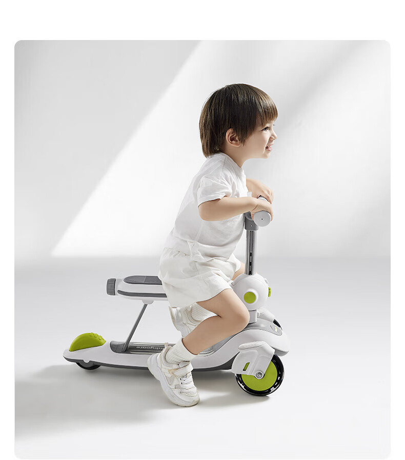 babycare五合一儿童全能滑板车1-3-6岁小孩宝宝代步车宝宝车遛娃神器 【可滑可推可骑】辛德白-无围栏