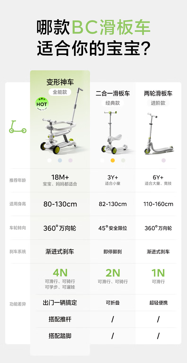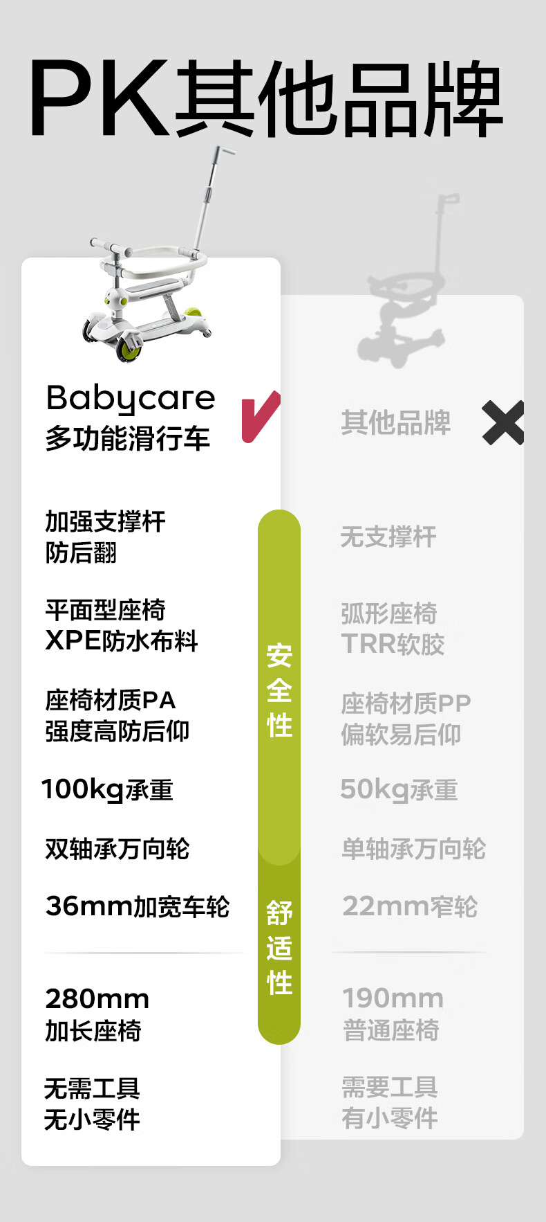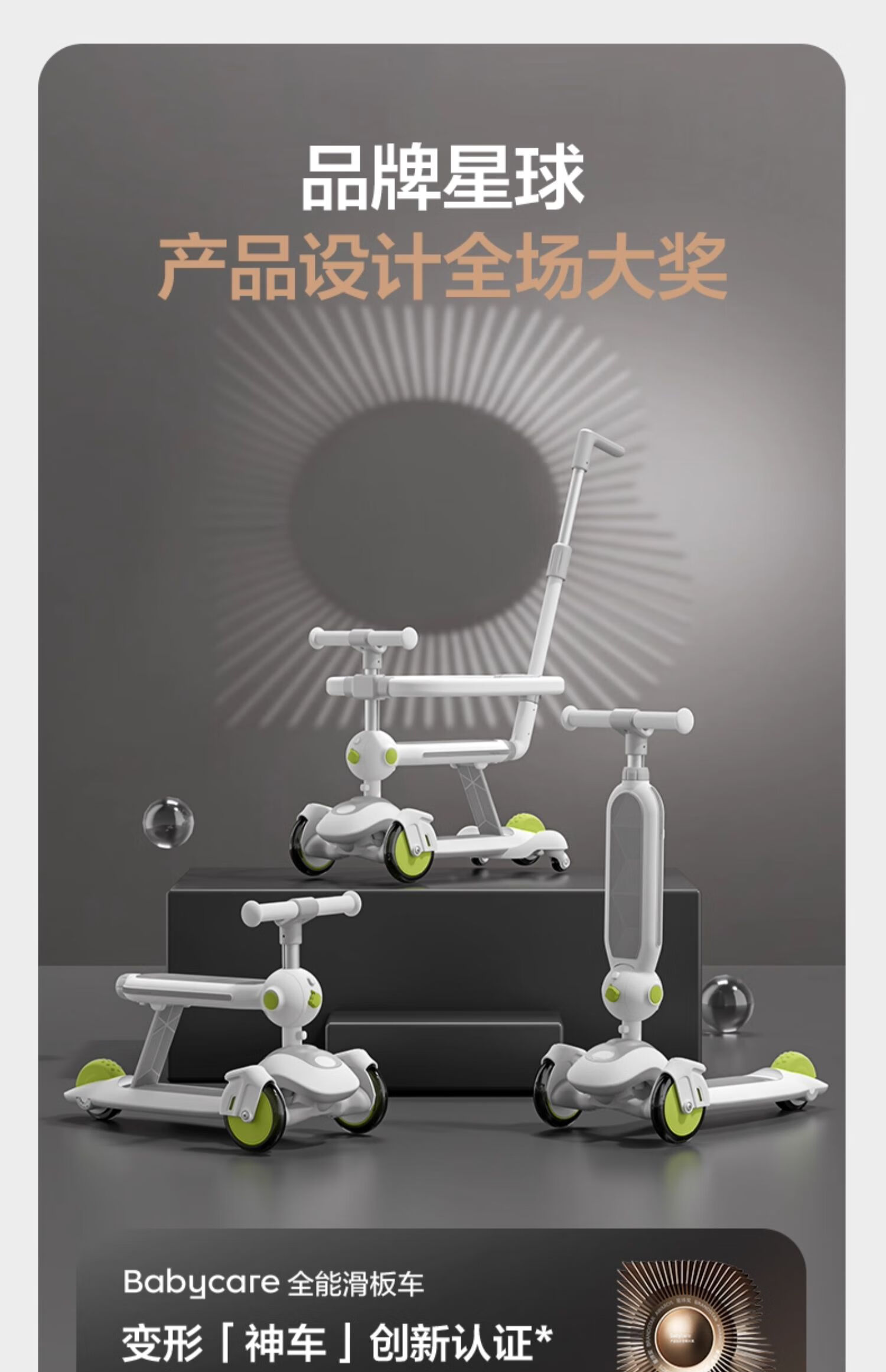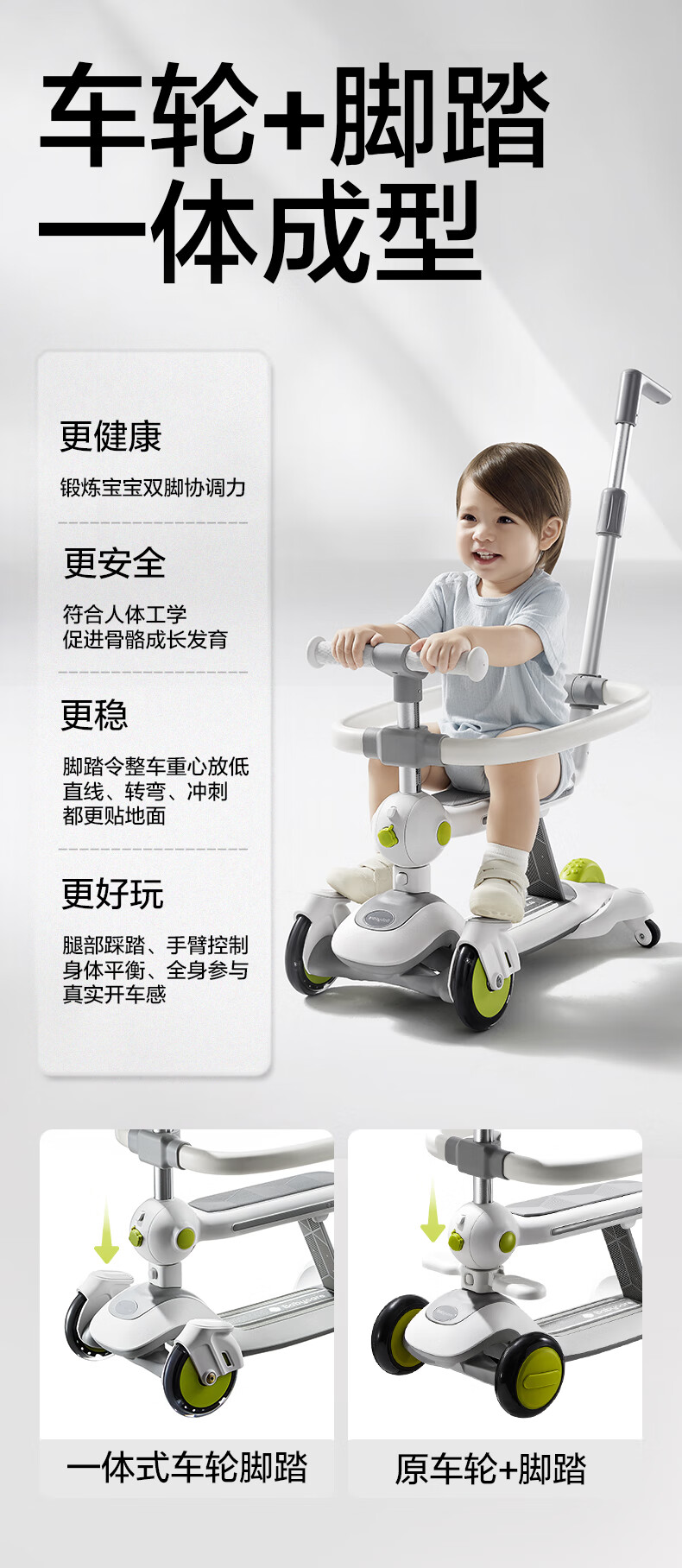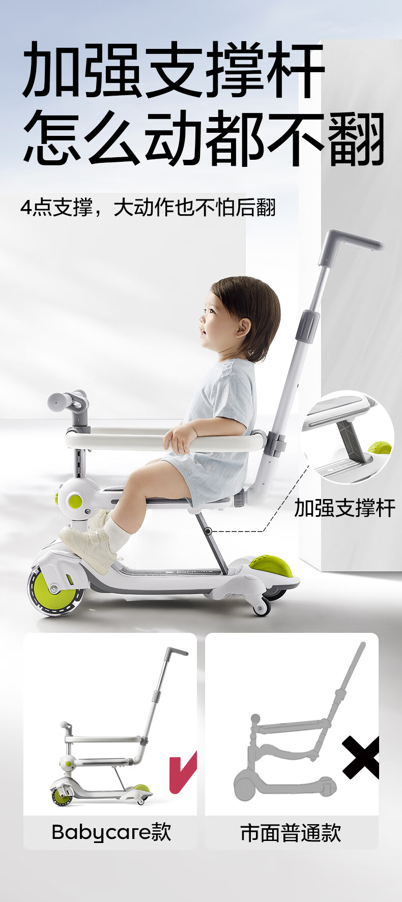 babycare五合一儿童全能滑板车1-3-6岁小孩宝宝代步车宝宝车遛娃神器 【可滑可推可骑】辛德白-无围栏