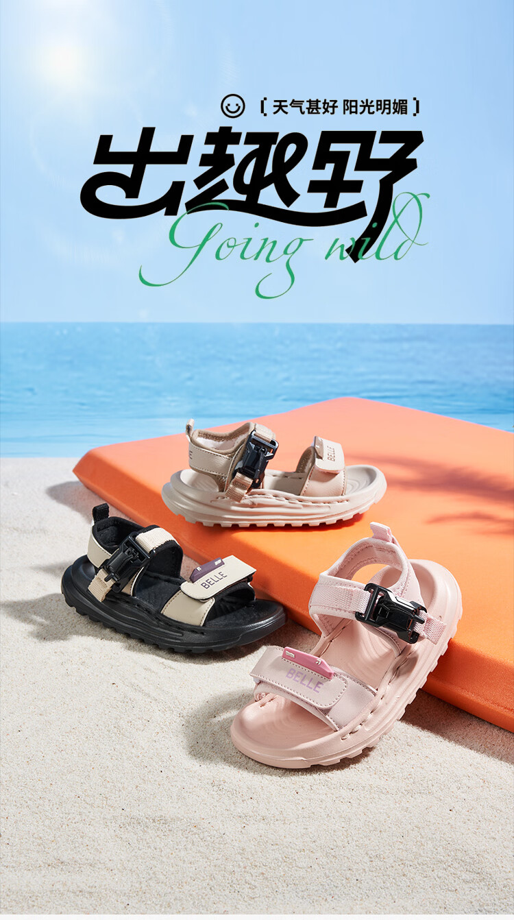 百丽童鞋儿童凉鞋男童溯溪鞋26年夏季新款男孩沙滩鞋软底女童运动凉鞋 黑色 27