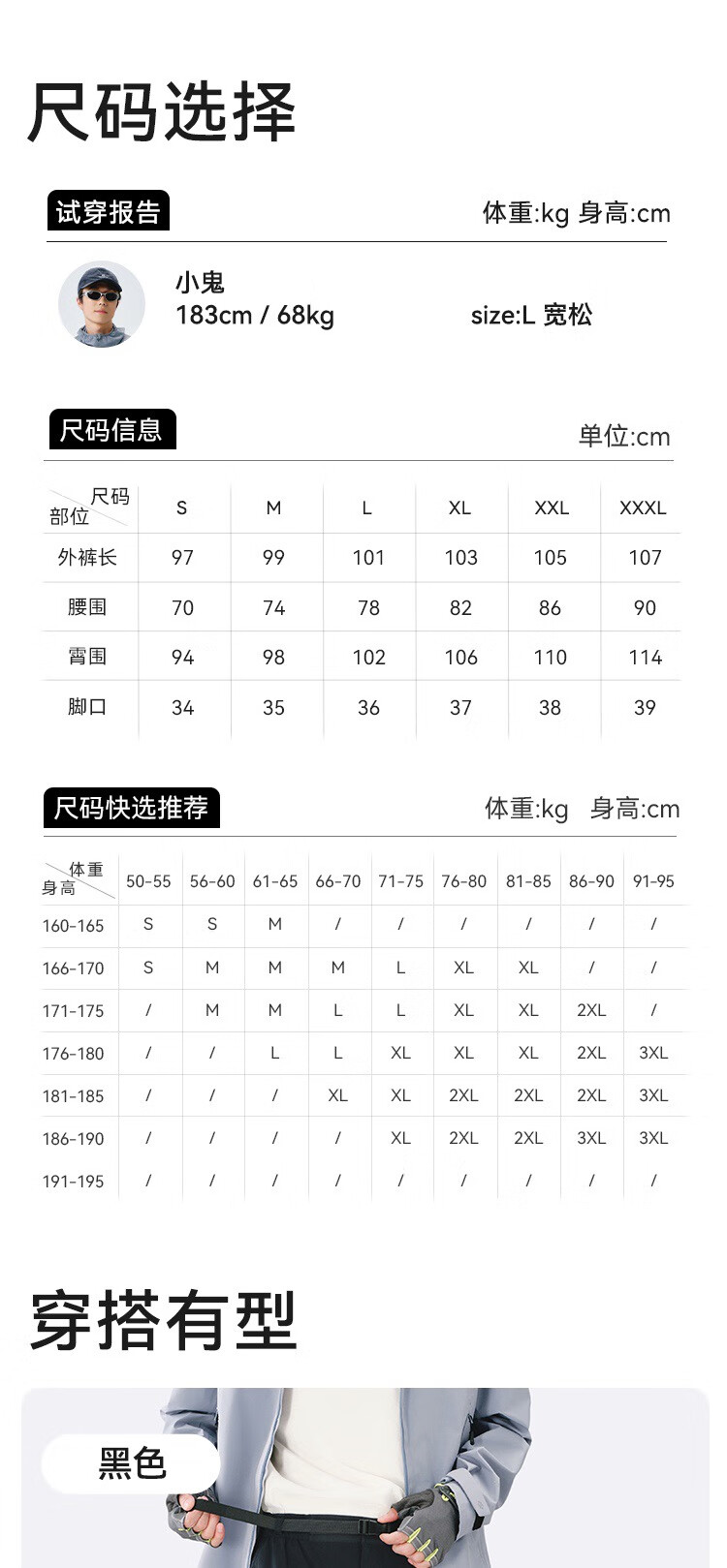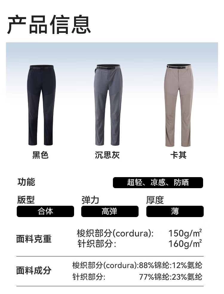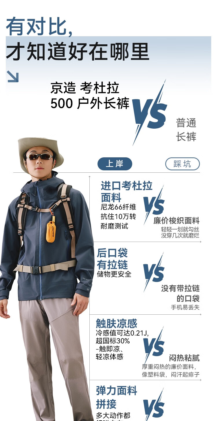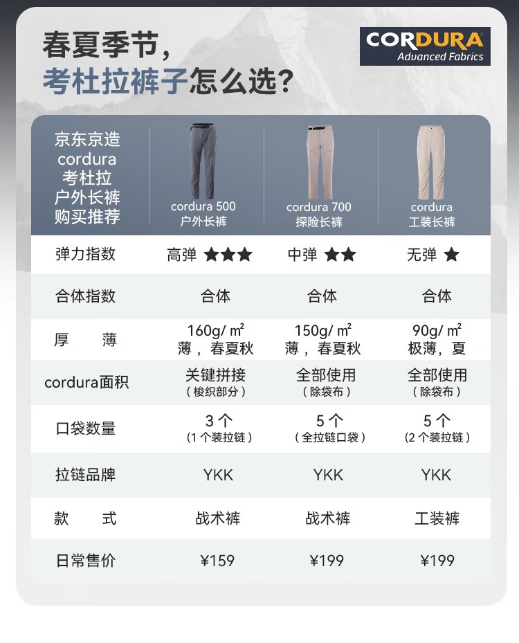 京东京造500考杜拉专业徒步户外运动长裤耐磨抗撕拉春季裤子男 黑色 XL