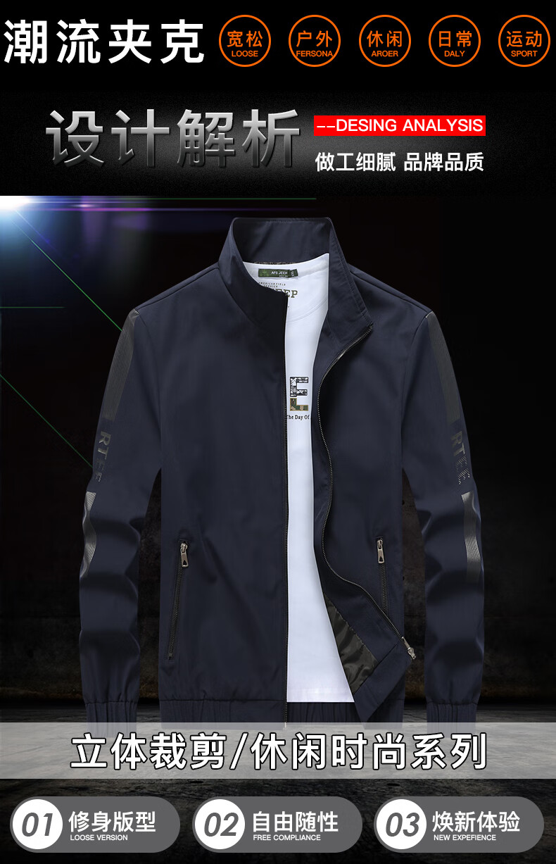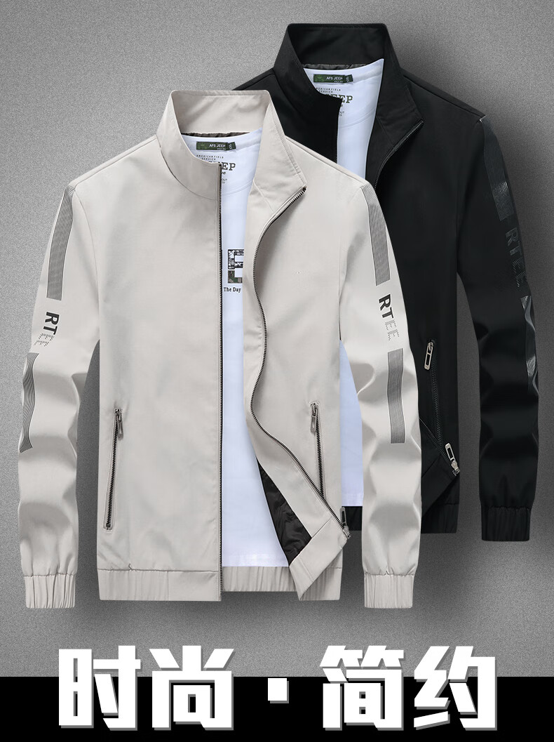 真维斯户外运动夹克男春秋季翻领潮流休闲百搭户外运动防风透气 浅灰 XL