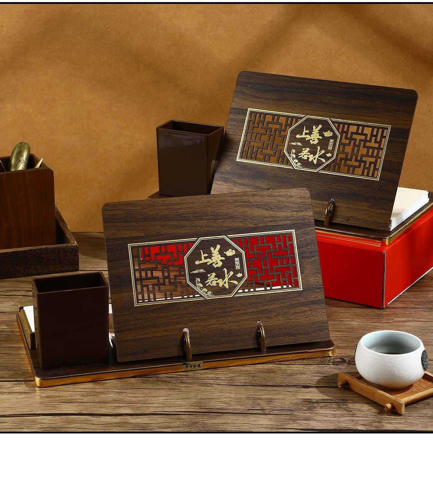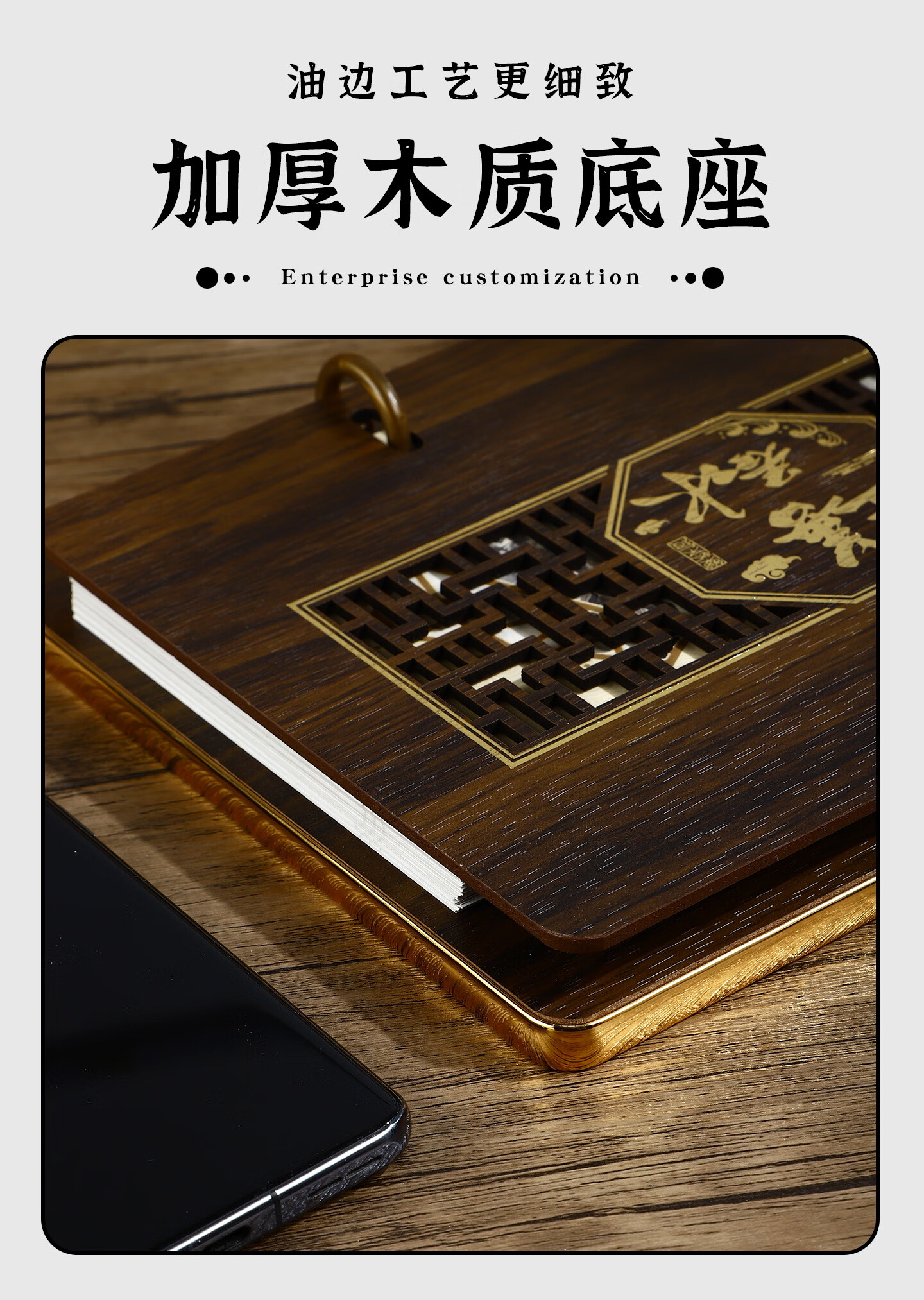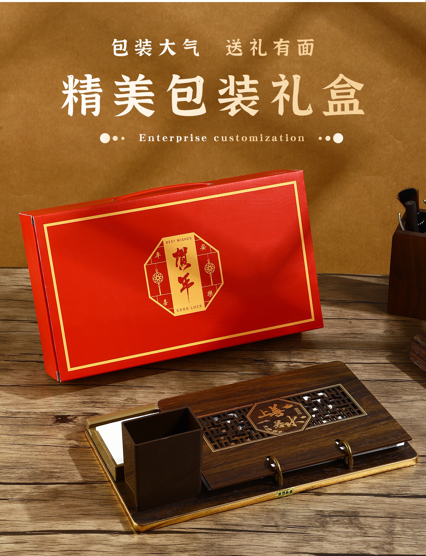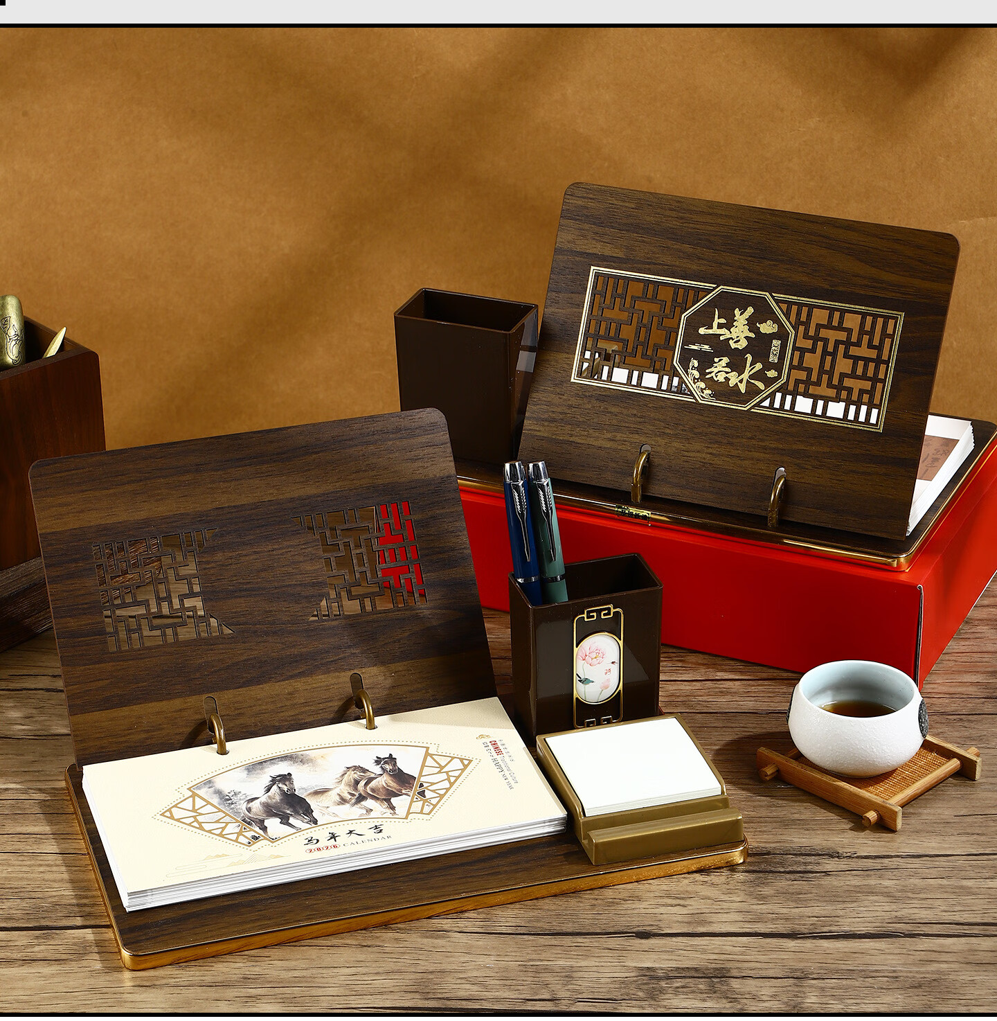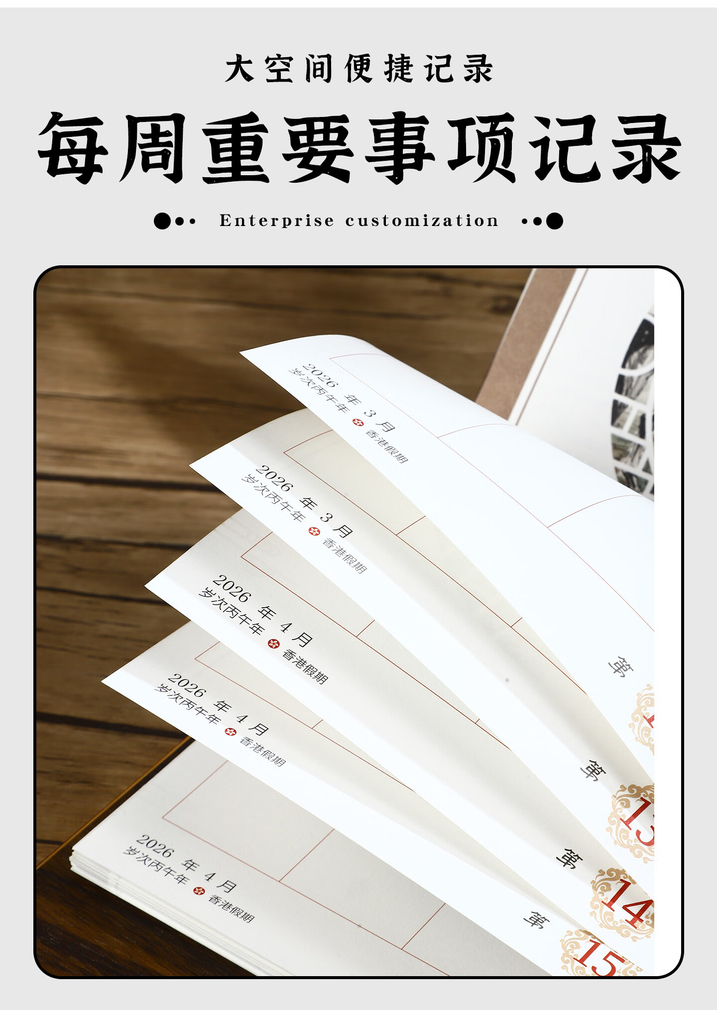 锦兔2026木质台历架多功能带笔筒台座周历定制日历桌面摆件月历创意订制商务精美高端记事周历 马年大吉