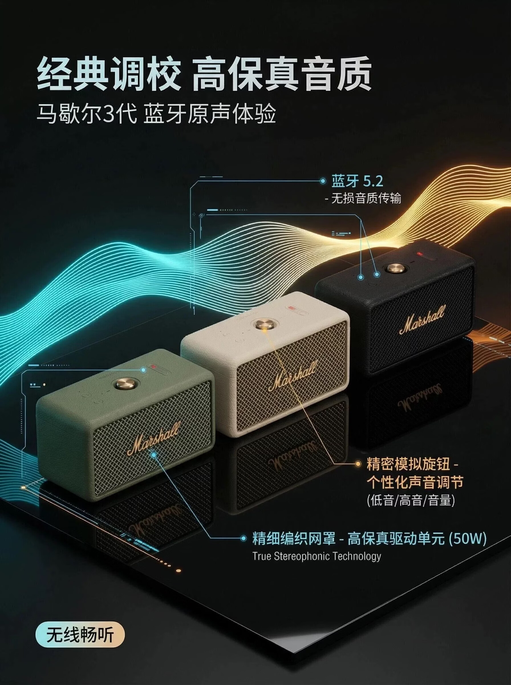marshellEMBERTON马歇尔三代无线蓝牙音响重低音炮户外防水便携小音箱高音质高颜值男女朋友送礼物解压神器 新款三代马年限定
