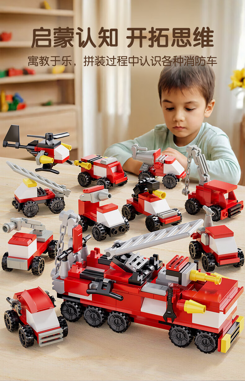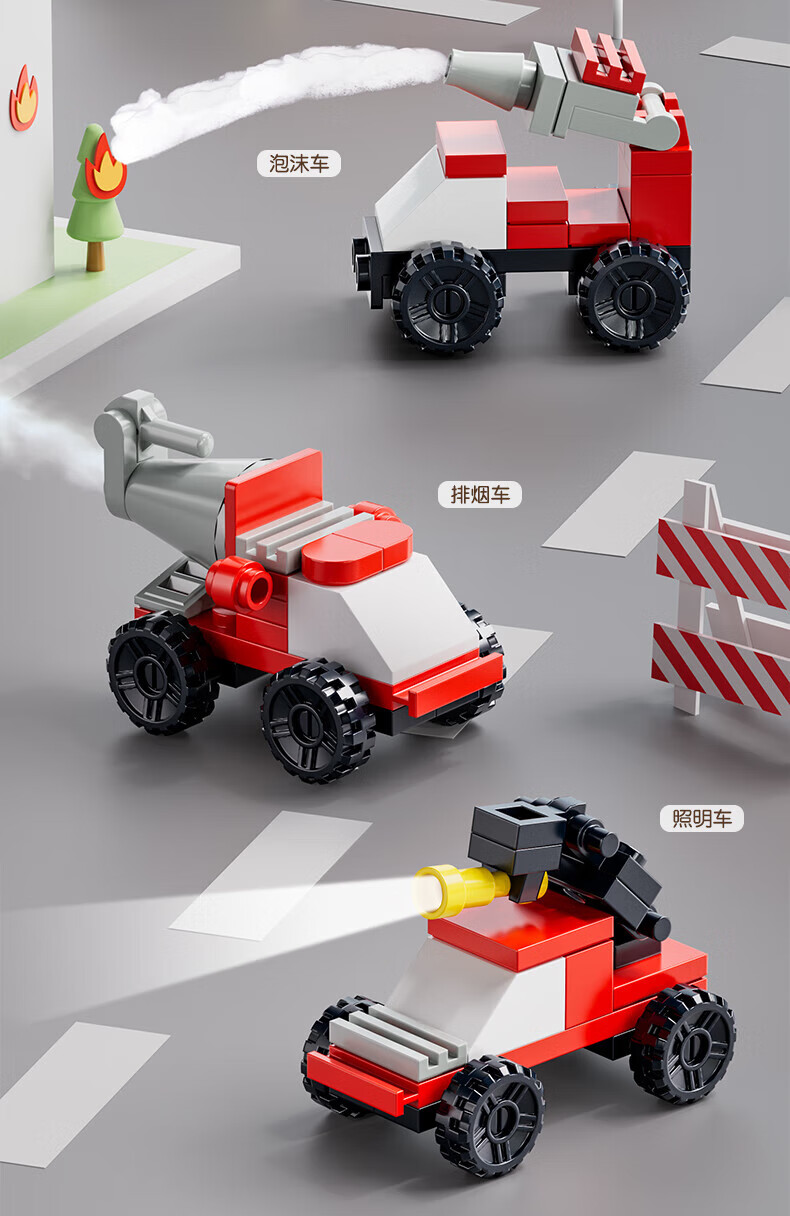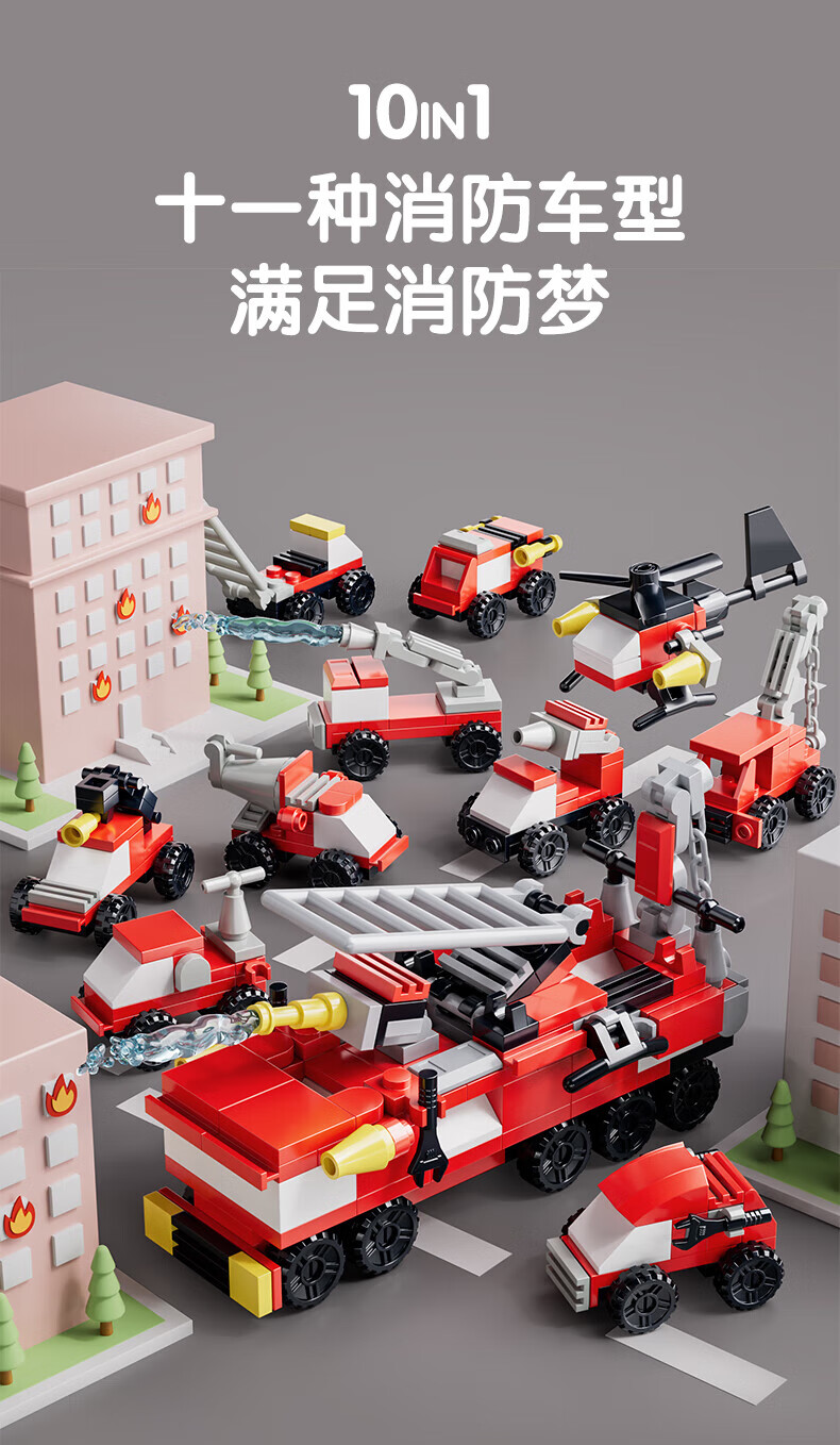 乐凑(L)积木儿童益智拼装玩具趣味模型3D立体拼图男女孩生日礼物6-12岁 【10合1消防系列】233pcs