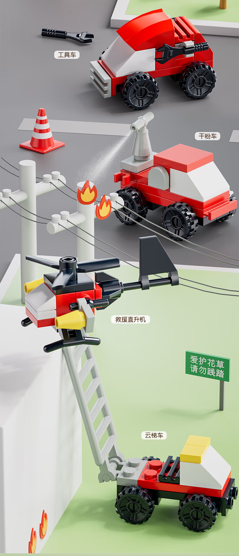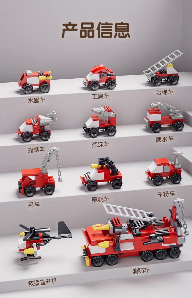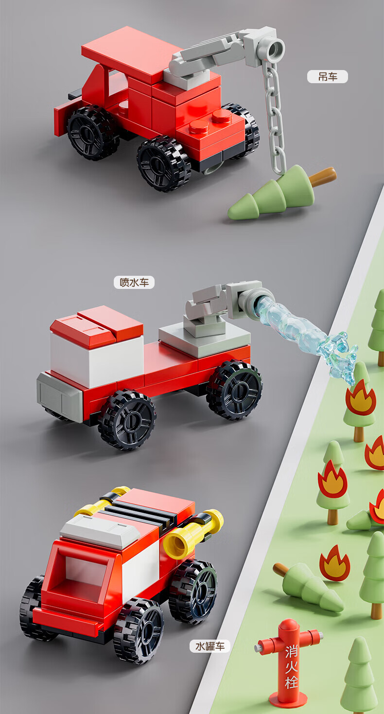 乐凑(L)积木儿童益智拼装玩具趣味模型3D立体拼图男女孩生日礼物6-12岁 【10合1消防系列】233pcs