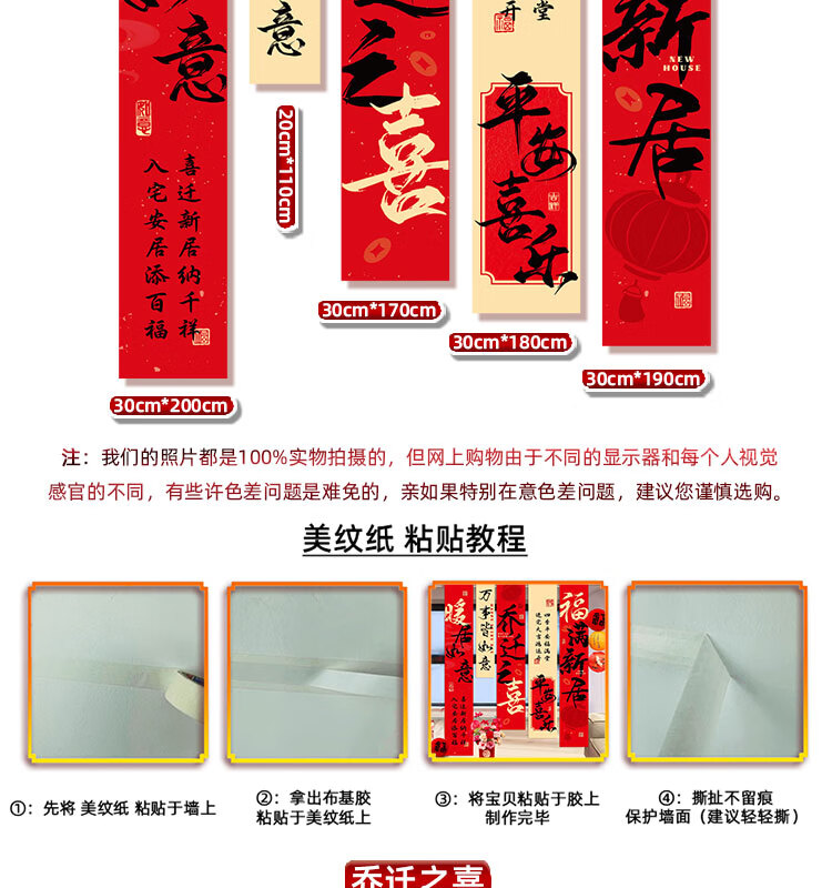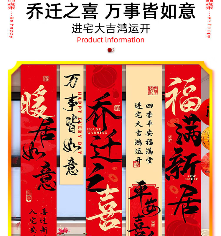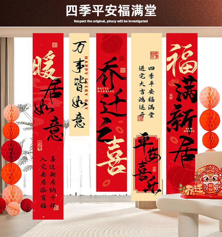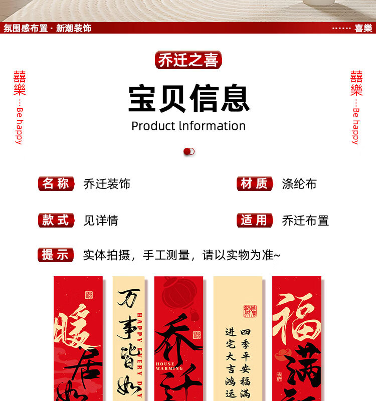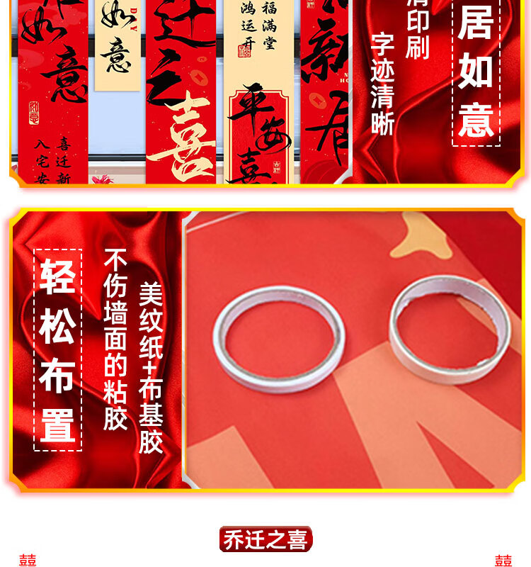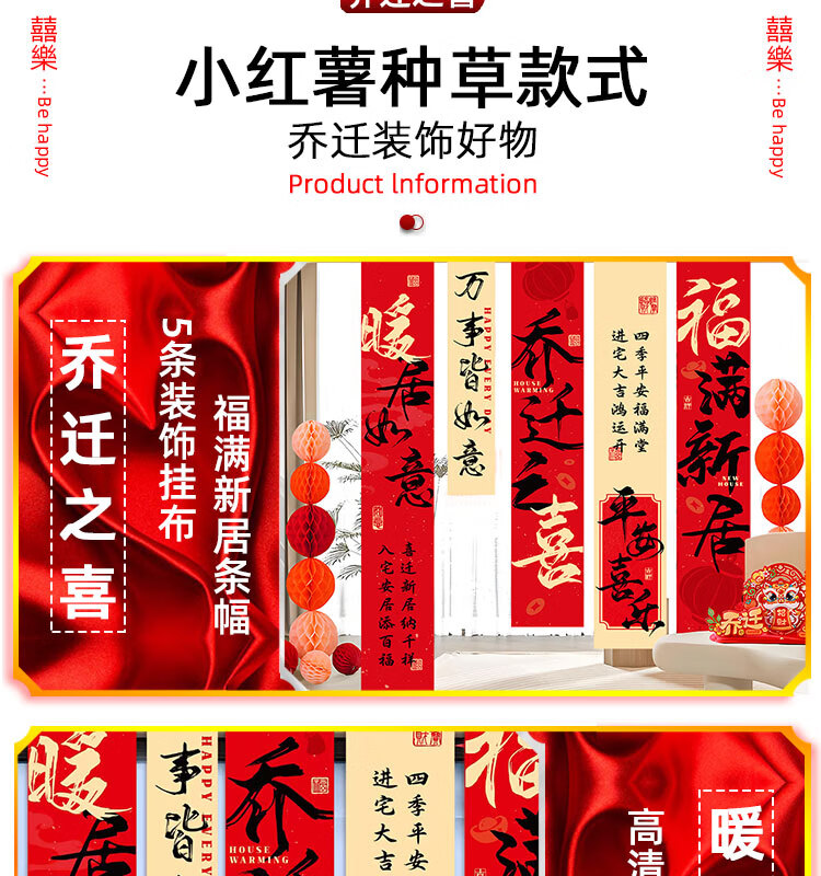 花蒂 乔迁之喜装饰 新居客厅布置条幅新房挂布仪式感进宅大吉背景墙面 喜迁新居(5条装+粘胶)乔迁条幅-215款