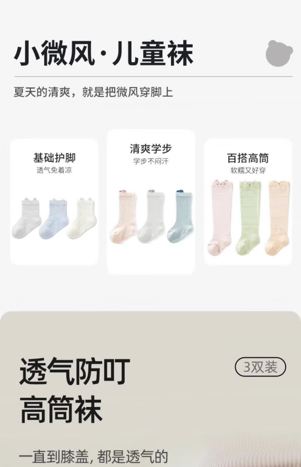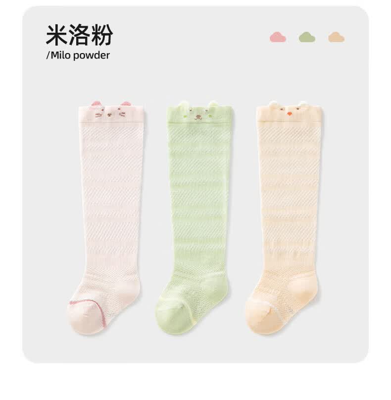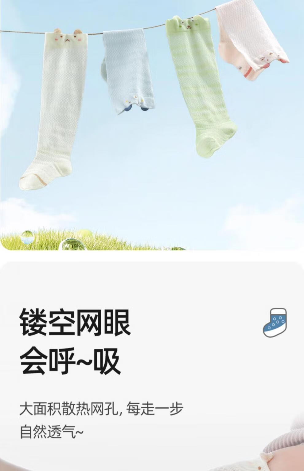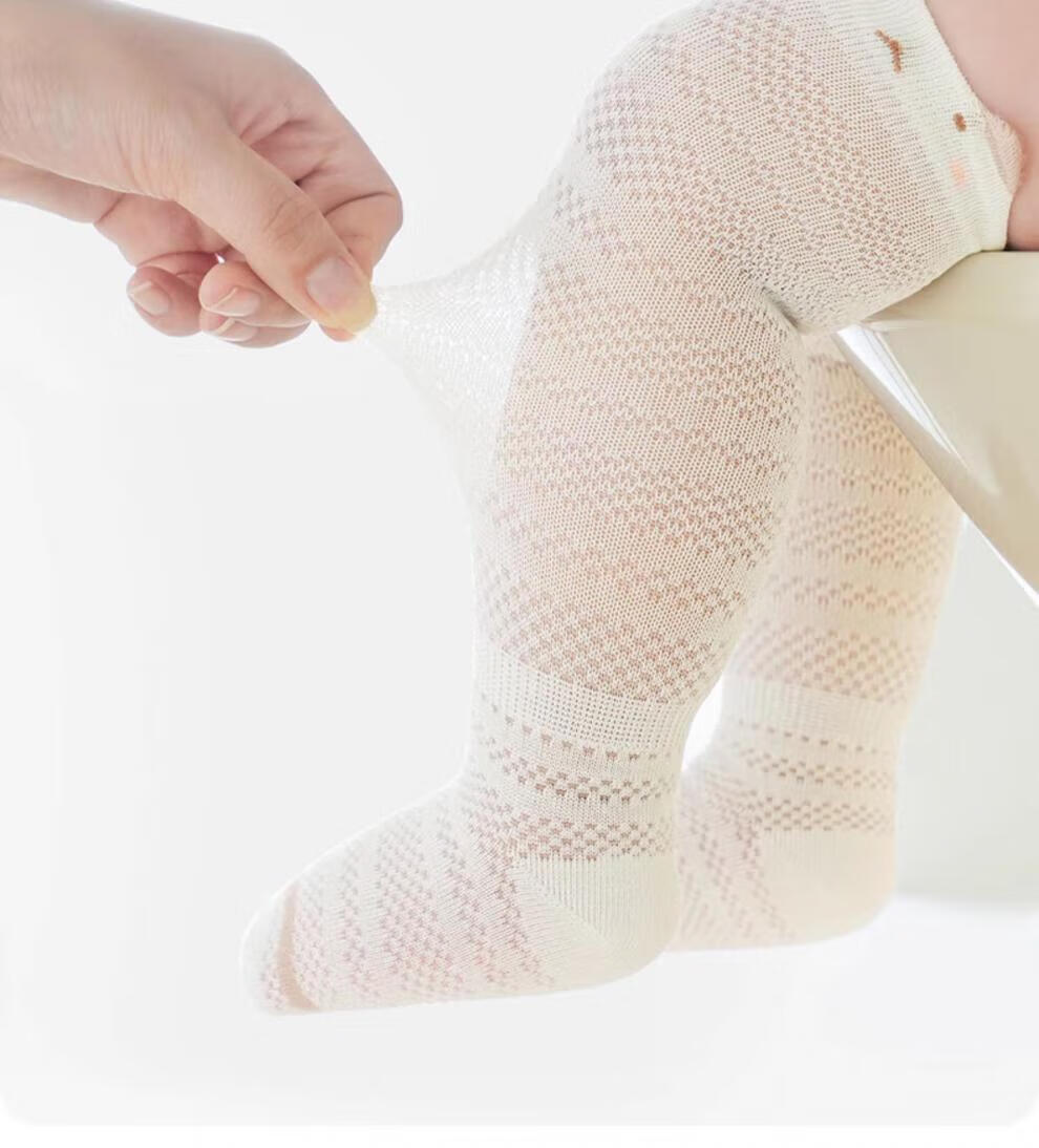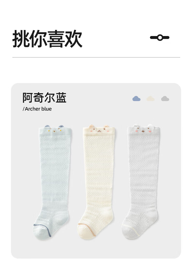 贝肽斯儿童袜子春夏季女童婴儿男童宝宝透气网眼常规款长筒袜 阿奇尔蓝3双 【透气防叮】 3双 均码 【适合0-6个月】