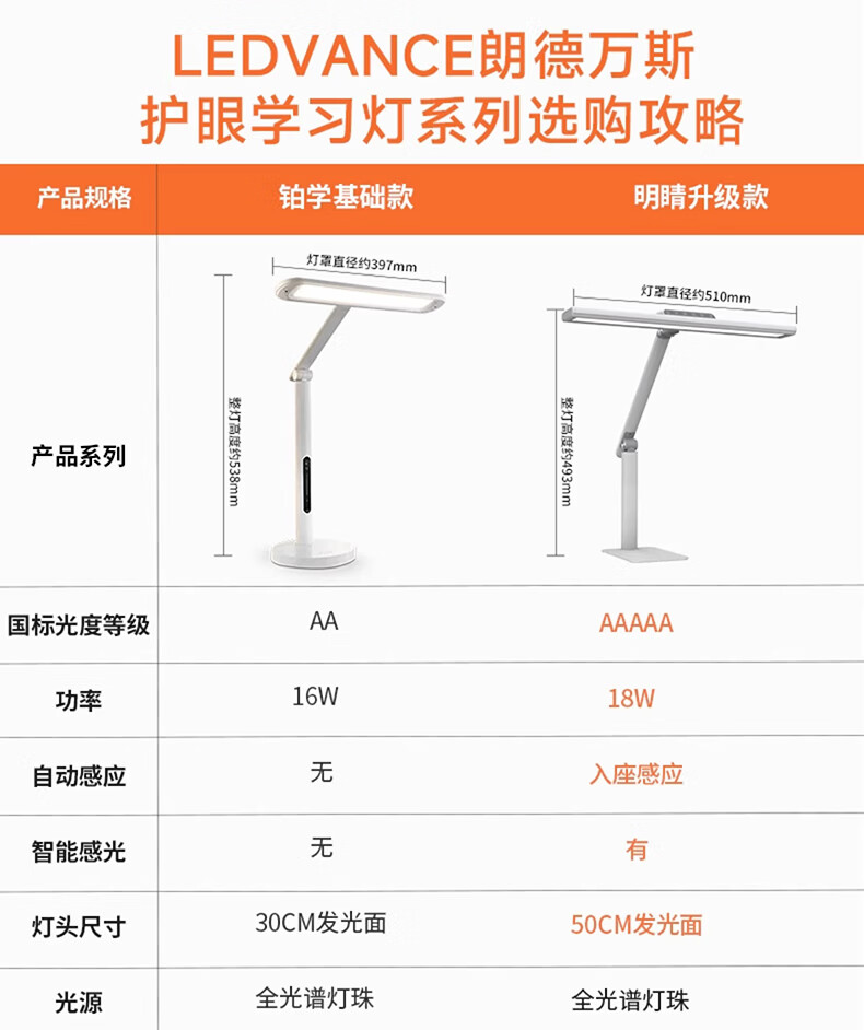 朗德万斯(LEDVANCE)德国铂学全光谱护眼台灯学习阅读智能灯学生儿童调光LED护眼灯 明睛LED全光谱护眼台灯