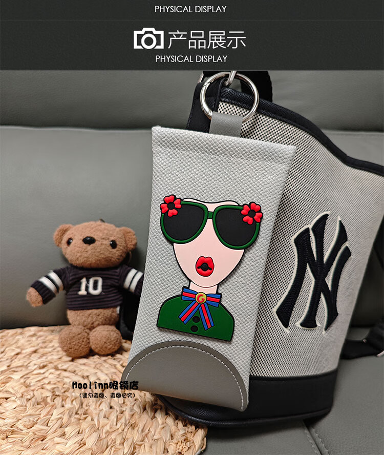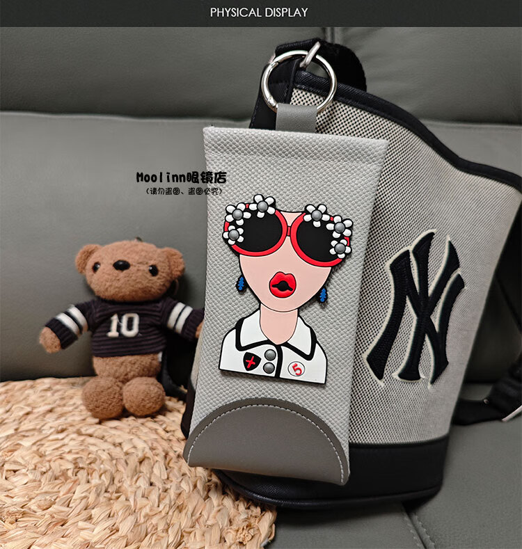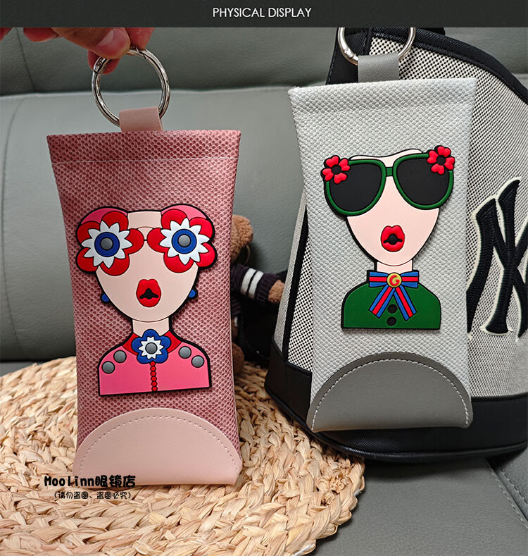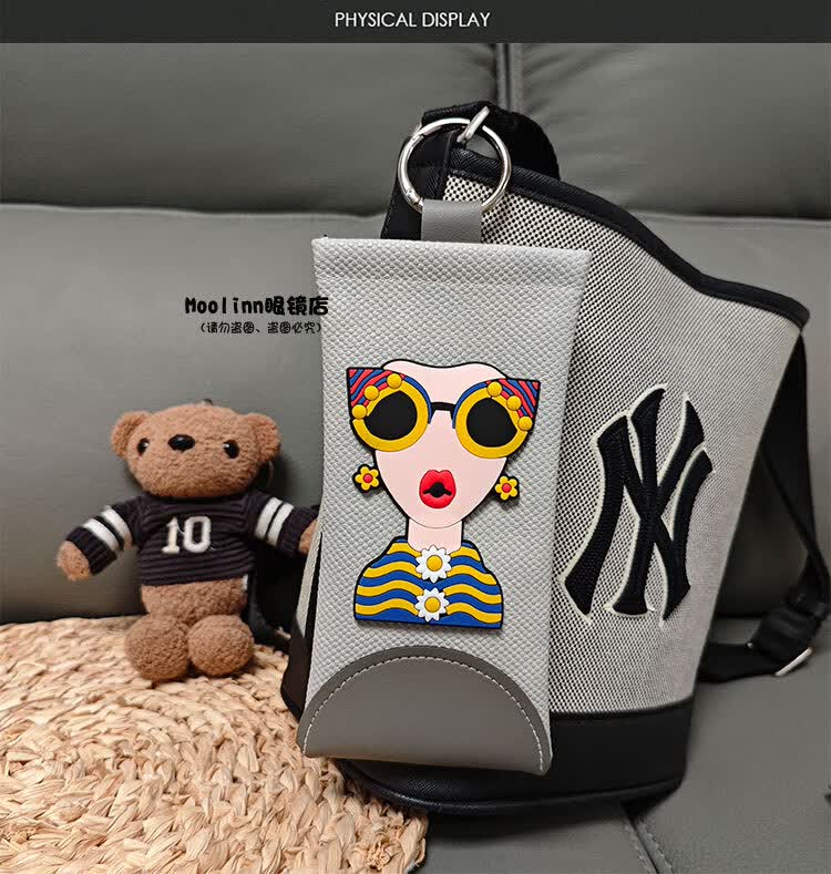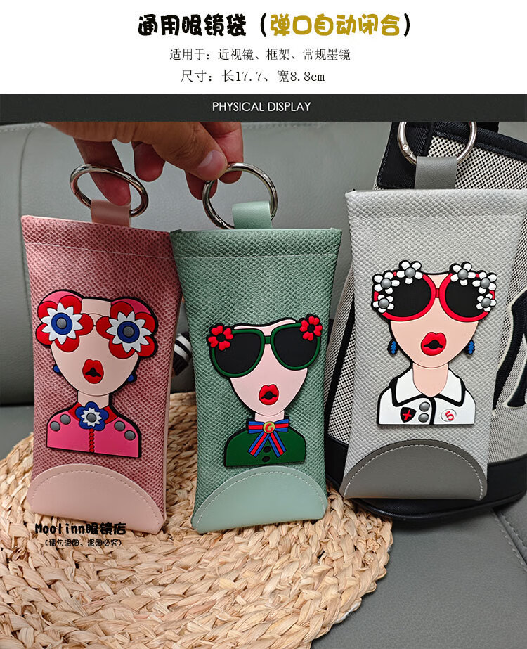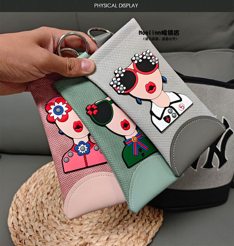 新款挂包眼镜袋自动闭合便携式眼镜盒旅行墨镜保护套太阳镜收纳包 灰色-灰女神(送镜布)