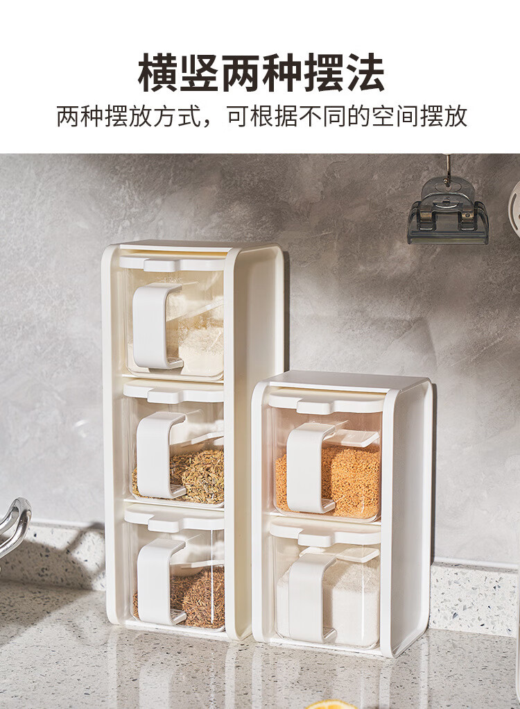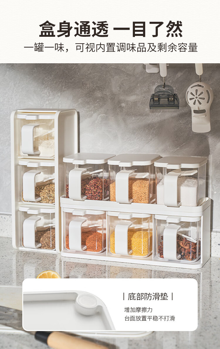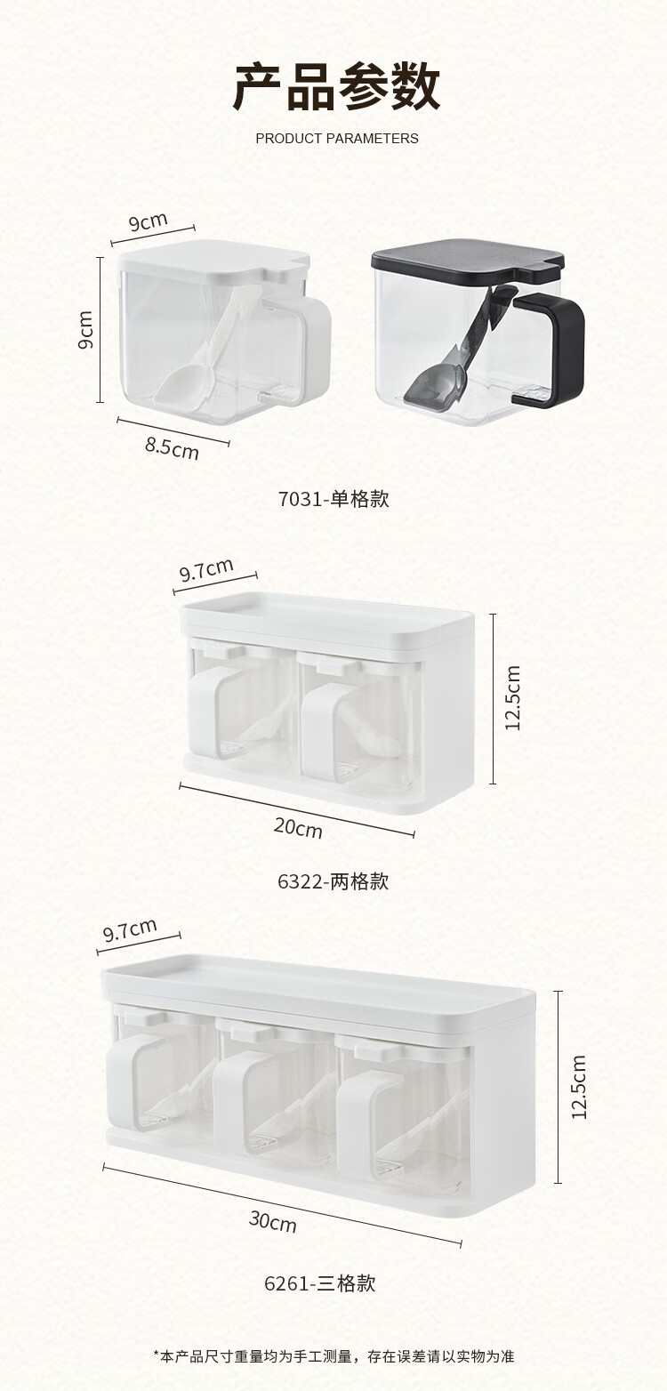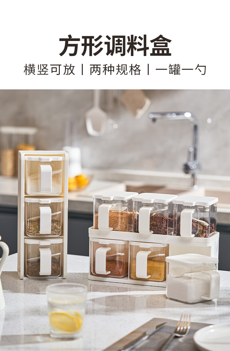 【精选】家用调料罐盐味精调料盒家用厨房收纳盒组合套装佐料盒调 单格白色 单件装