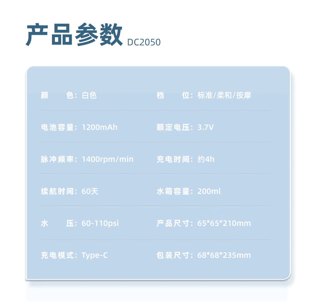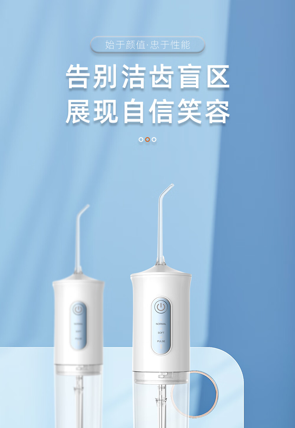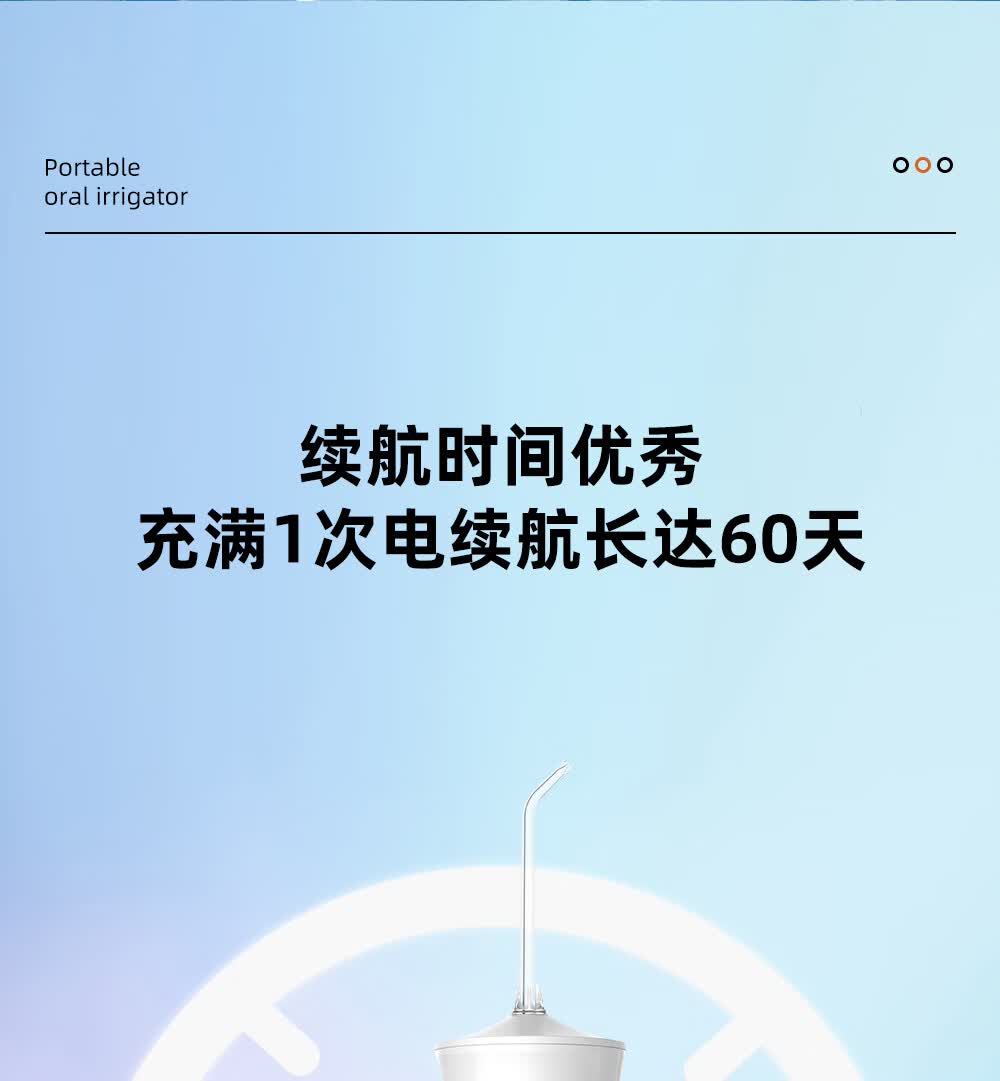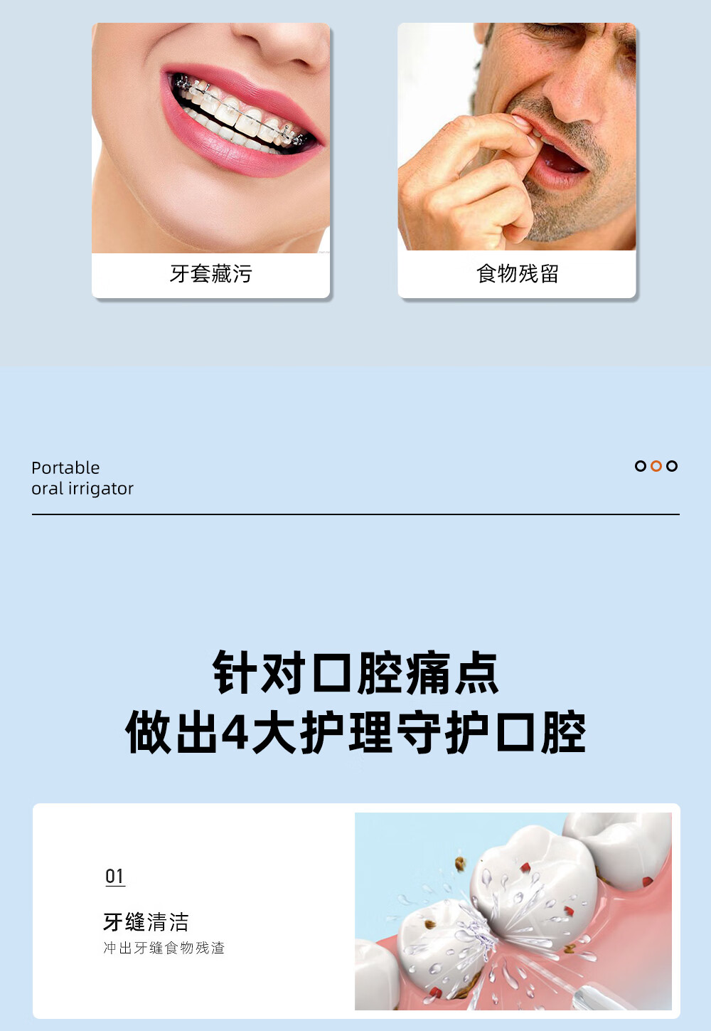 Orisalus冲牙器【畅销海外12年】电动便携式洗牙器正畸护齿口腔清洁神器水牙线牙齿冲洗器女神礼物 象牙白 2支喷头 三档模式+脉冲水流+可拆卸水箱