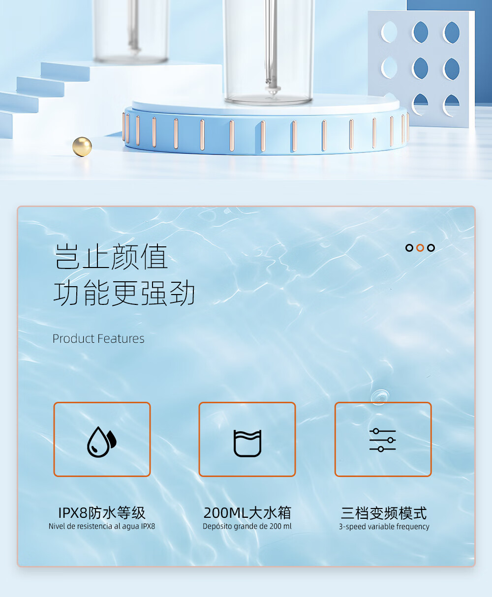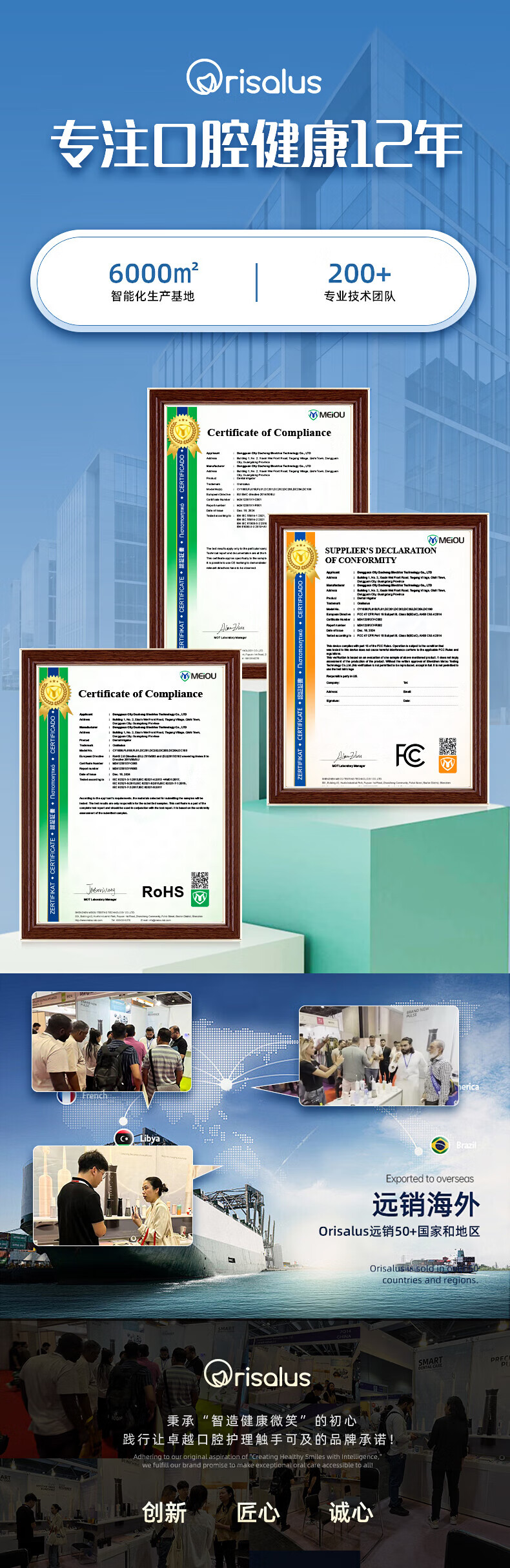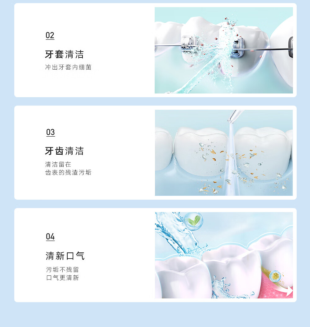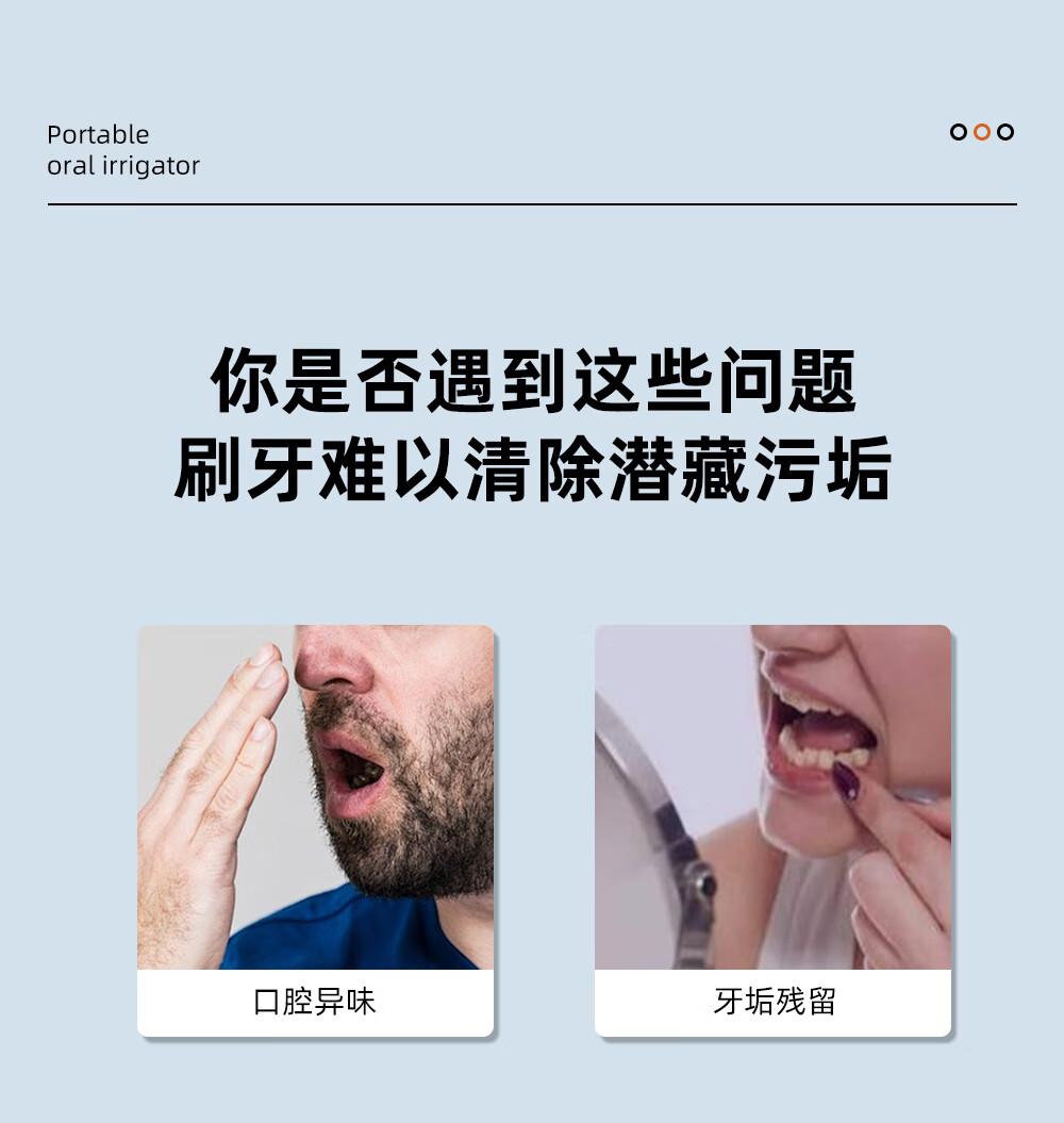 Orisalus冲牙器【畅销海外12年】电动便携式洗牙器正畸护齿口腔清洁神器水牙线牙齿冲洗器女神礼物 象牙白 2支喷头 三档模式+脉冲水流+可拆卸水箱