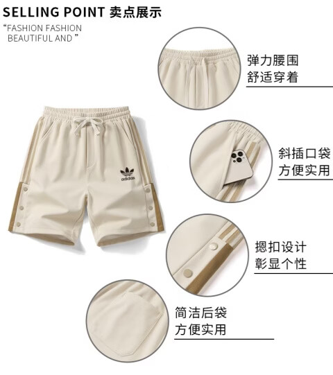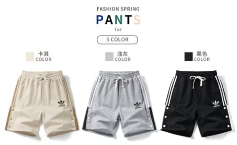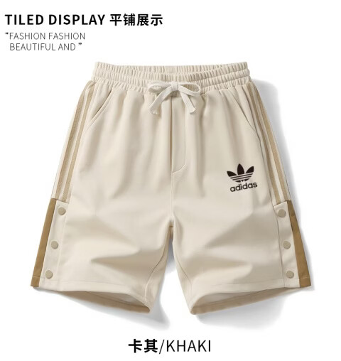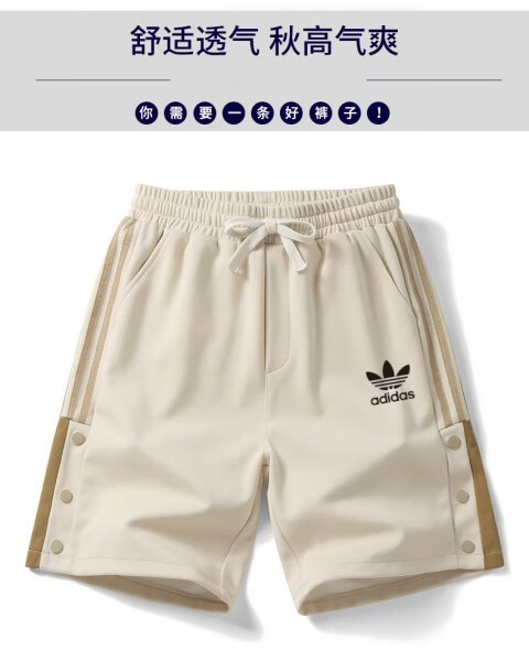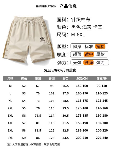 Y-3阿迪三叶草刺绣logo男士纯棉运动短裤休闲时尚针织户外大码五分裤 卡其色 6XL 建议体重220-240斤