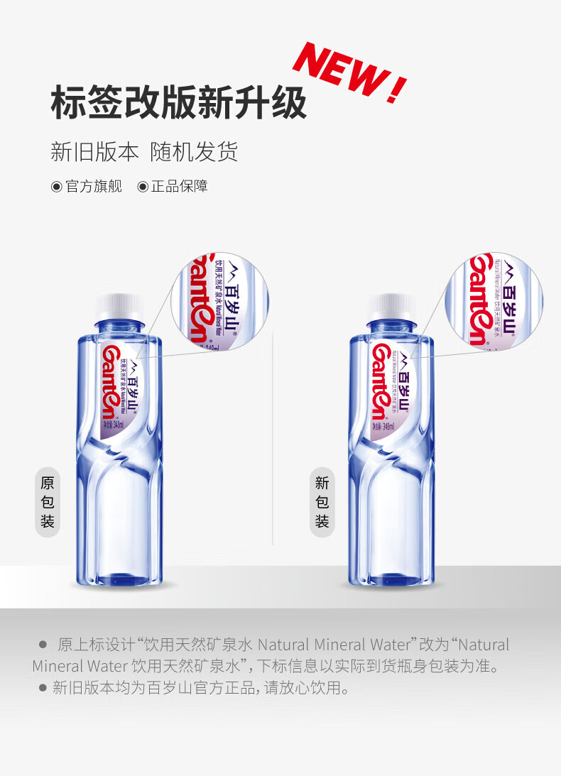 景田百岁山(ganten)天然矿泉水 348ml*24瓶 整箱装