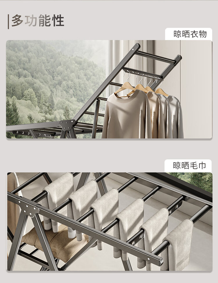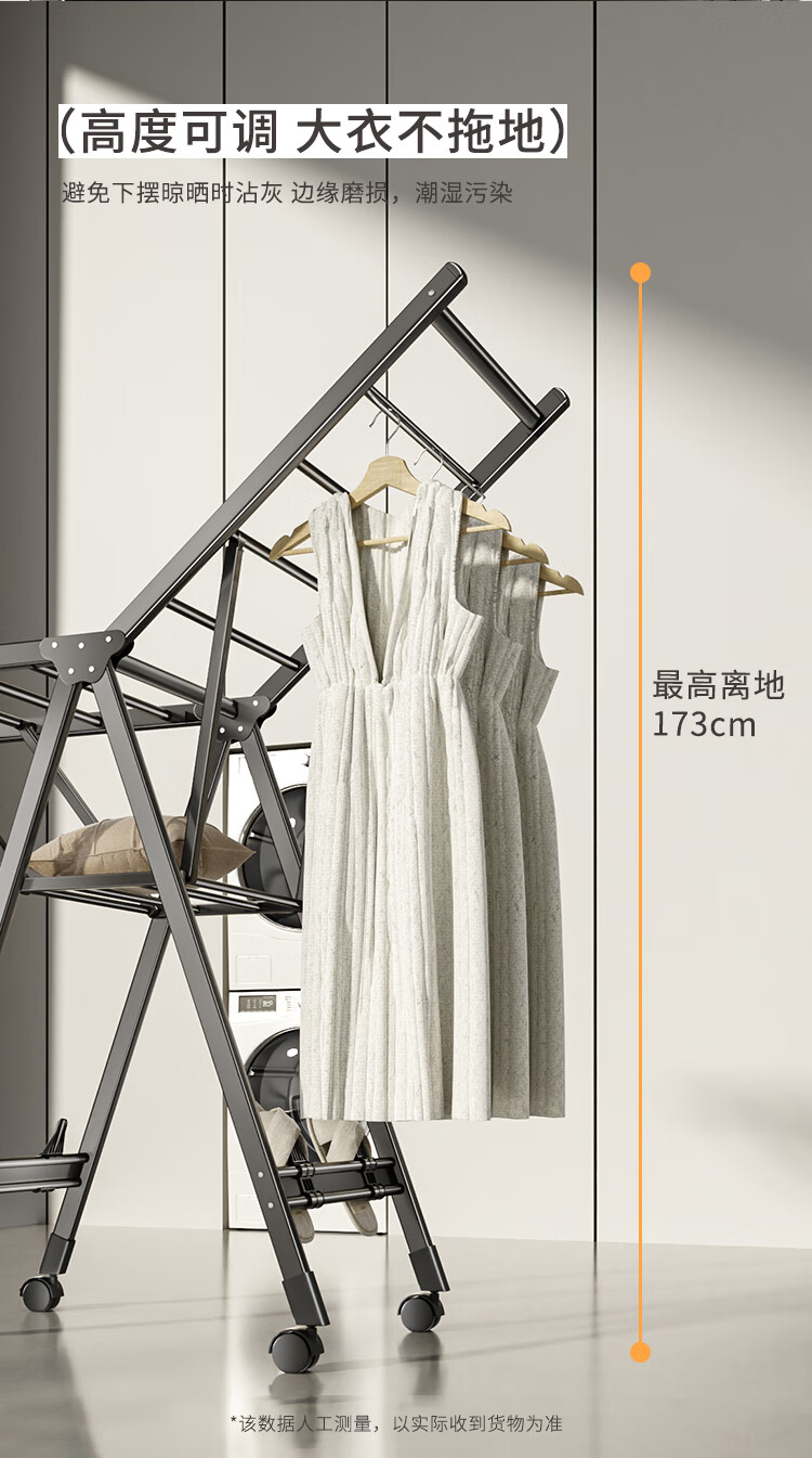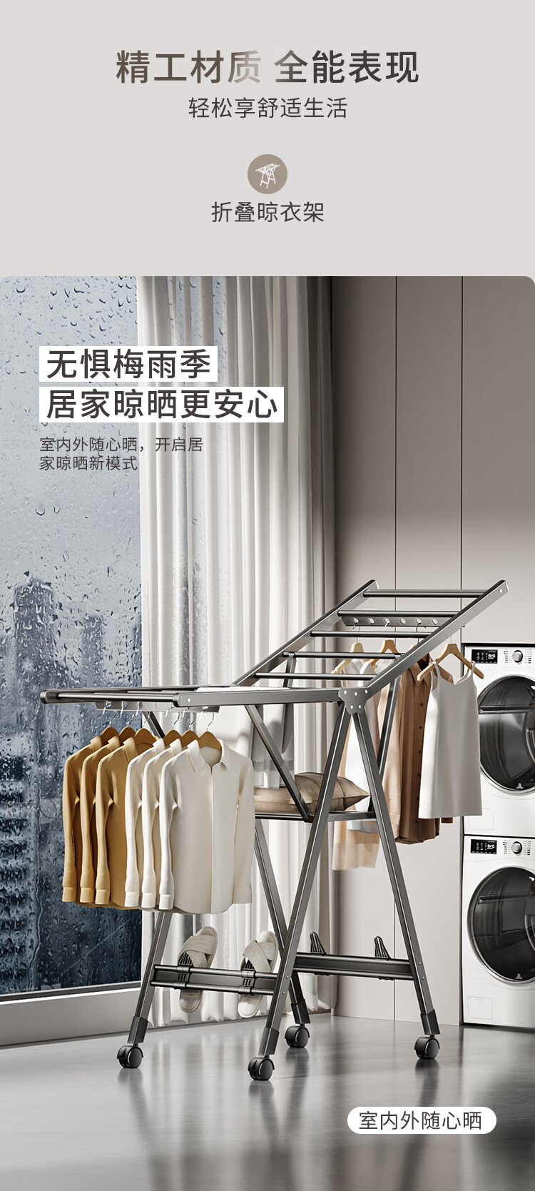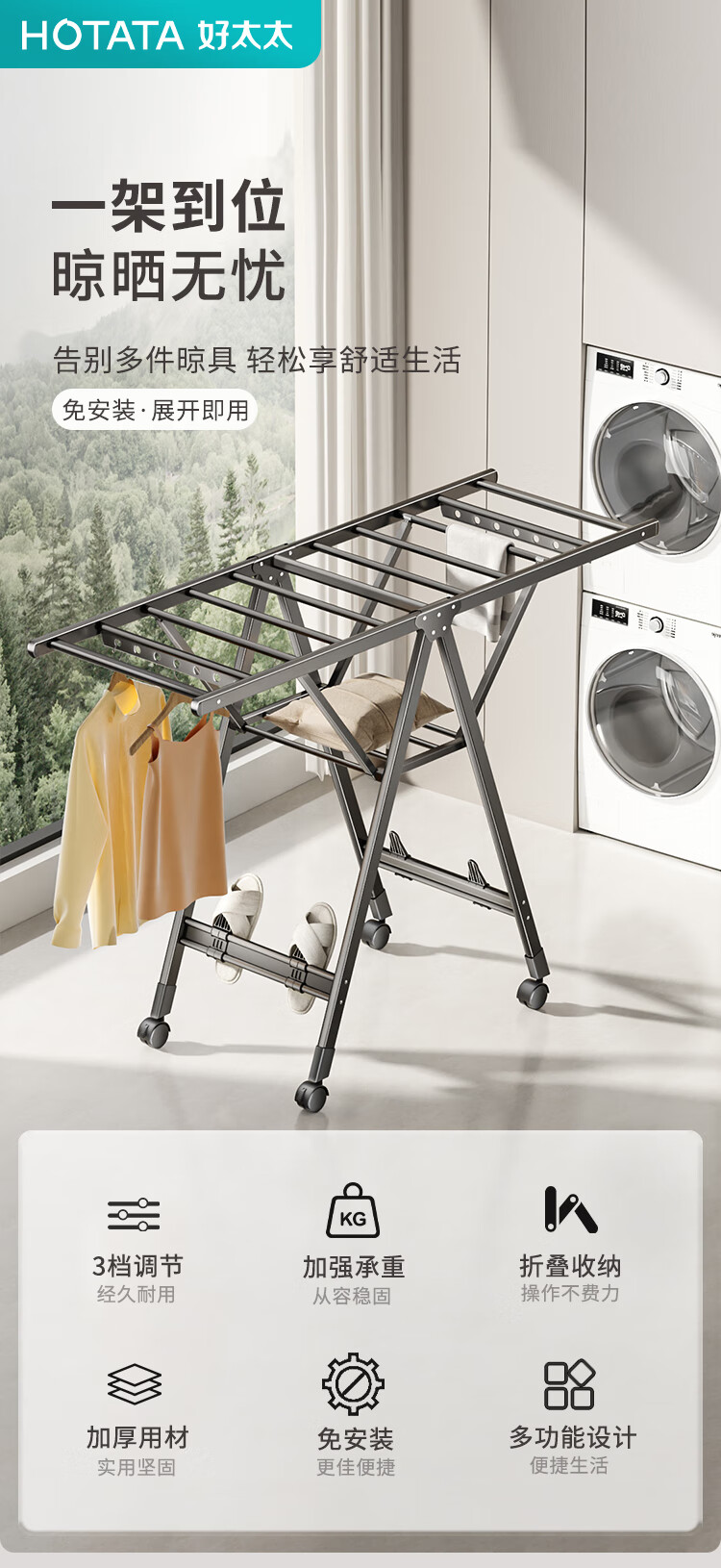 好太太落地晾衣架家用阳台可移动落地晒衣架可折叠收纳室外晒被子架子