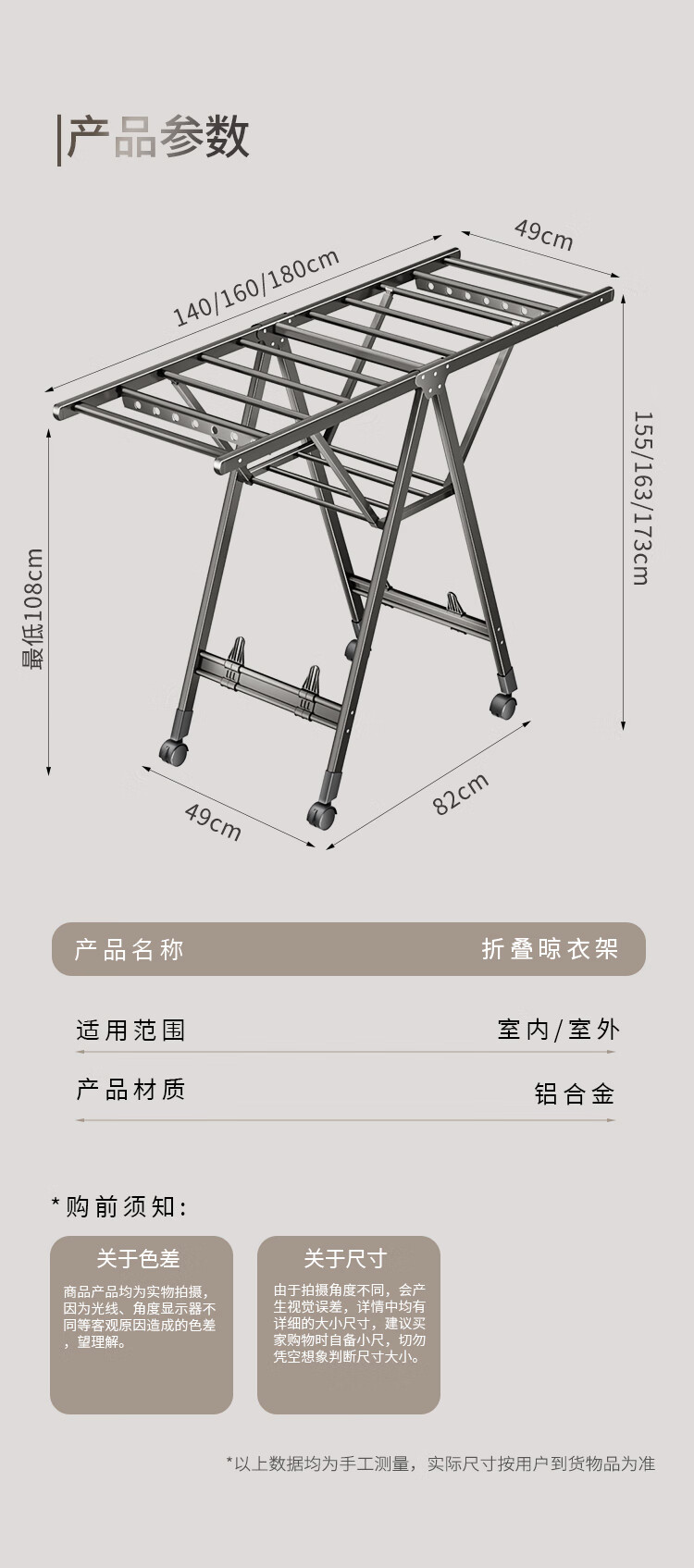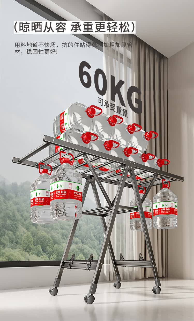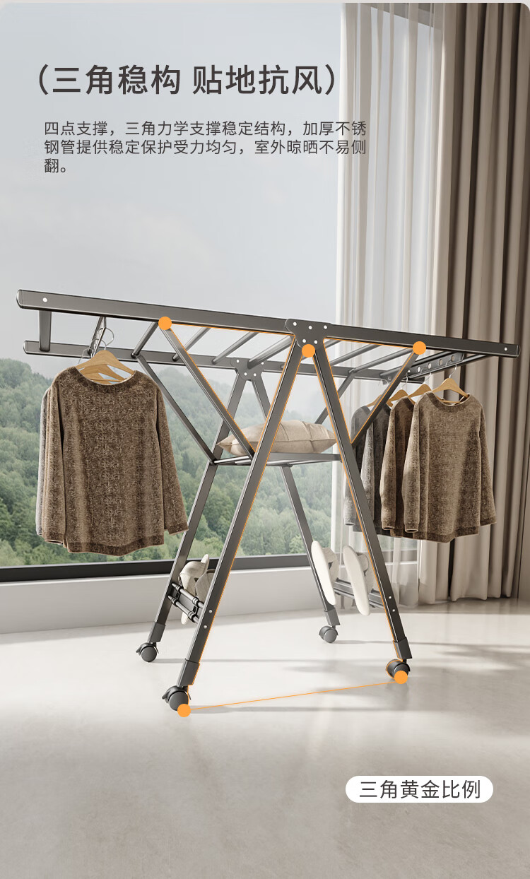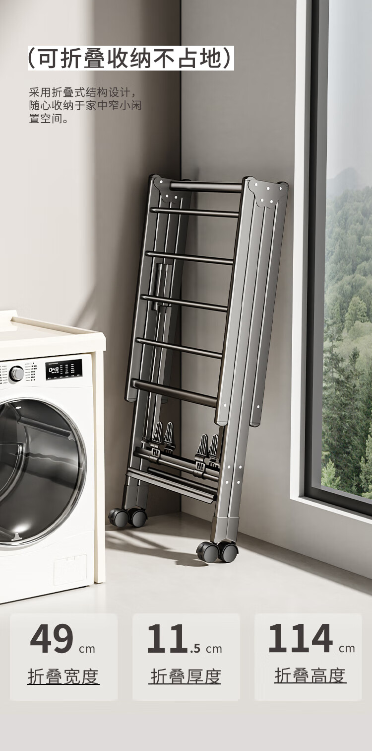 好太太落地晾衣架家用阳台可移动落地晒衣架可折叠收纳室外晒被子架子