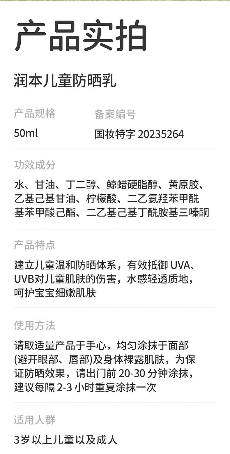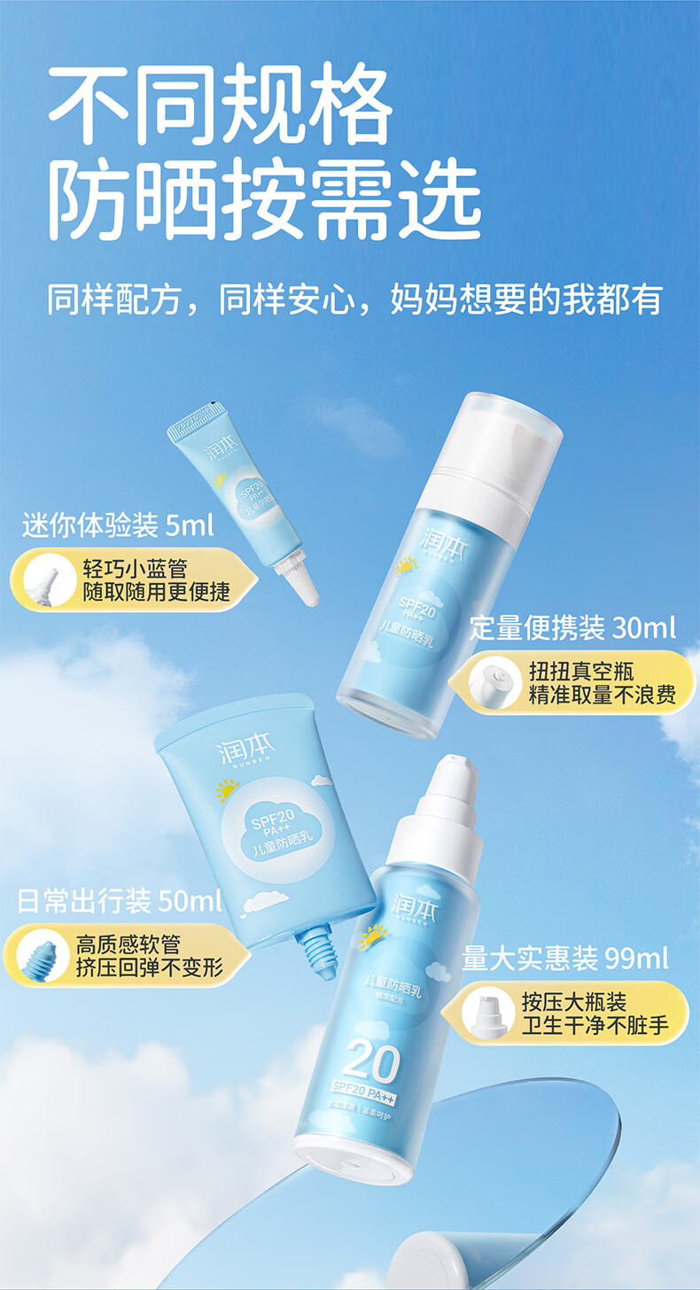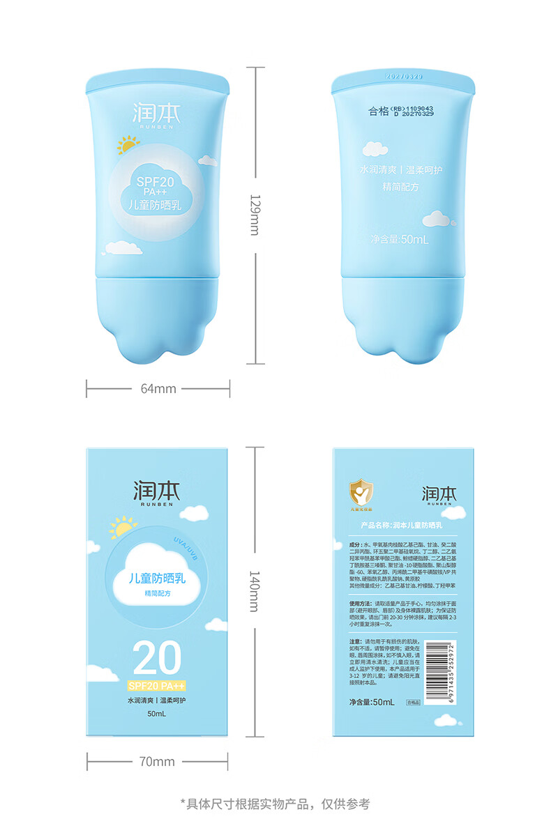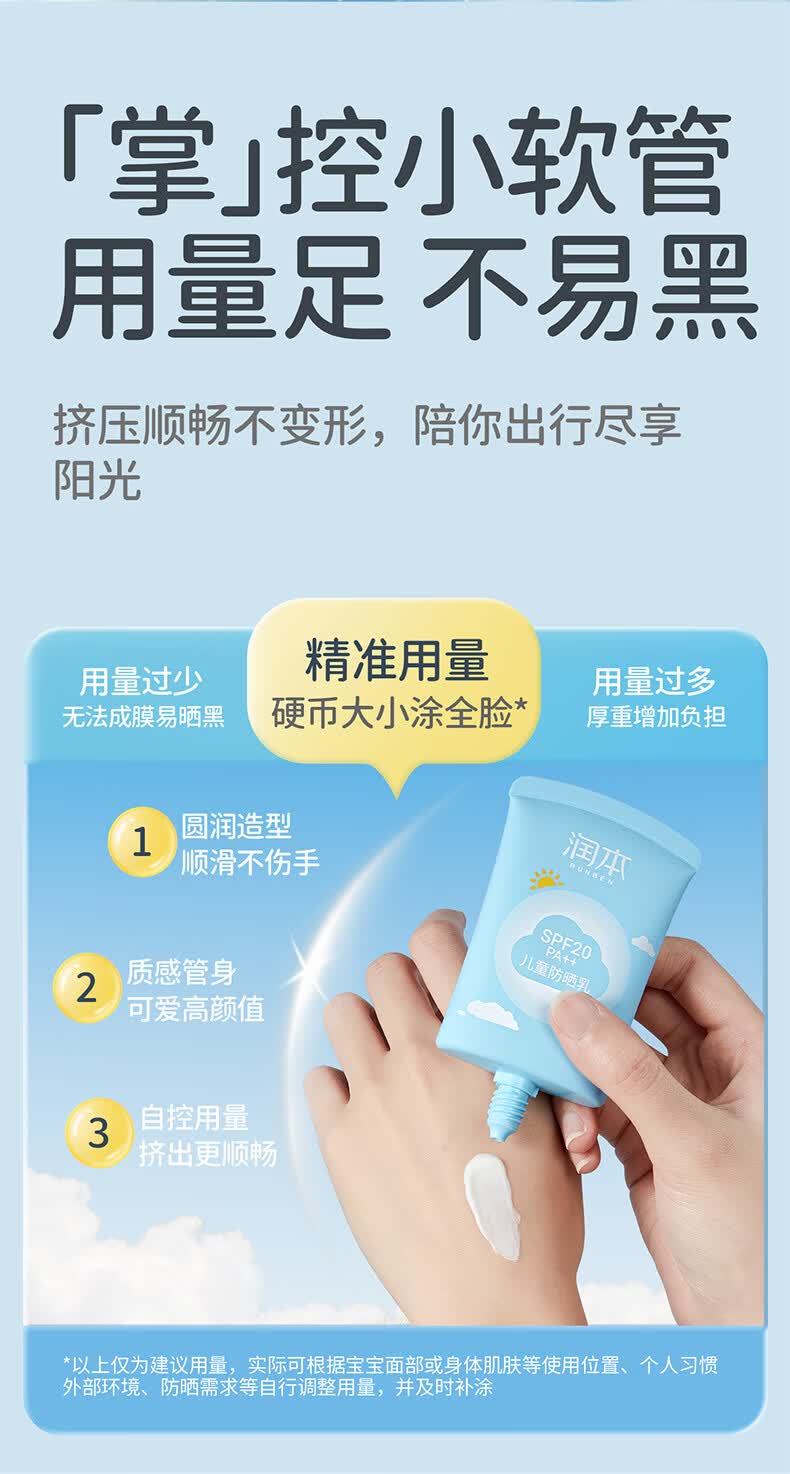 润本儿童防晒乳男女童户外防晒霜宝宝隔离紫外线清爽不闷肤学生防晒 50ml 1瓶 【经典软管款】