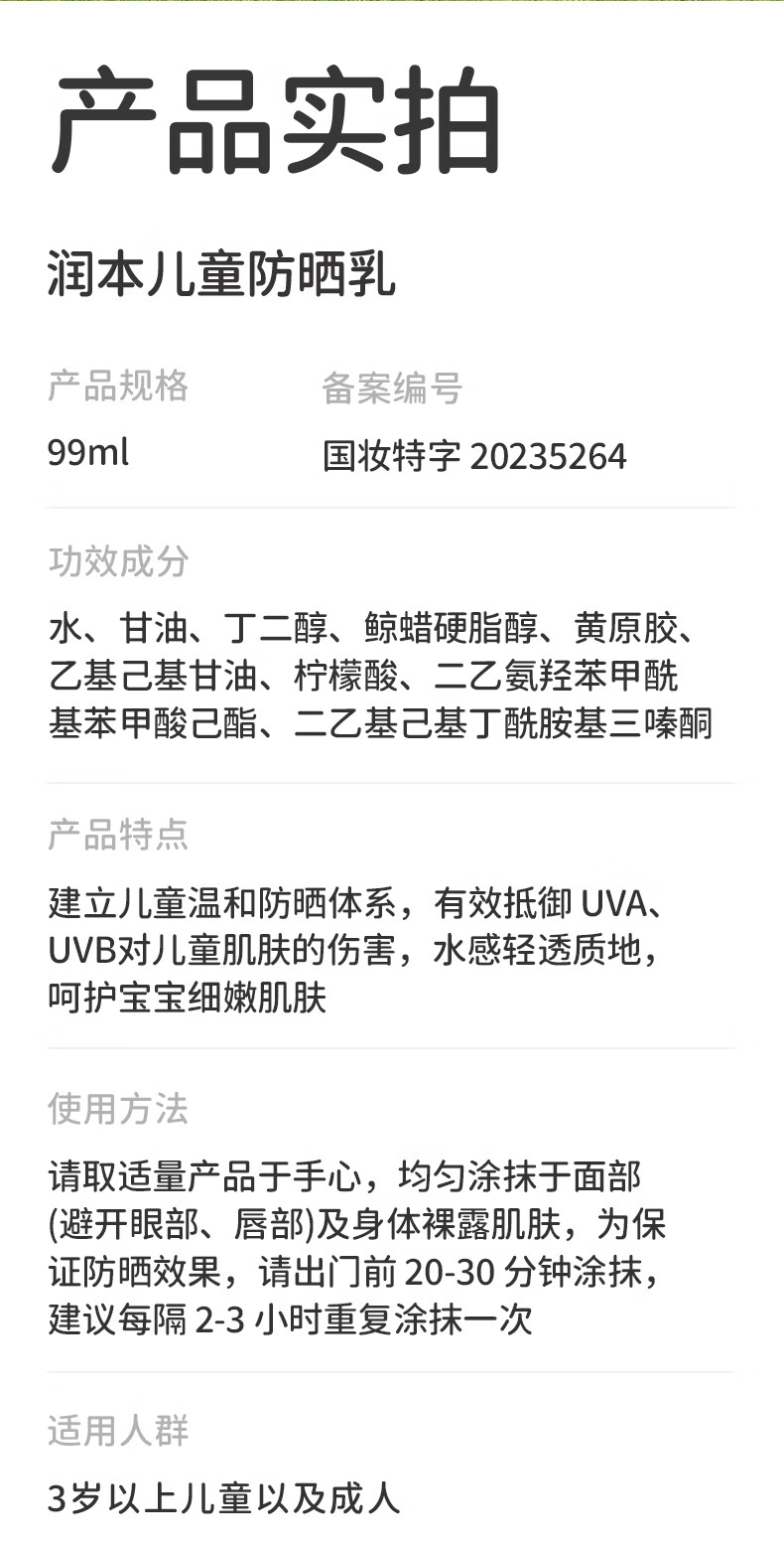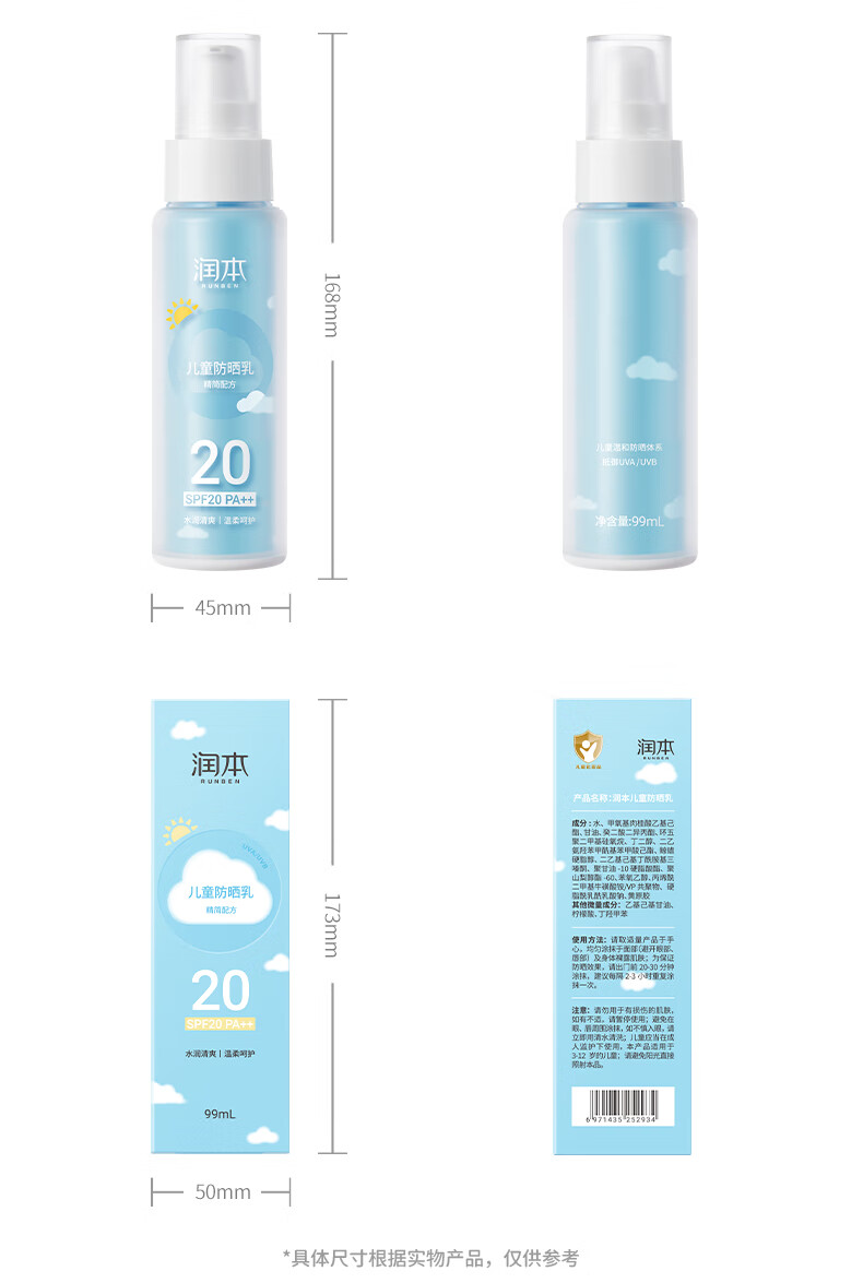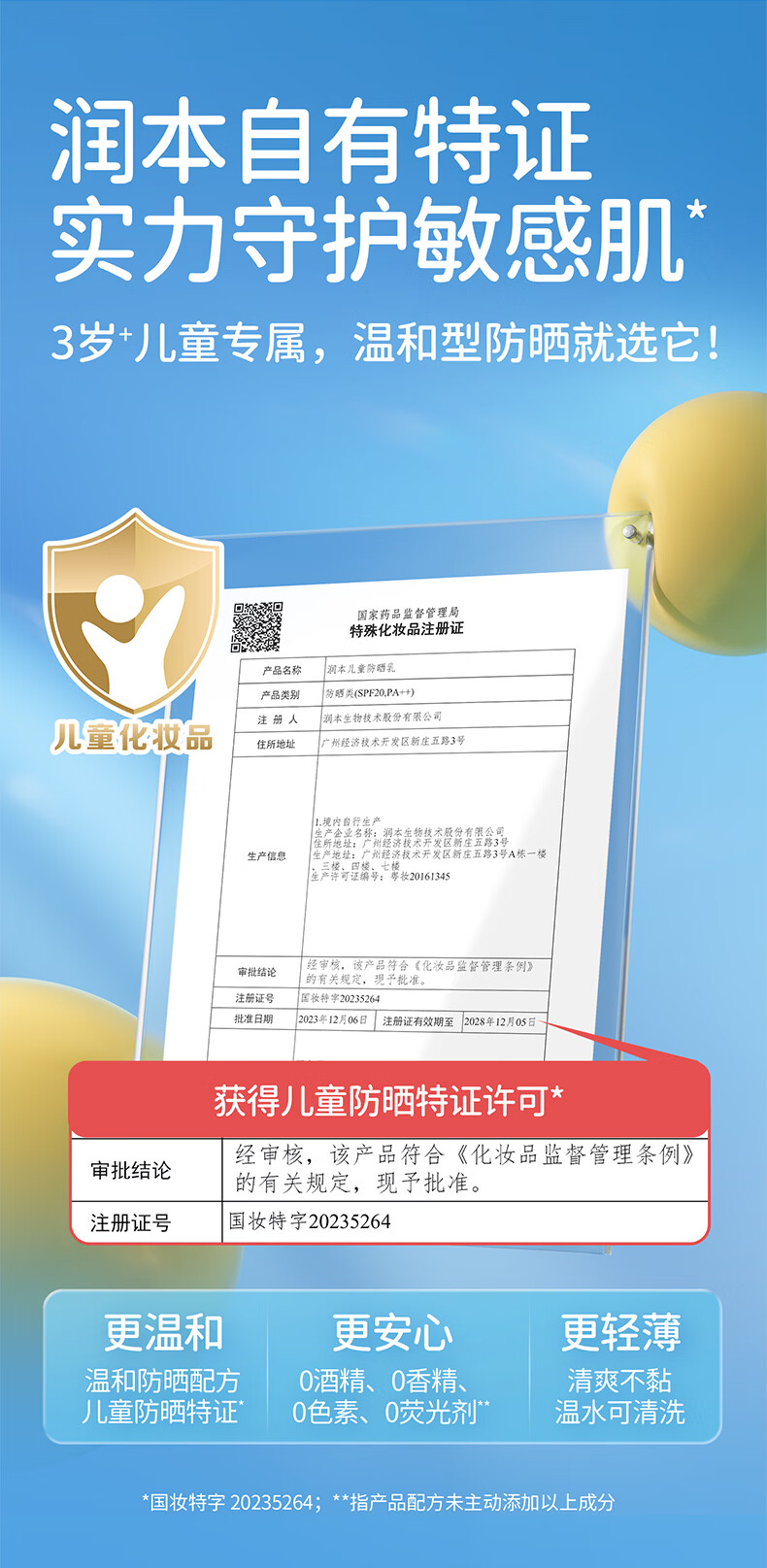 润本儿童防晒乳男女童户外防晒霜宝宝隔离紫外线清爽不闷肤学生防晒 50ml 1瓶 【经典软管款】