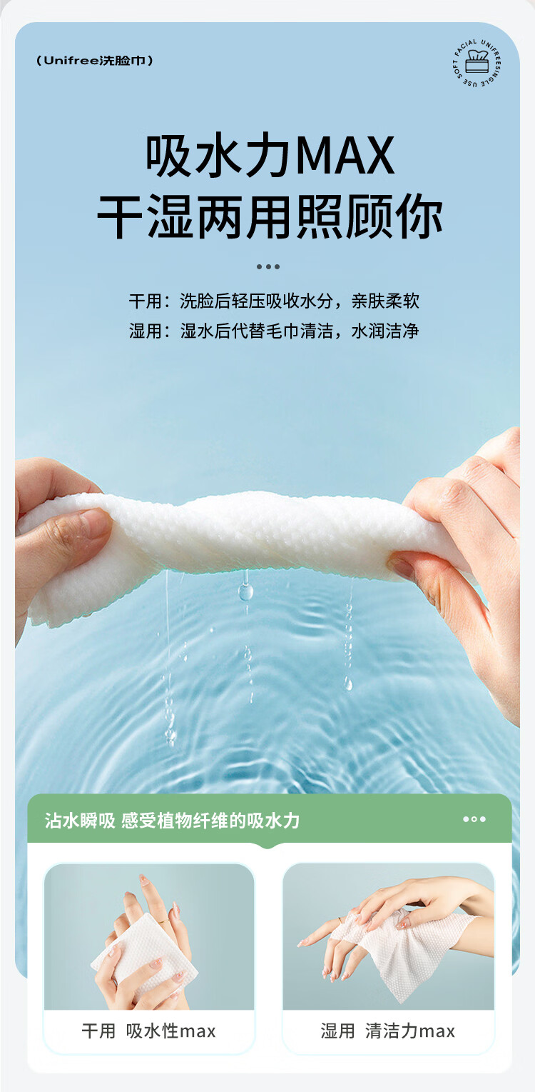 unifree一次性洗脸巾珍珠纹擦脸绵柔巾洗面巾加大加厚干湿两用擦脸巾 【尝鲜装】洗脸巾60抽*3包