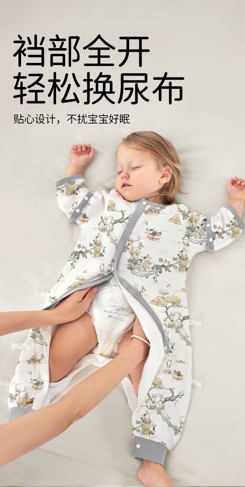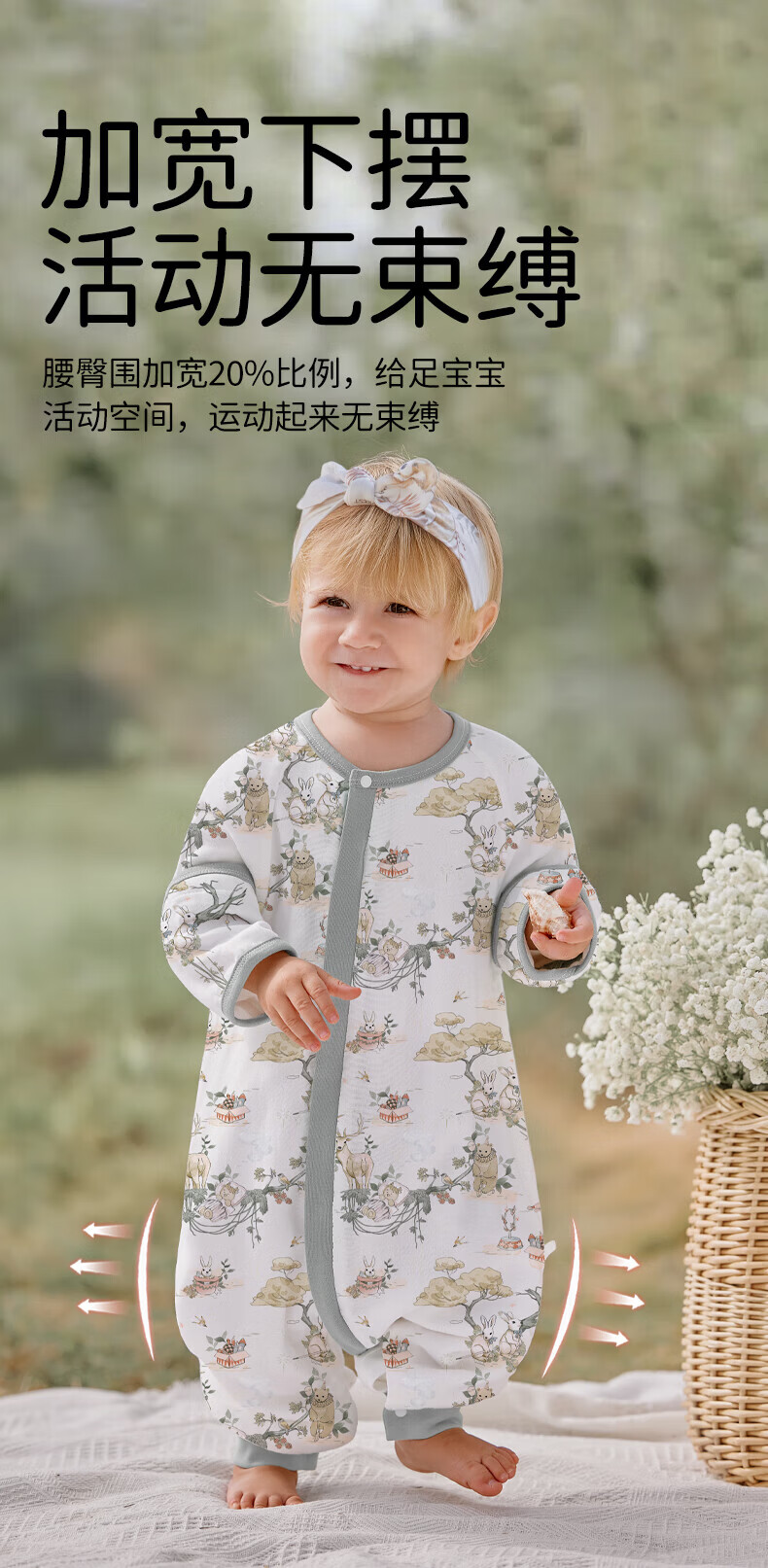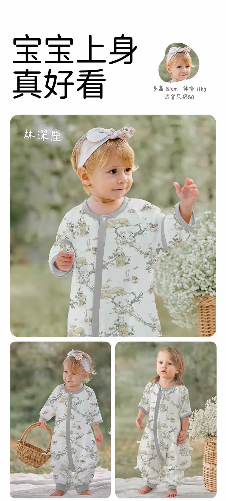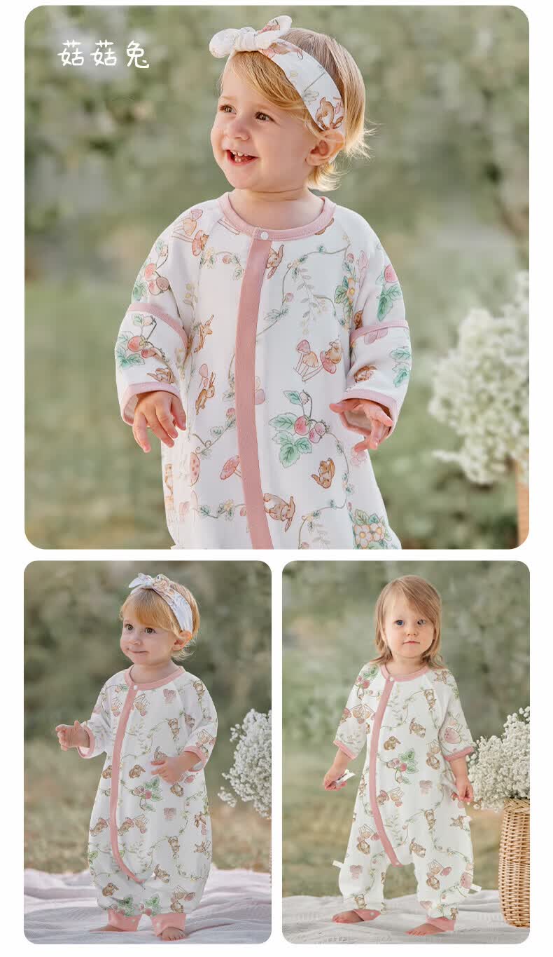 欧孕(OUYUN)【小冰心】婴儿睡袋春秋款竹纤维天丝纱布宝宝防踢被儿童分腿睡袋 菇菇兔-前六后四可拆袖 90/52【推荐身高80-95CM】