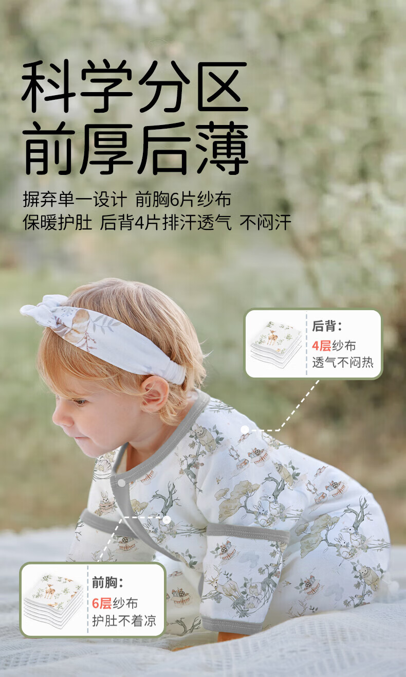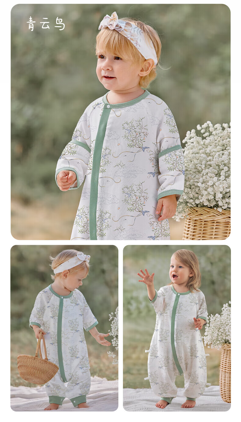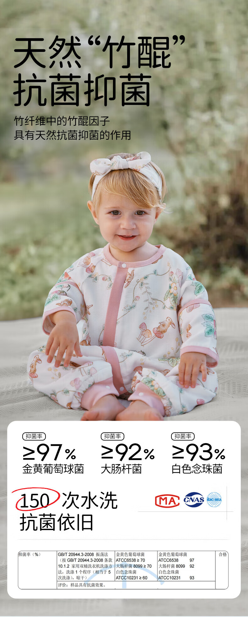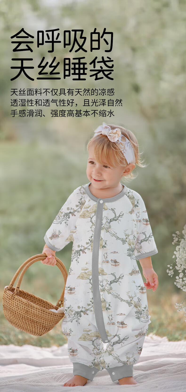 欧孕(OUYUN)【小冰心】婴儿睡袋春秋款竹纤维天丝纱布宝宝防踢被儿童分腿睡袋 菇菇兔-前六后四可拆袖 90/52【推荐身高80-95CM】