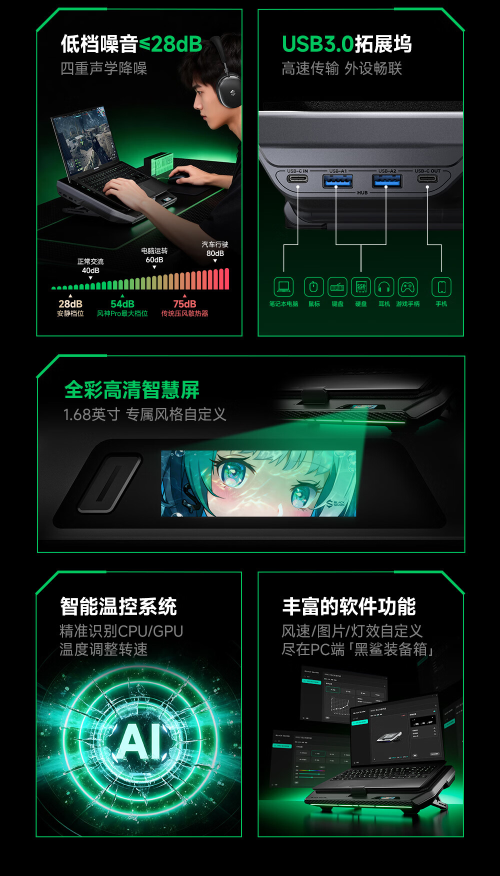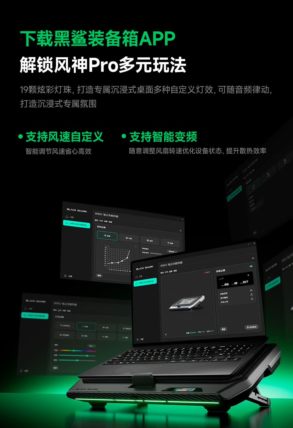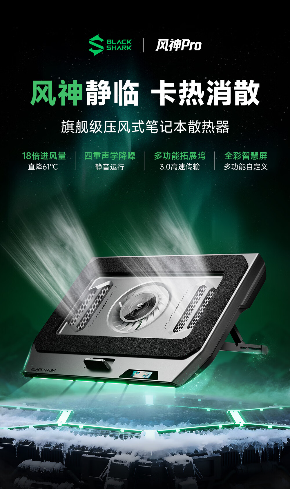 黑鲨风神pro笔记本压风散热器控温低噪游戏本散热笔记本电脑支架适用联想华硕天选6戴尔外星人拯救者