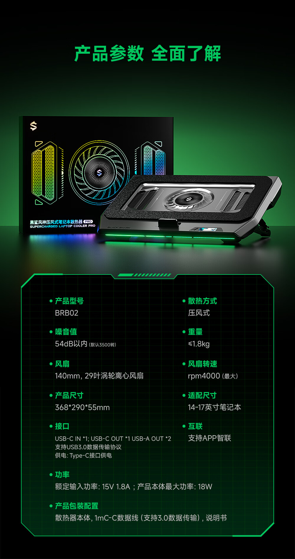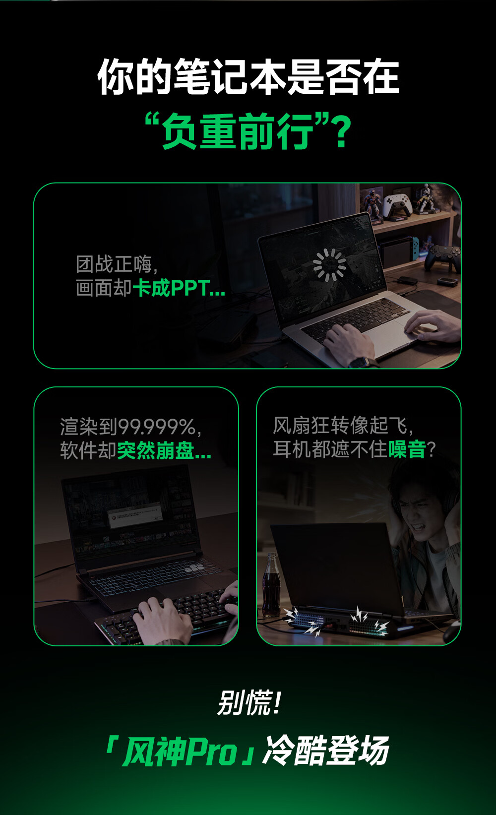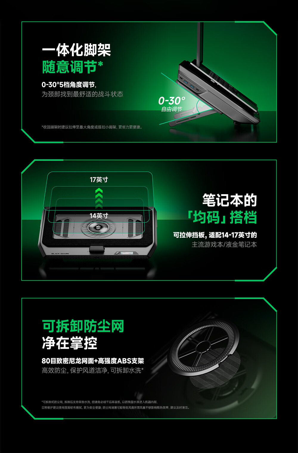 黑鲨风神pro笔记本压风散热器控温低噪游戏本散热笔记本电脑支架适用联想华硕天选6戴尔外星人拯救者